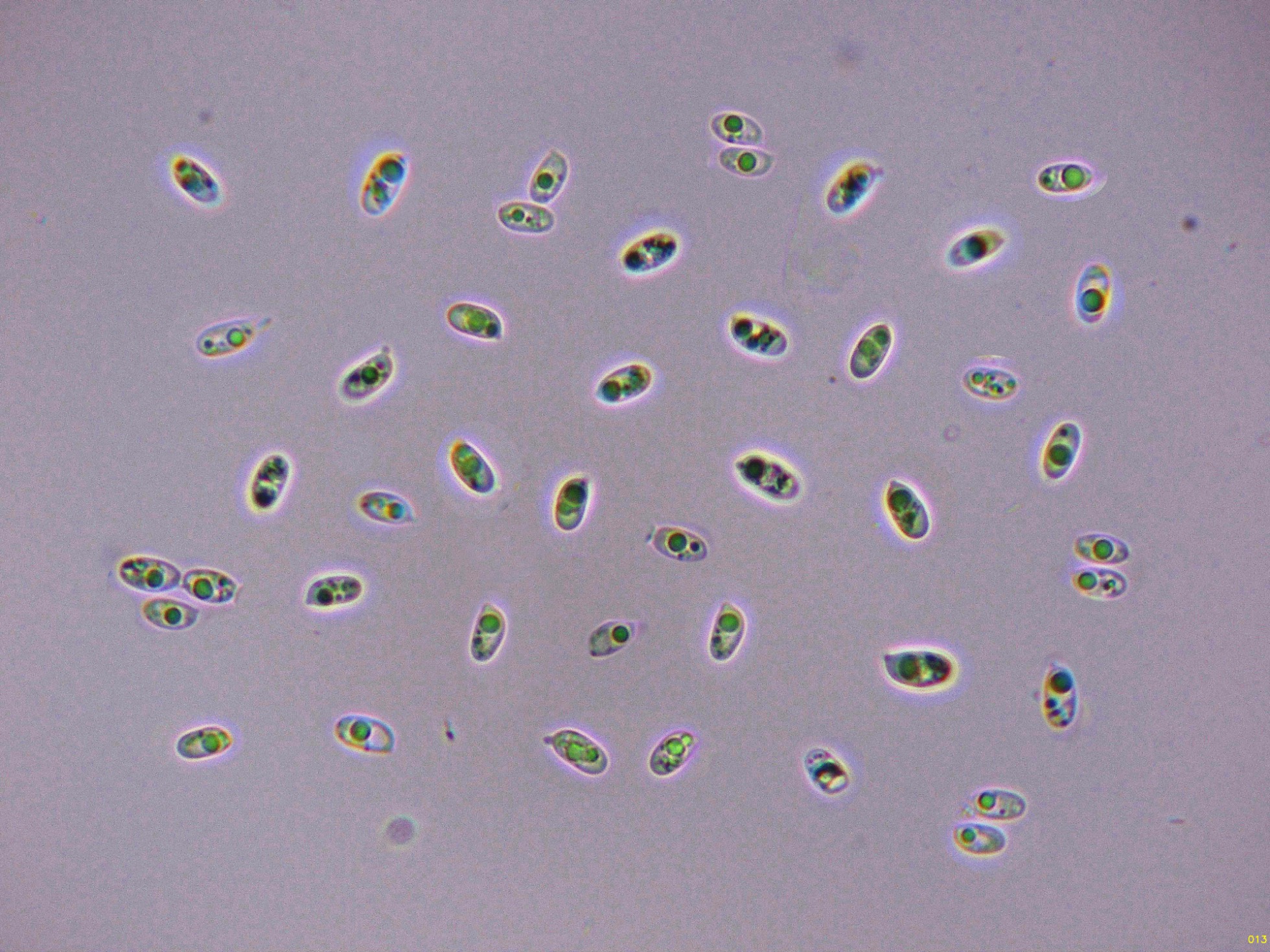 Estas esporas obtenidas por esporulación natural y en agua con unas medidas de: