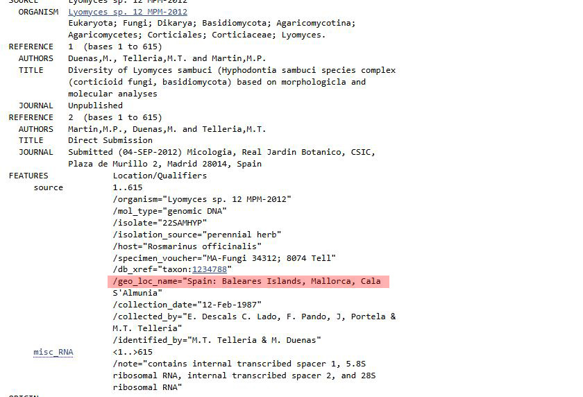 Al obtener datos de las dos secuencias más cercanas, ambas con una coincidencia por identidad del 99,84%, vemos que una de ellas se corresponde a una recolecta efectuada en las Islas Baleares, relativamente cerca de mi lugar de recogida (Moncortés (Lleida)).