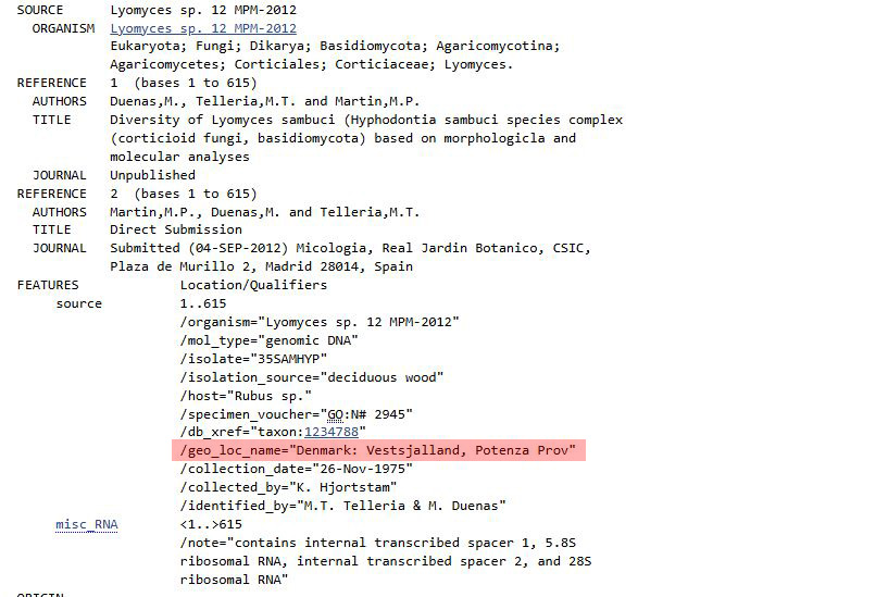 Aunque desde el primer momento tuve bastante claro que estaba ante un Lyomyces, no pude encontrar ninguno que encajara, por lo que recurrí al análisis molecular, la secuenciación no aclaró mucho ya que determinó que se trataba con una coincidencia del 99,84% de Lyomyces sp. JX857807.1.