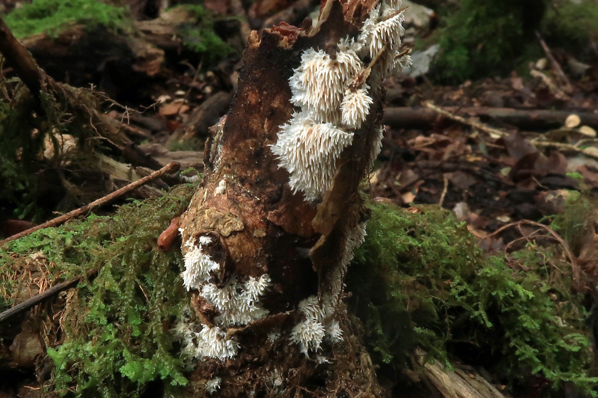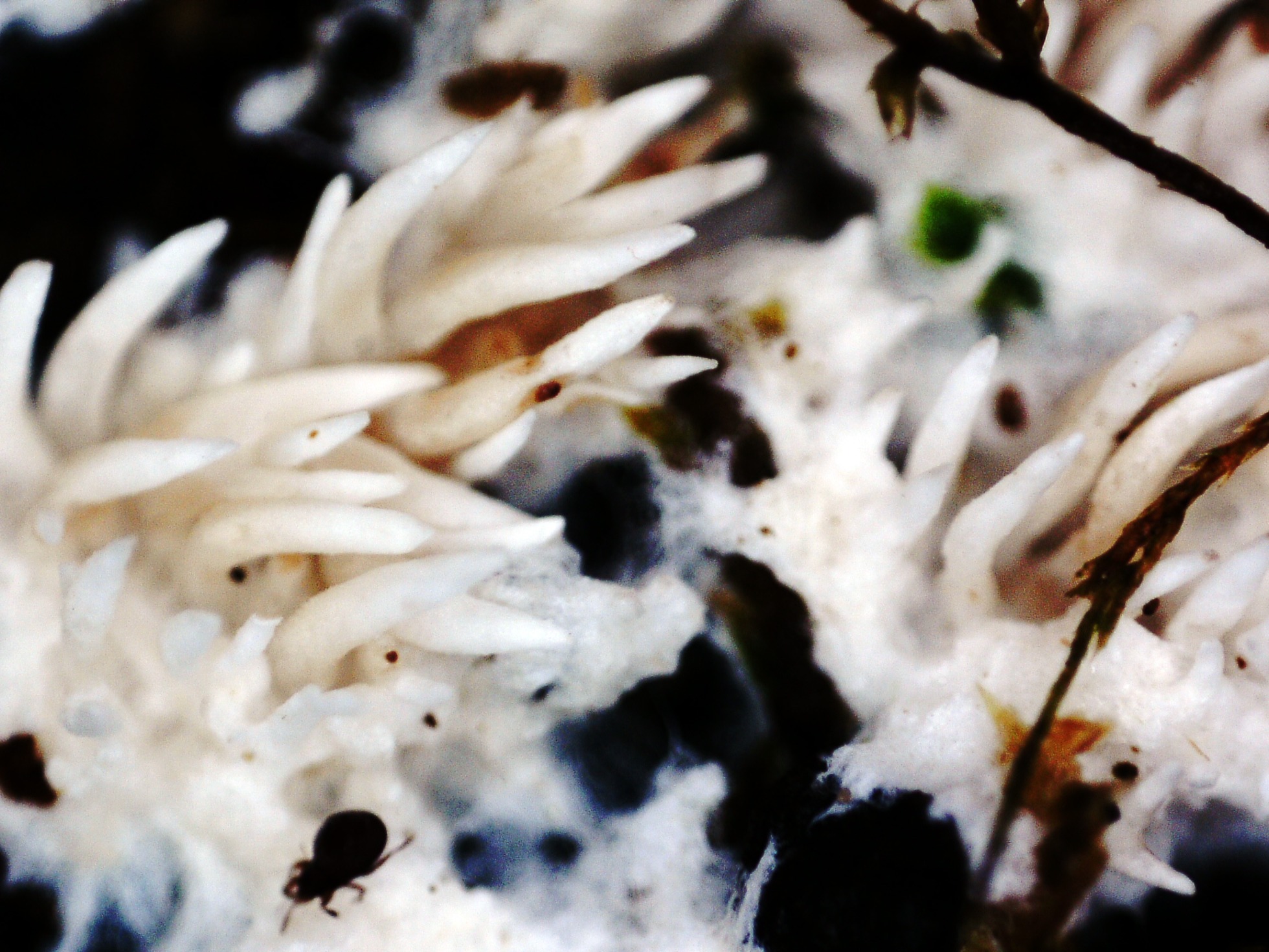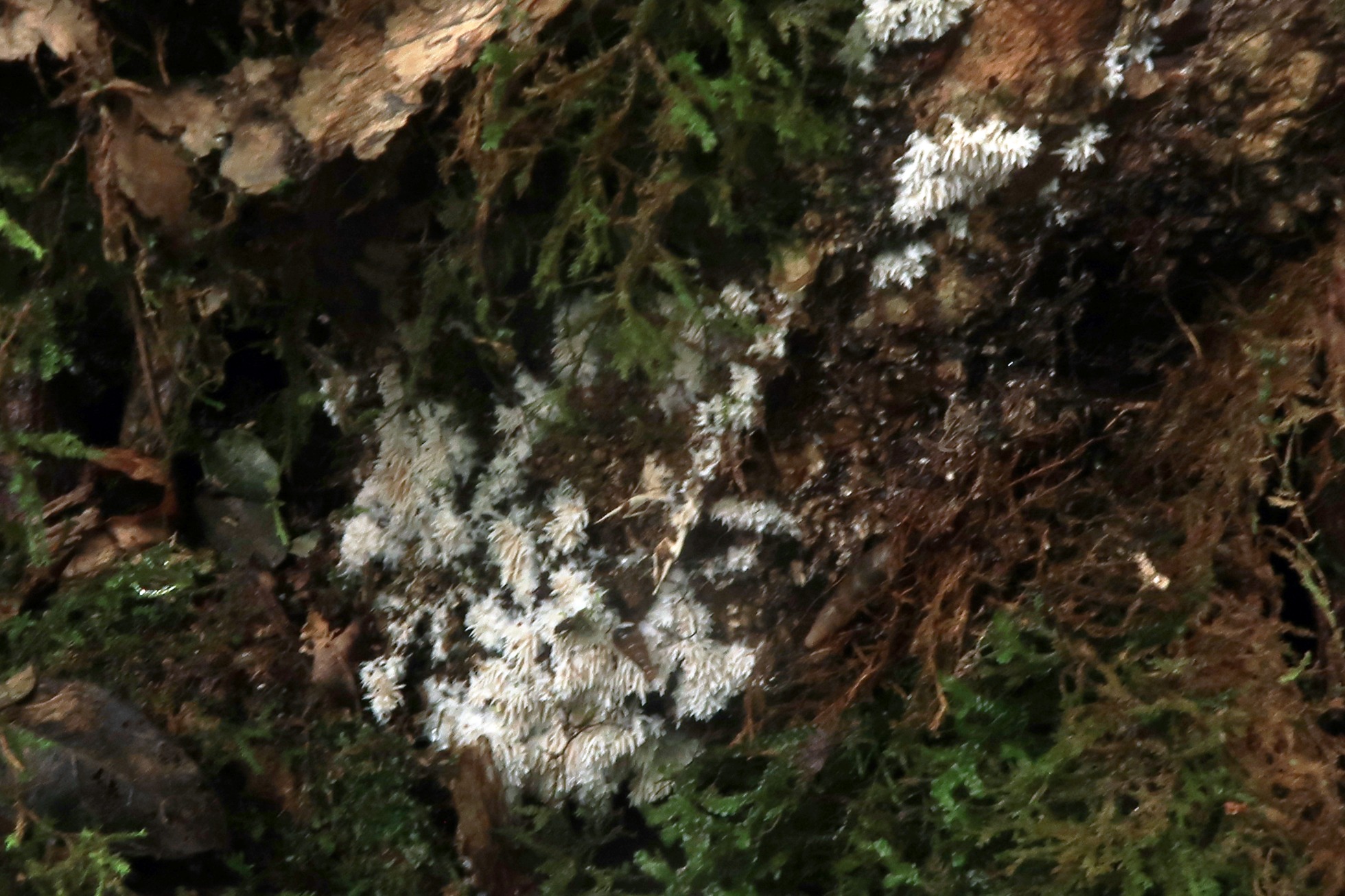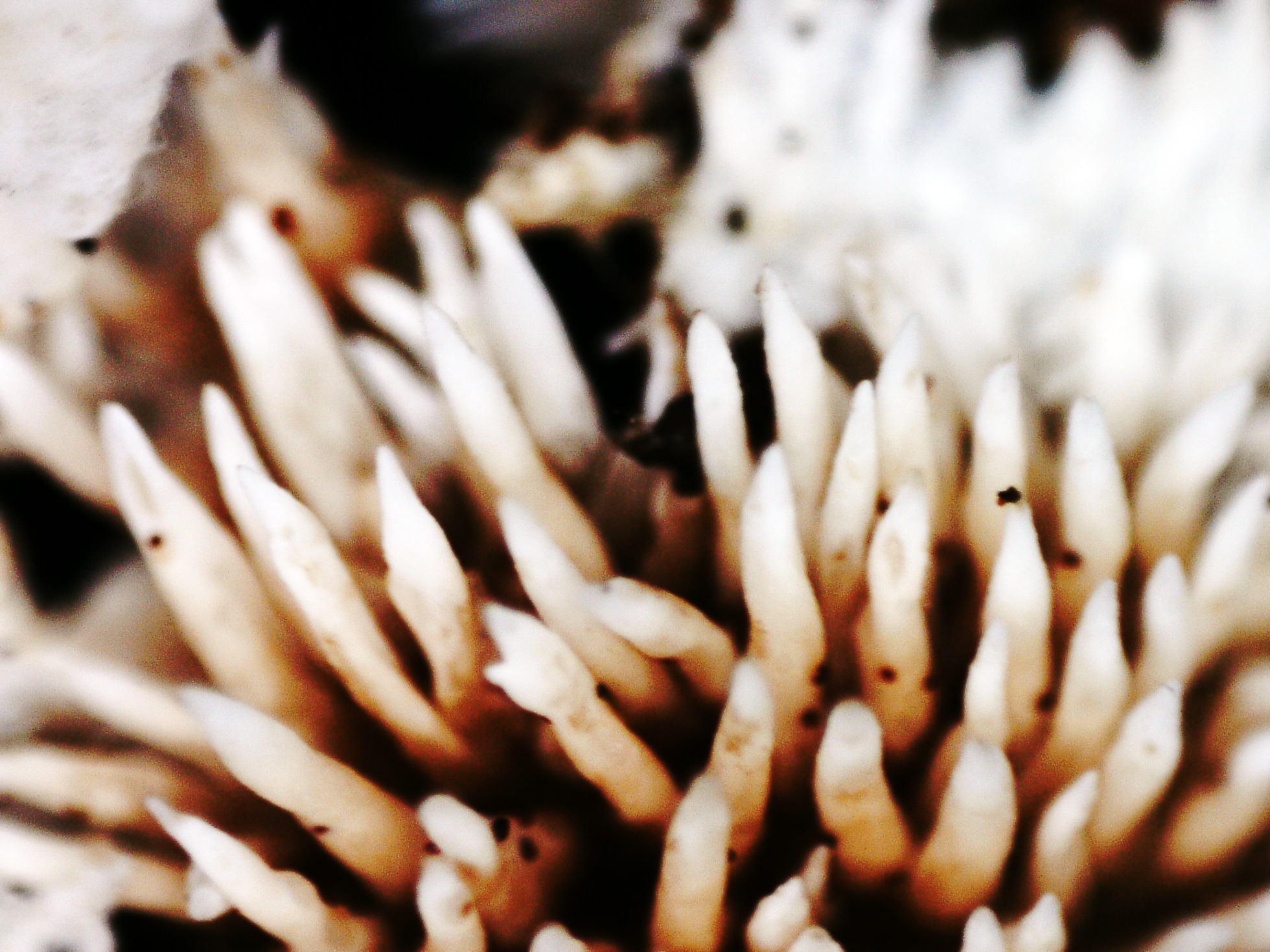 Un Corticial hydnoide con acúleos de un notable tamaño, con un tenue subículo común de color blanquecino, fotografiado el 8 de septiembre pasado en el Valle de Pineta (Bielsa).