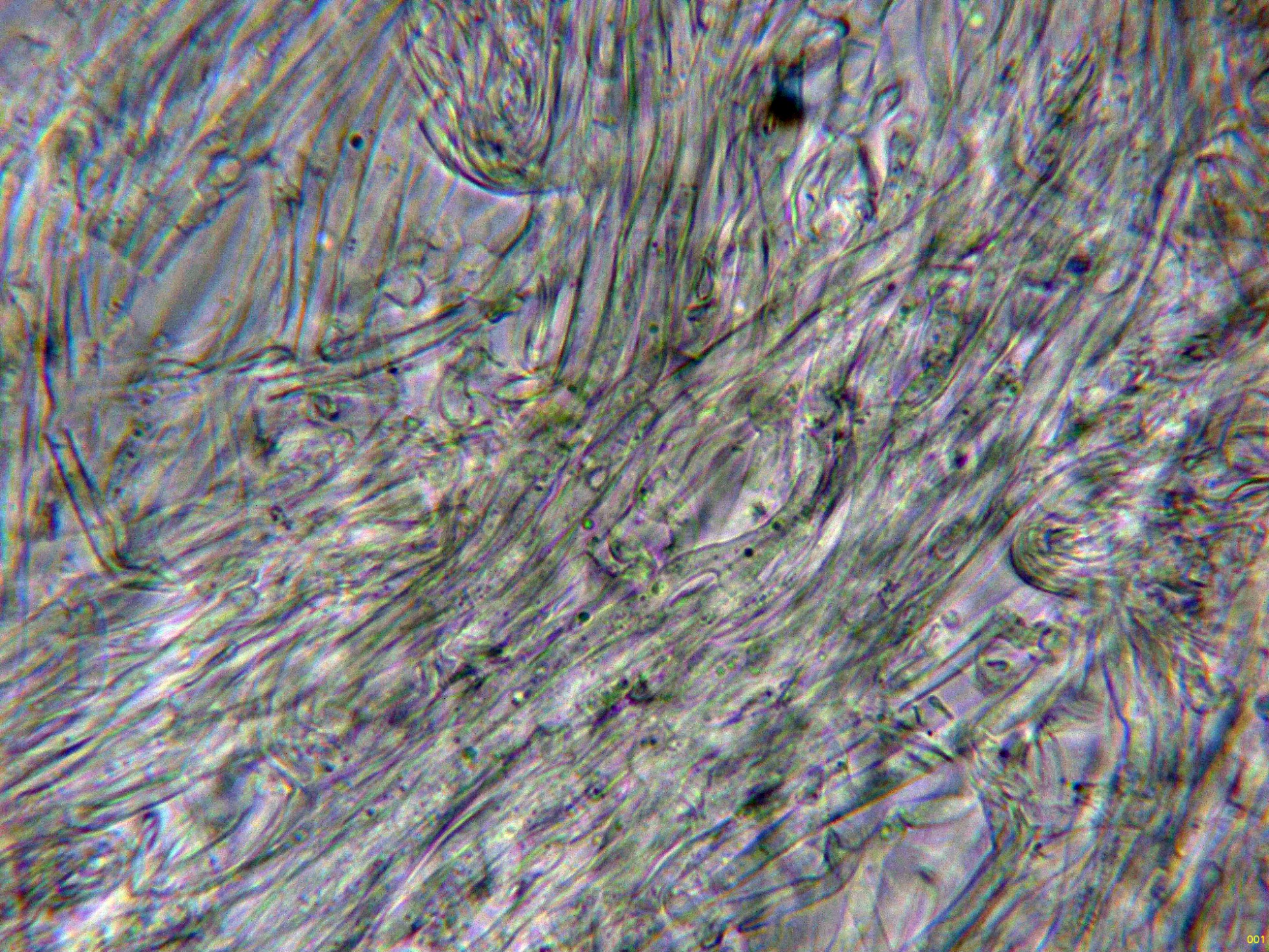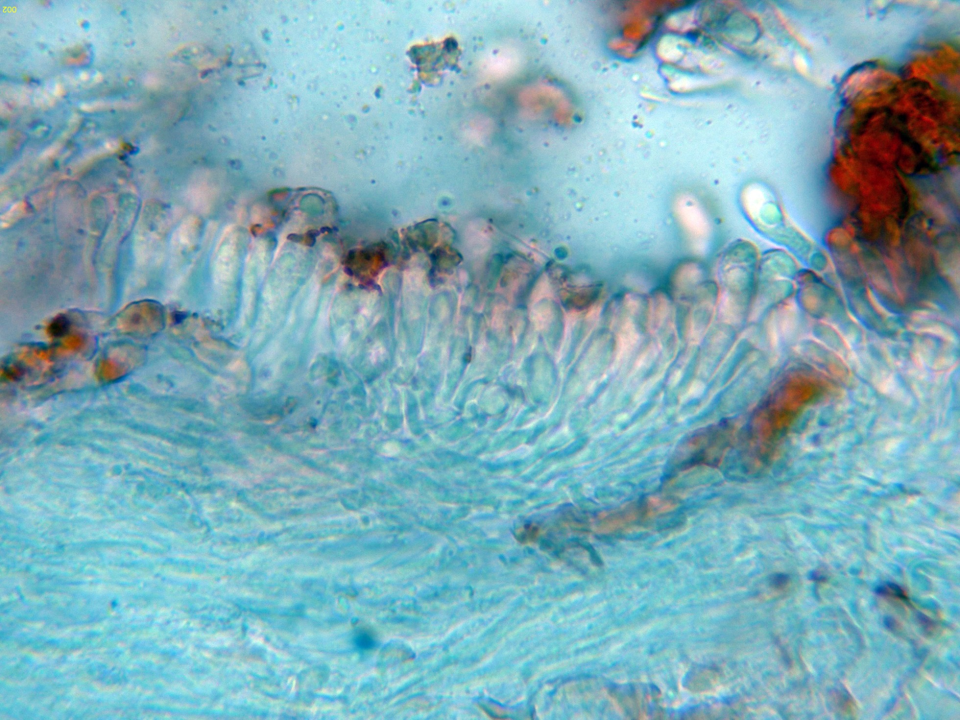 El himenio, sin cistidios diferenciados, en solución de Rojo Congo: