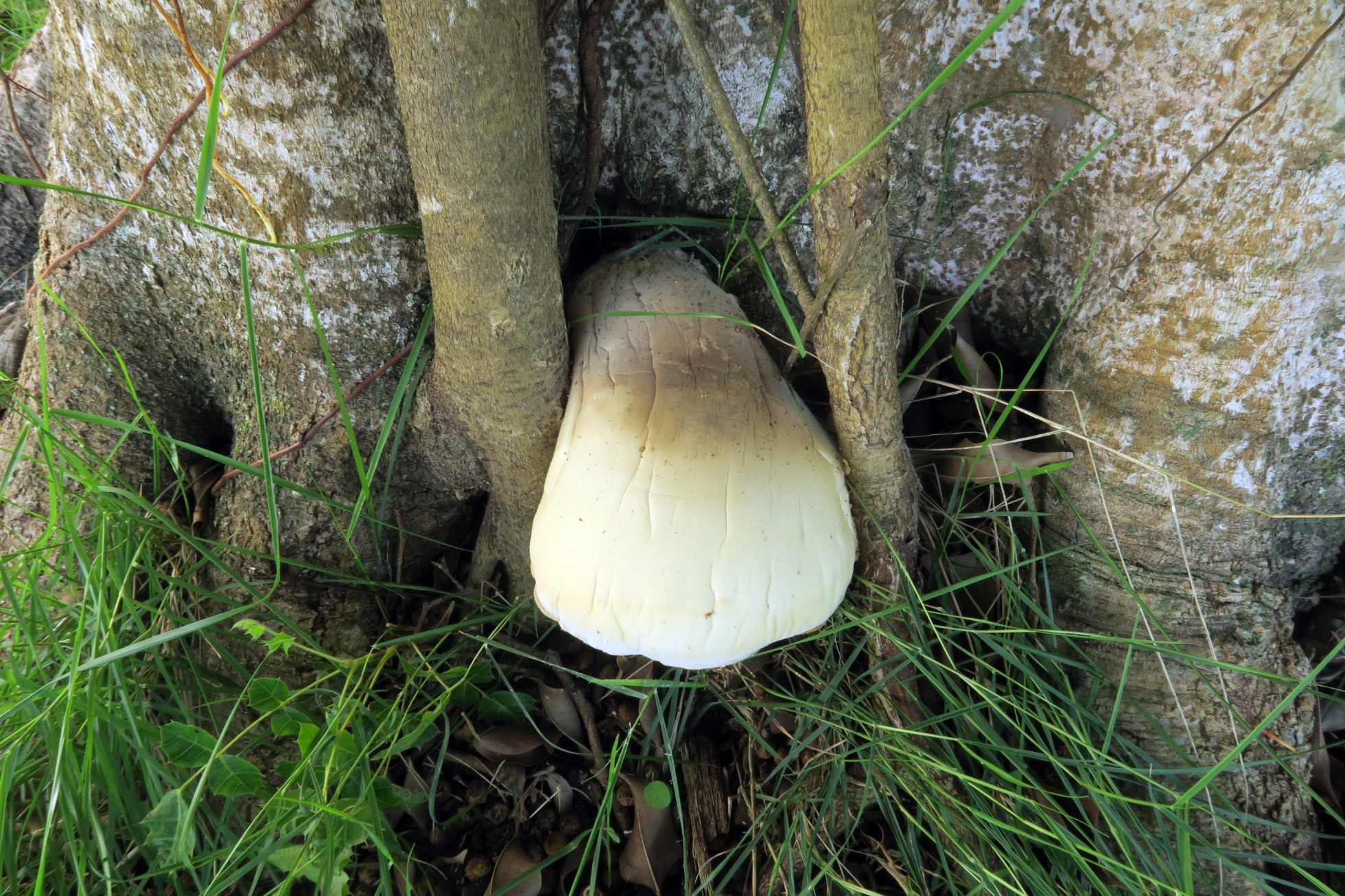 Un hongo de grandes dimensiones (más de 20 cm.), creciendo al lado del tronco de un árbol tropical, fotografiado el 7 de agosto del pasado año, en una zona ajardinada cercana a la localidad de Bávaro (Punta Cana).