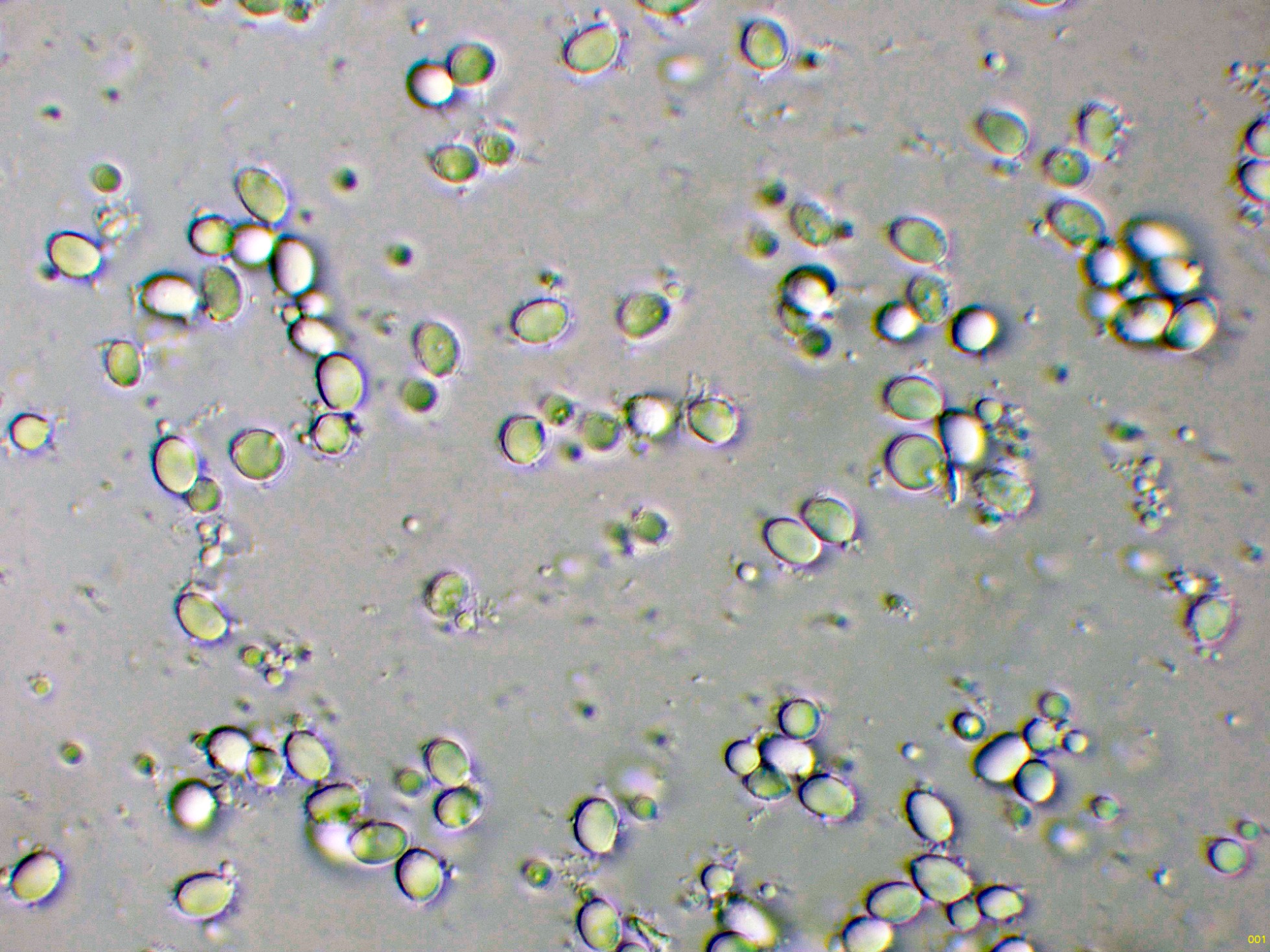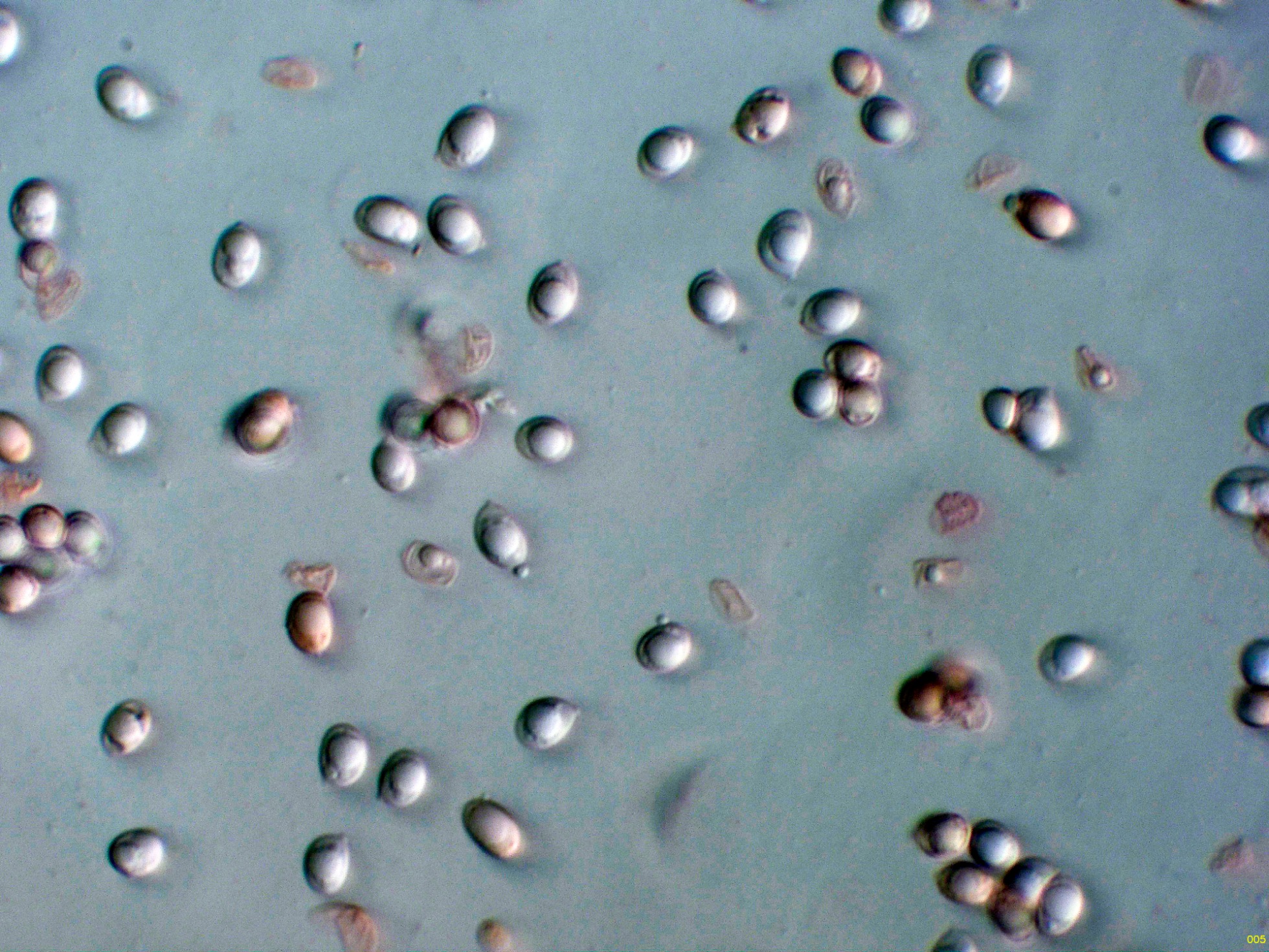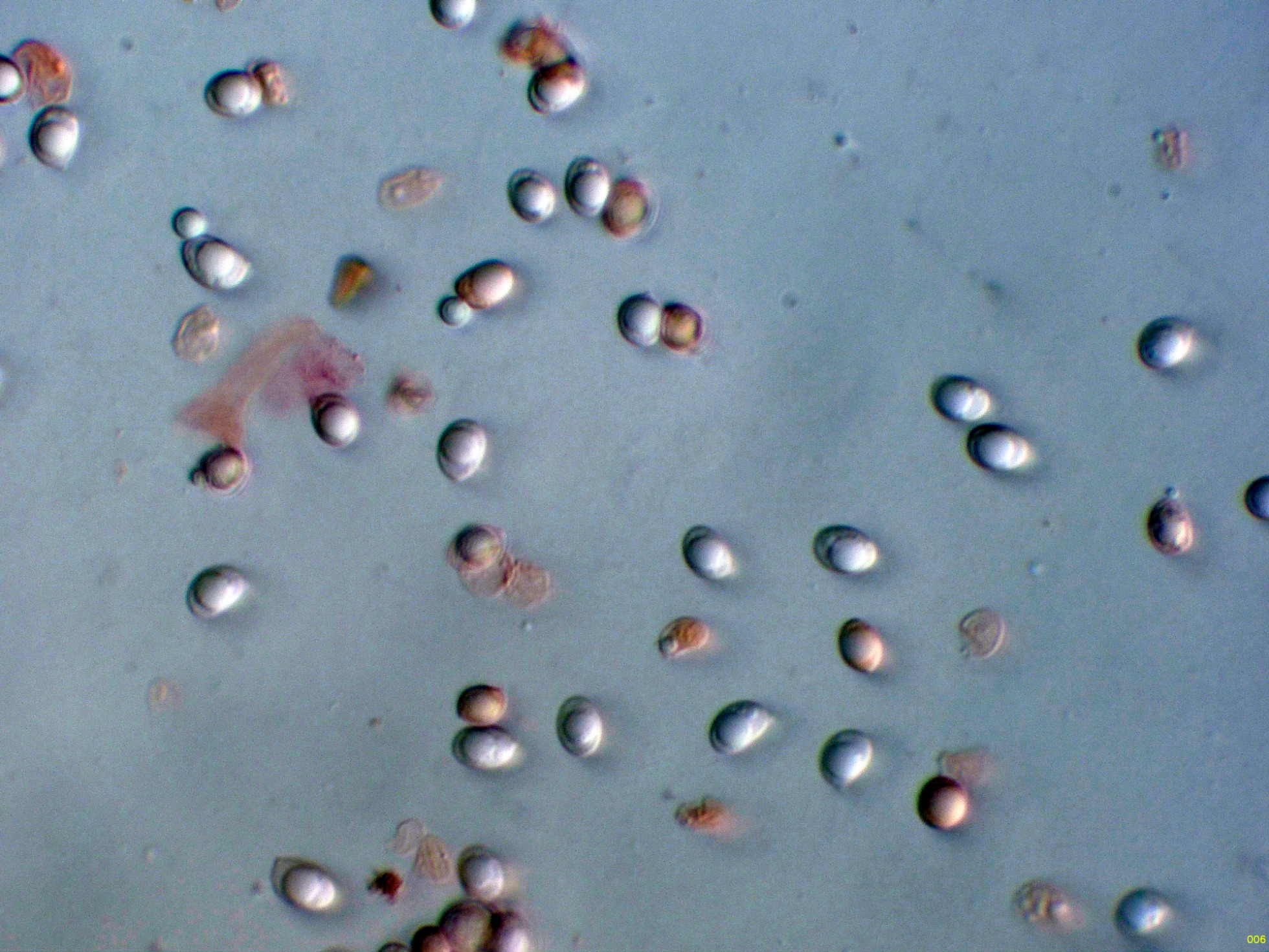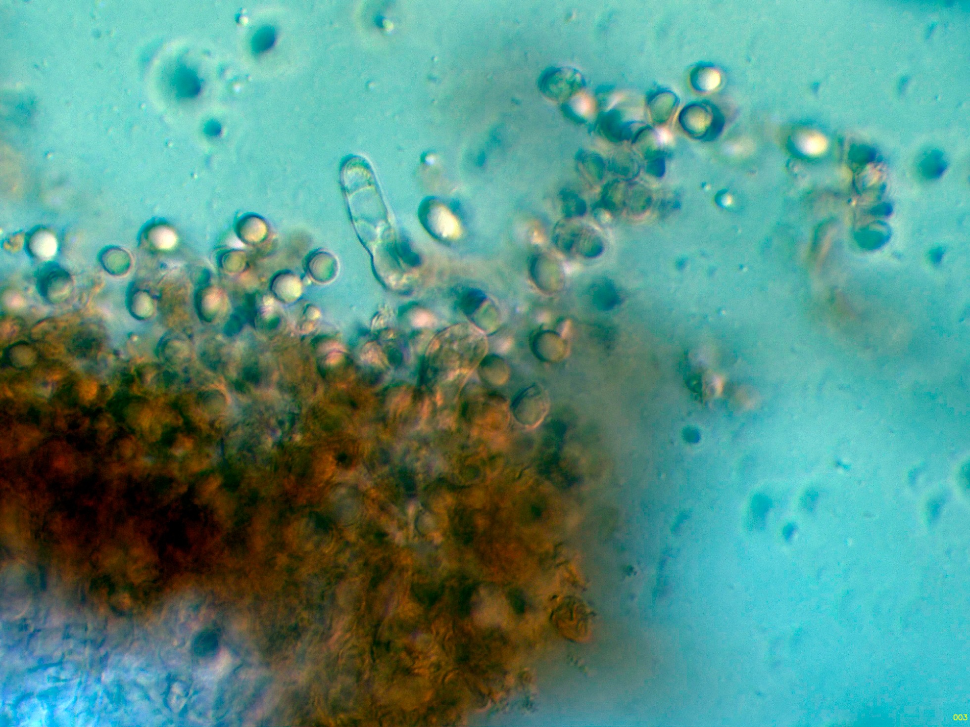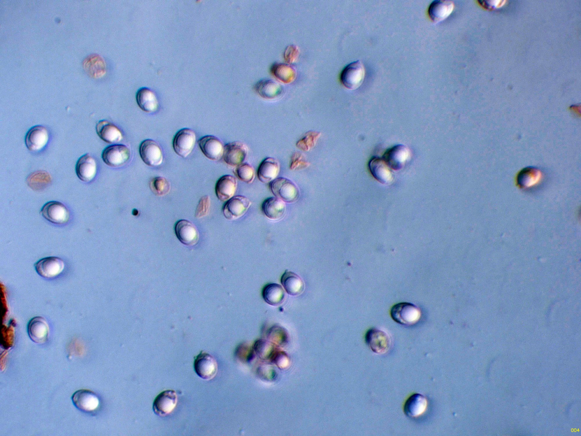 Las esporas en Reactivo de Melzer, con un comportamiento inamiloide: