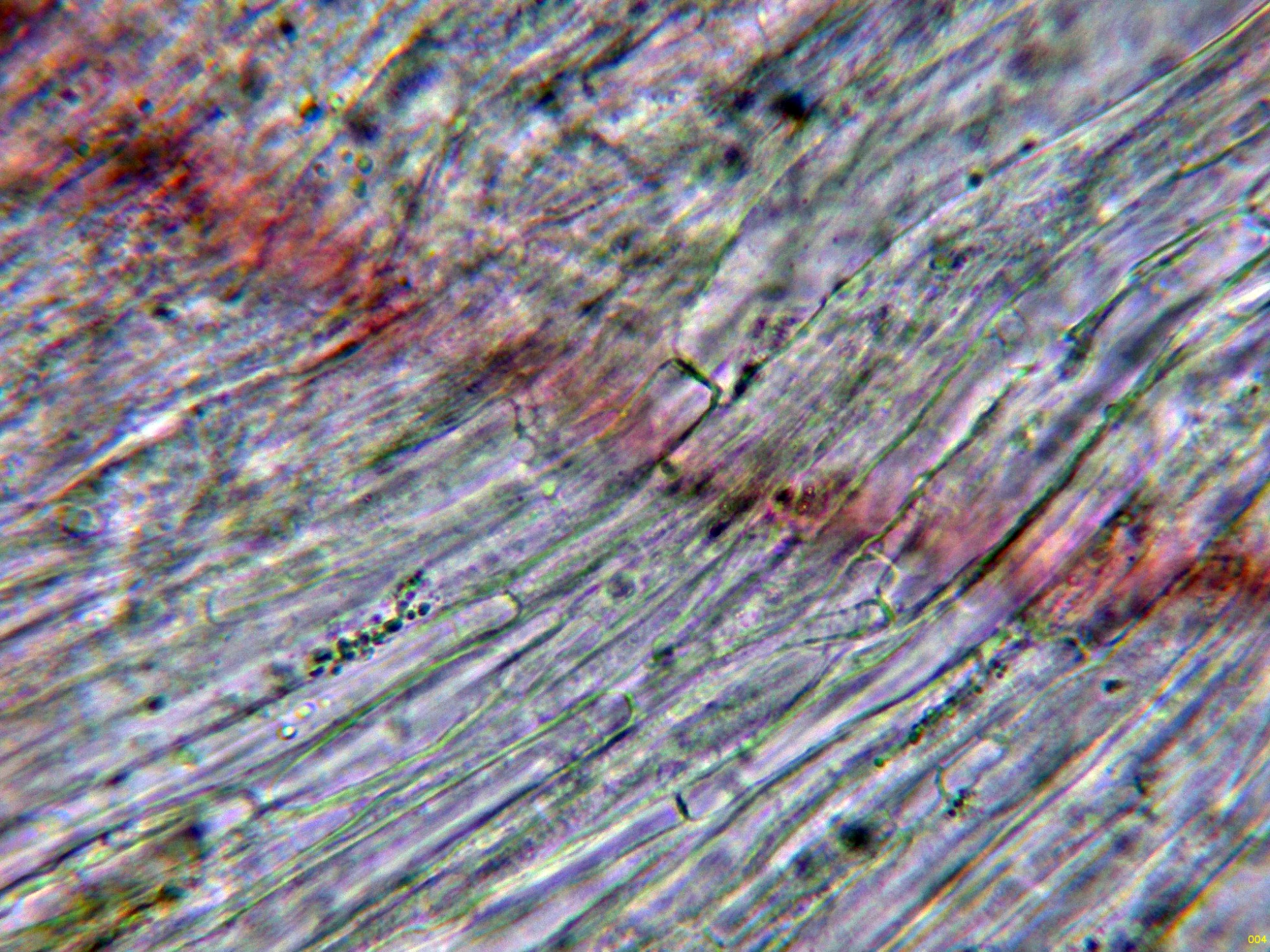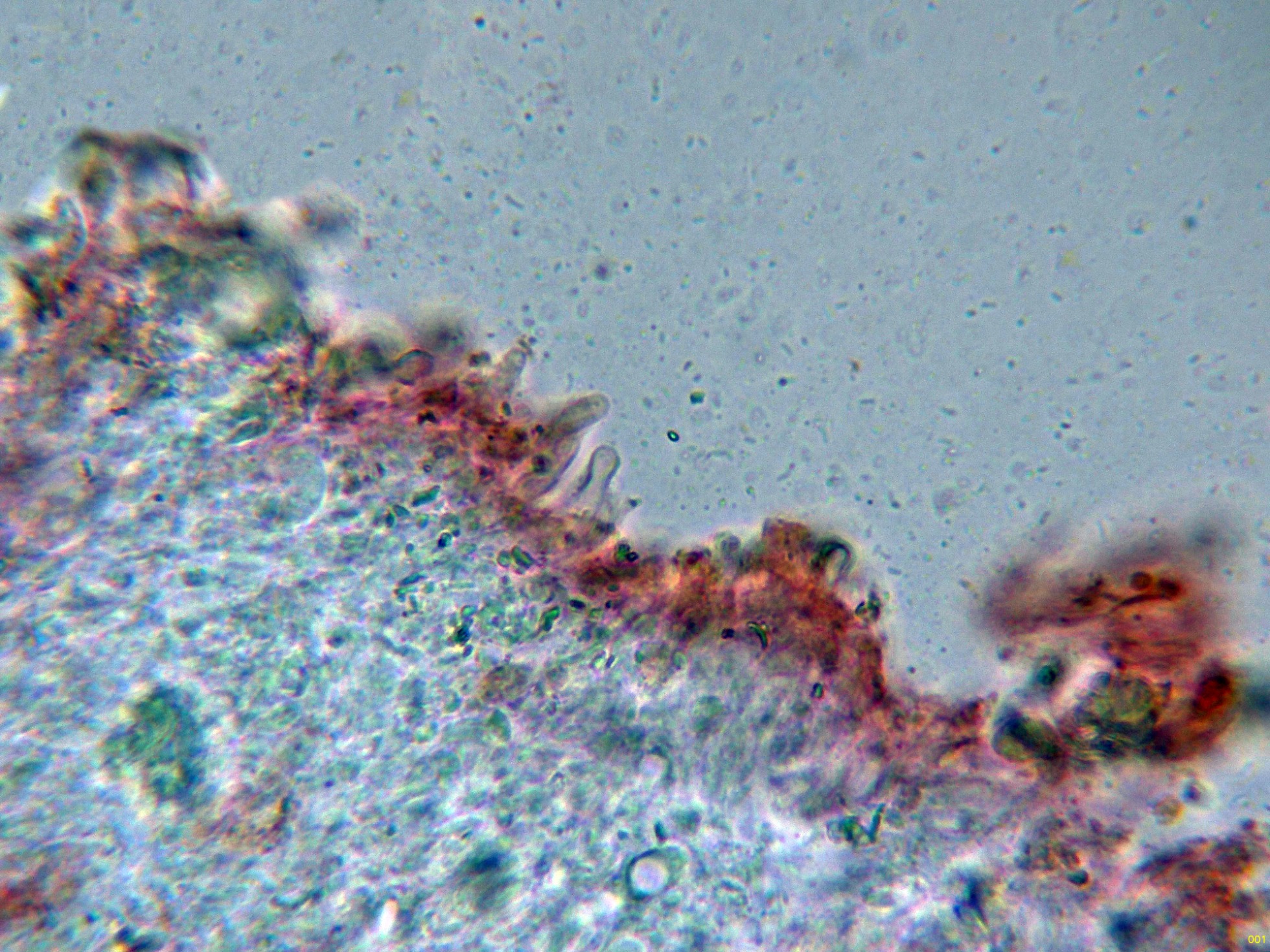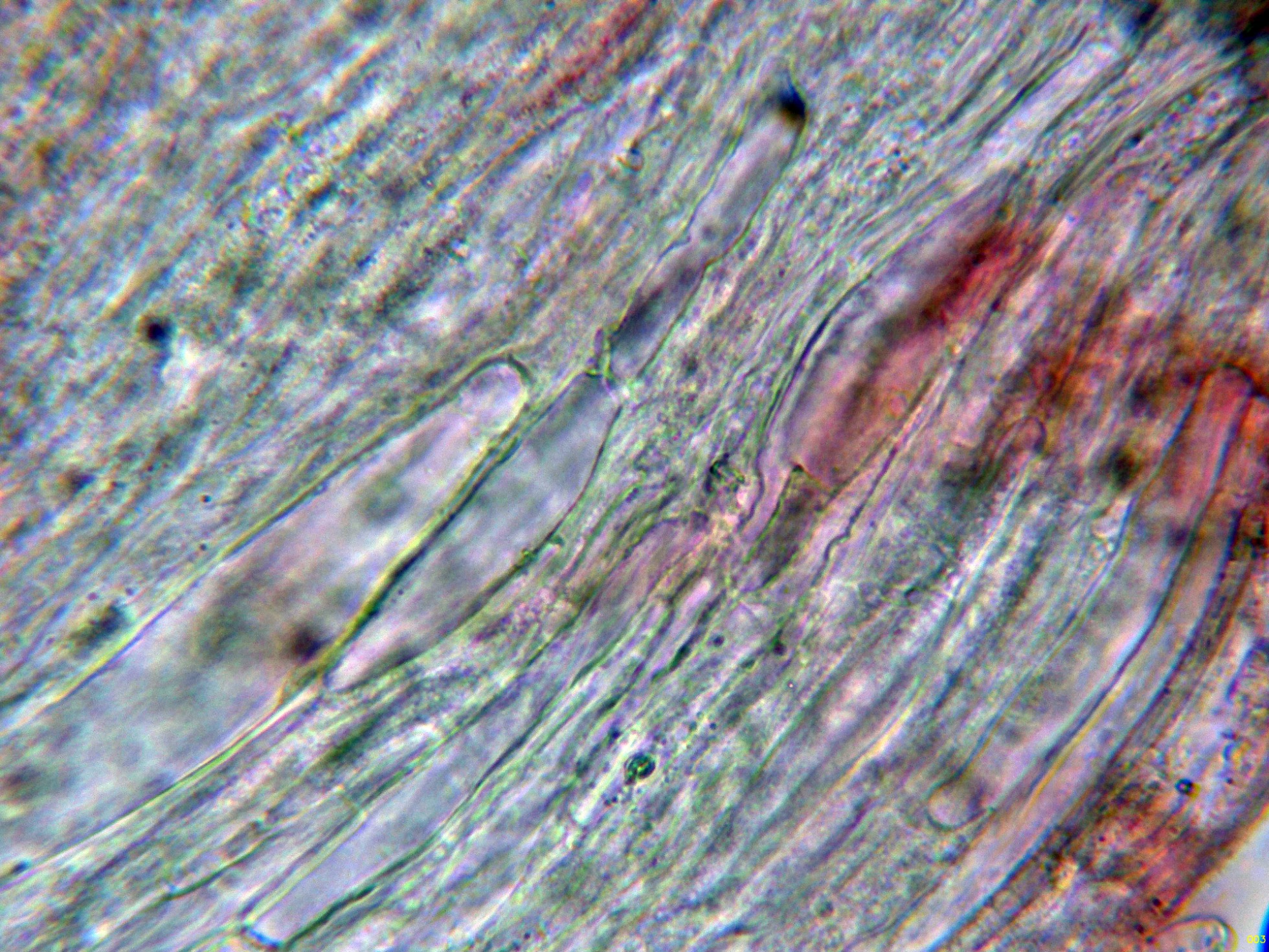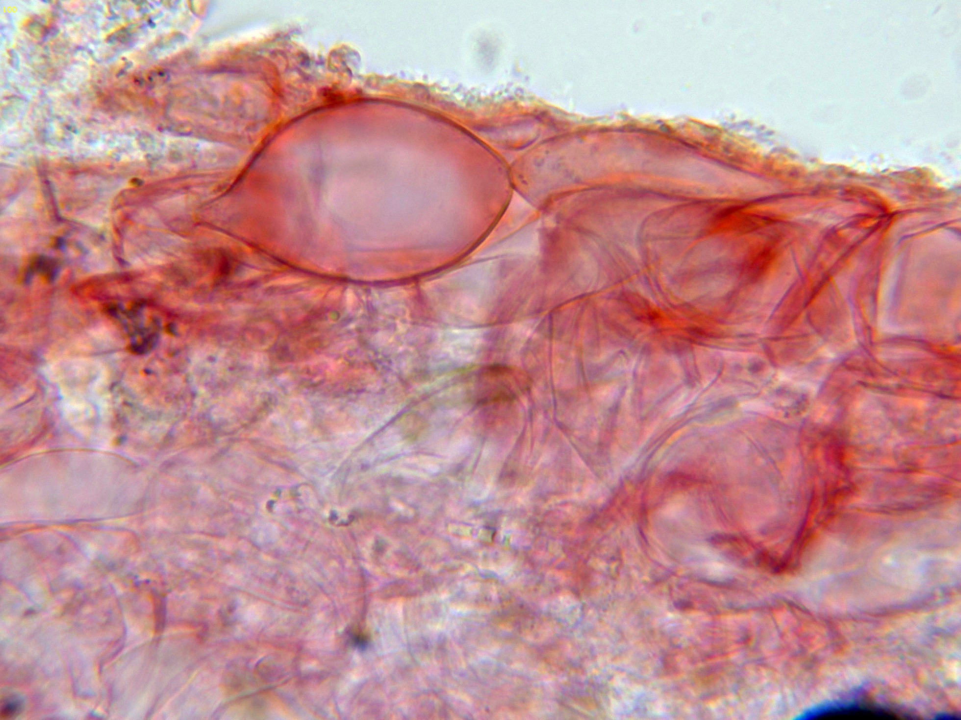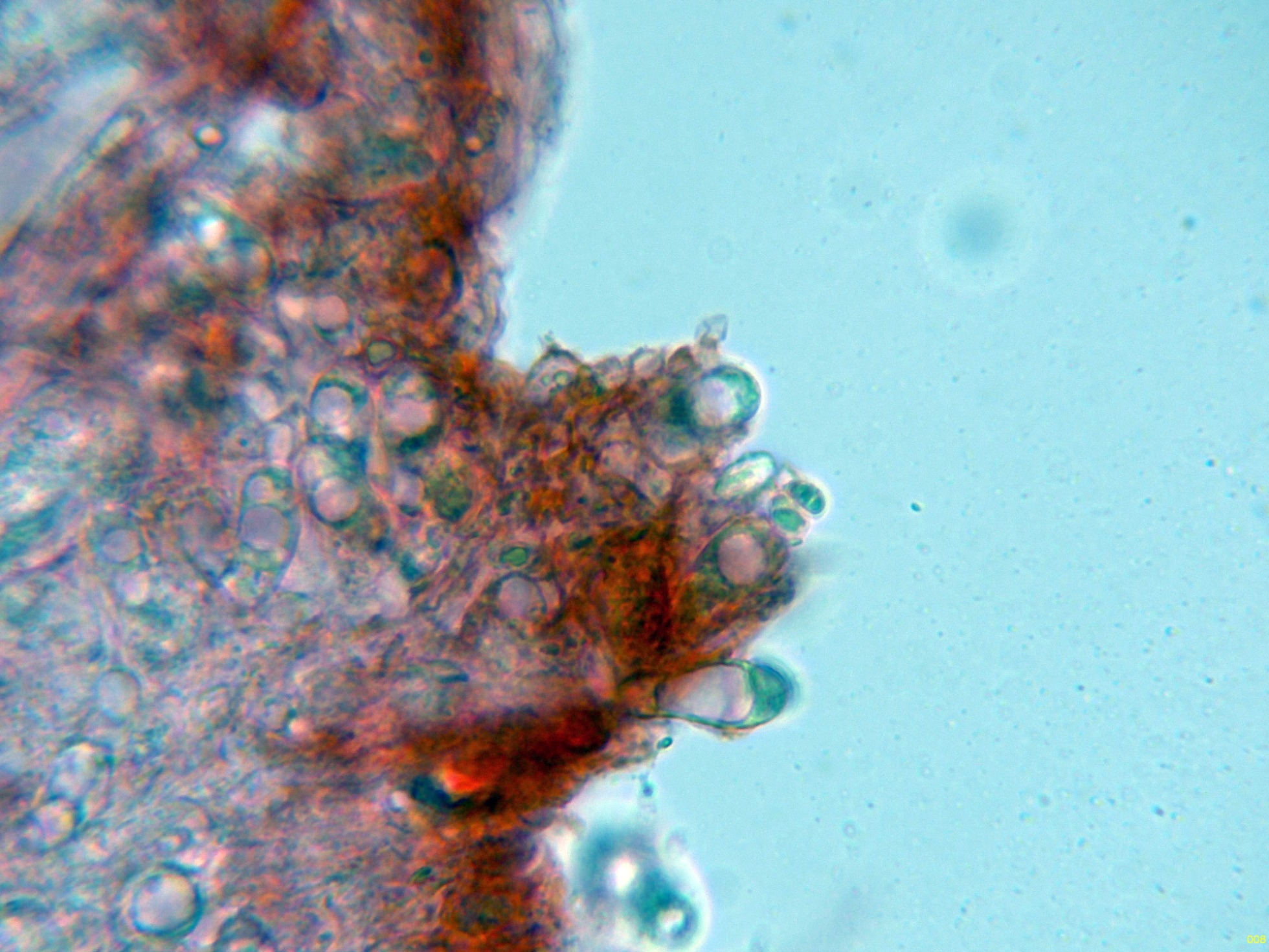 Hifas de la suprapellis, mayoritariamente entre globosas y cilíndrico elipsoidales, con una fina capa de hifas estrechas con discretas digitaciones cortas.