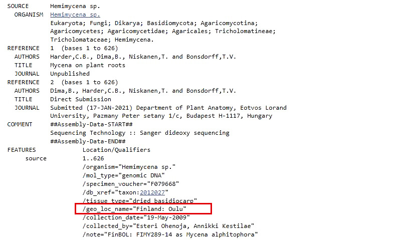 Más desconcertante es ya cuando busco información acerca de la secuencia que me da una coincidencia a nivel molecular del 99,84% la MW540735.1. En este caso vemos que la recolecta de las muestras secuenciadas se obtuvo en Finlandia, añado una captura de pantalla con la información: