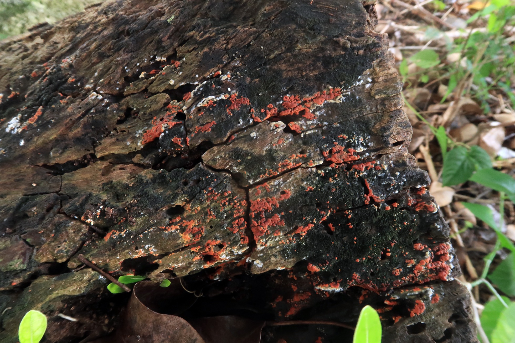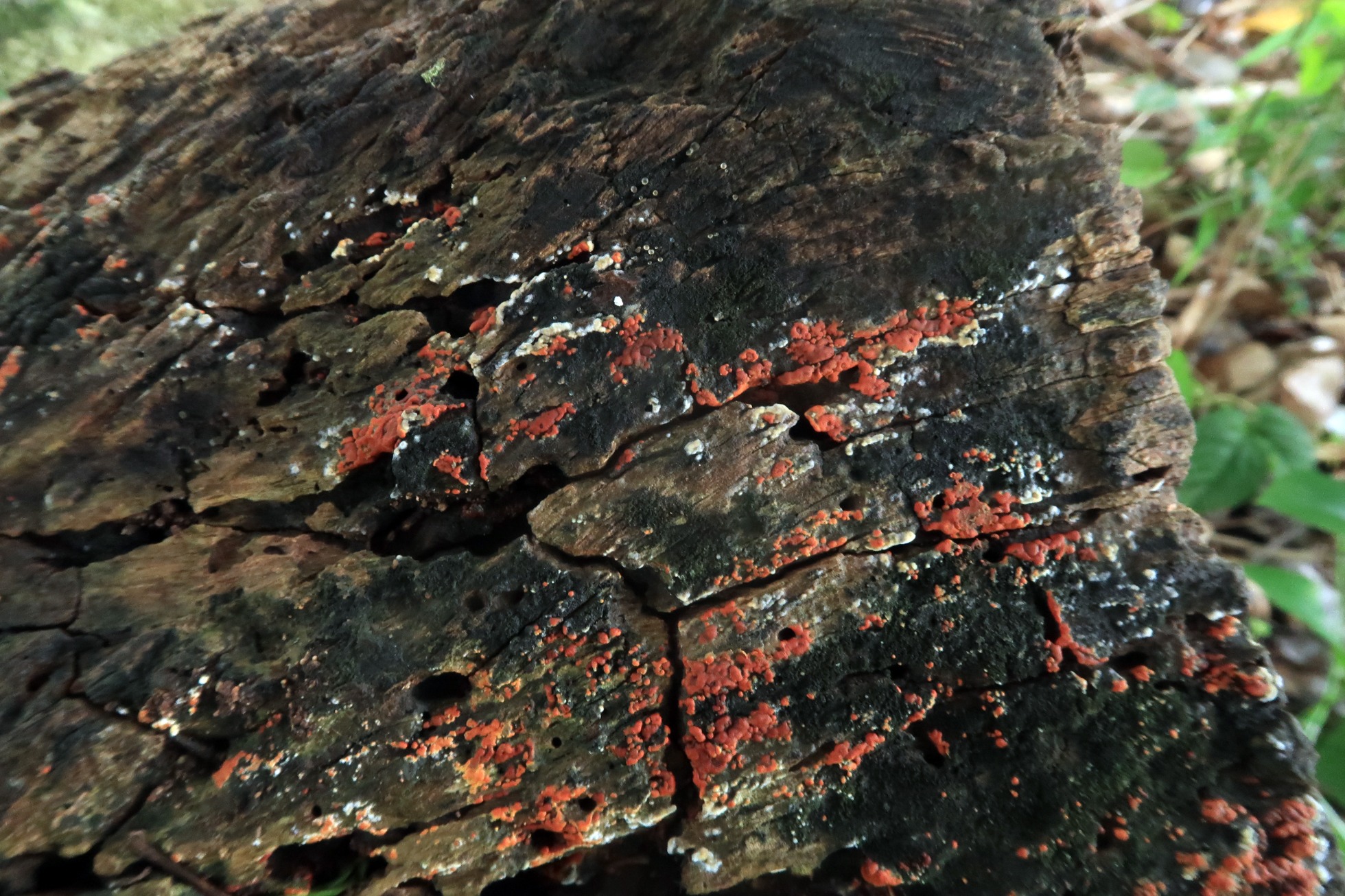 Un cromo nuevo para mí, localizado y fotografiado el pasado 11 de noviembre de 2024, brotando sobre la madera de un tronco descortezado y ya trabajado previamente: