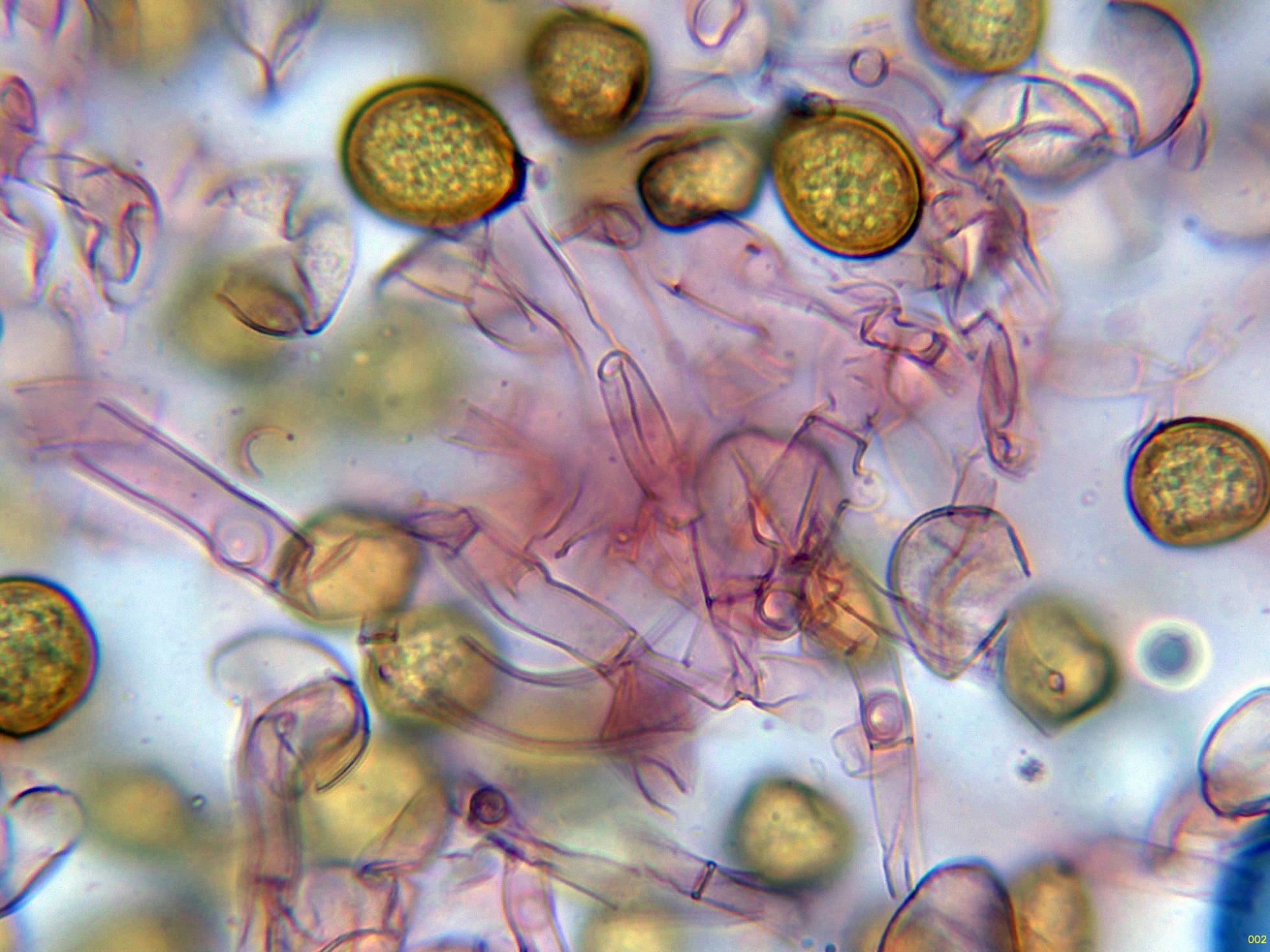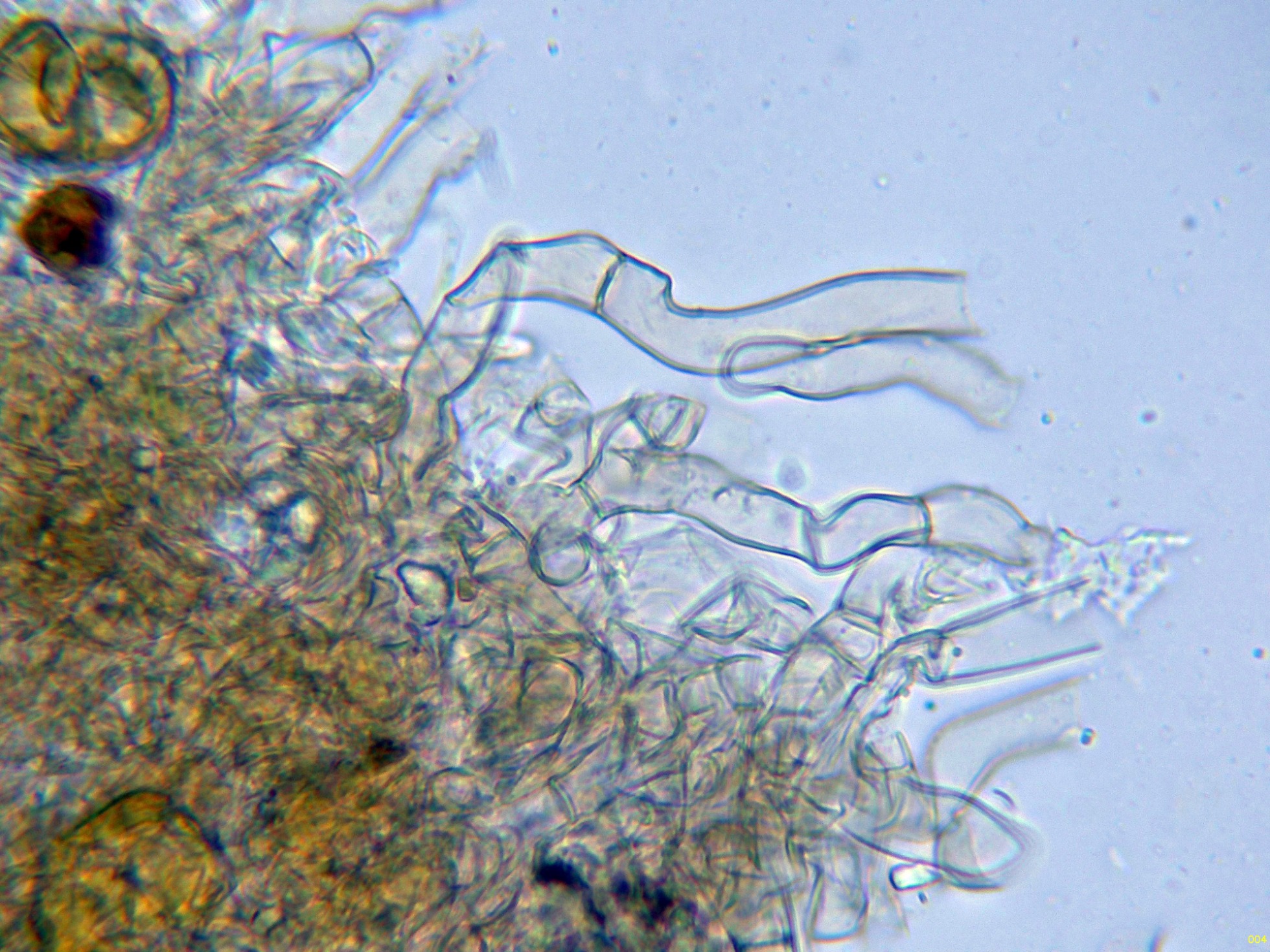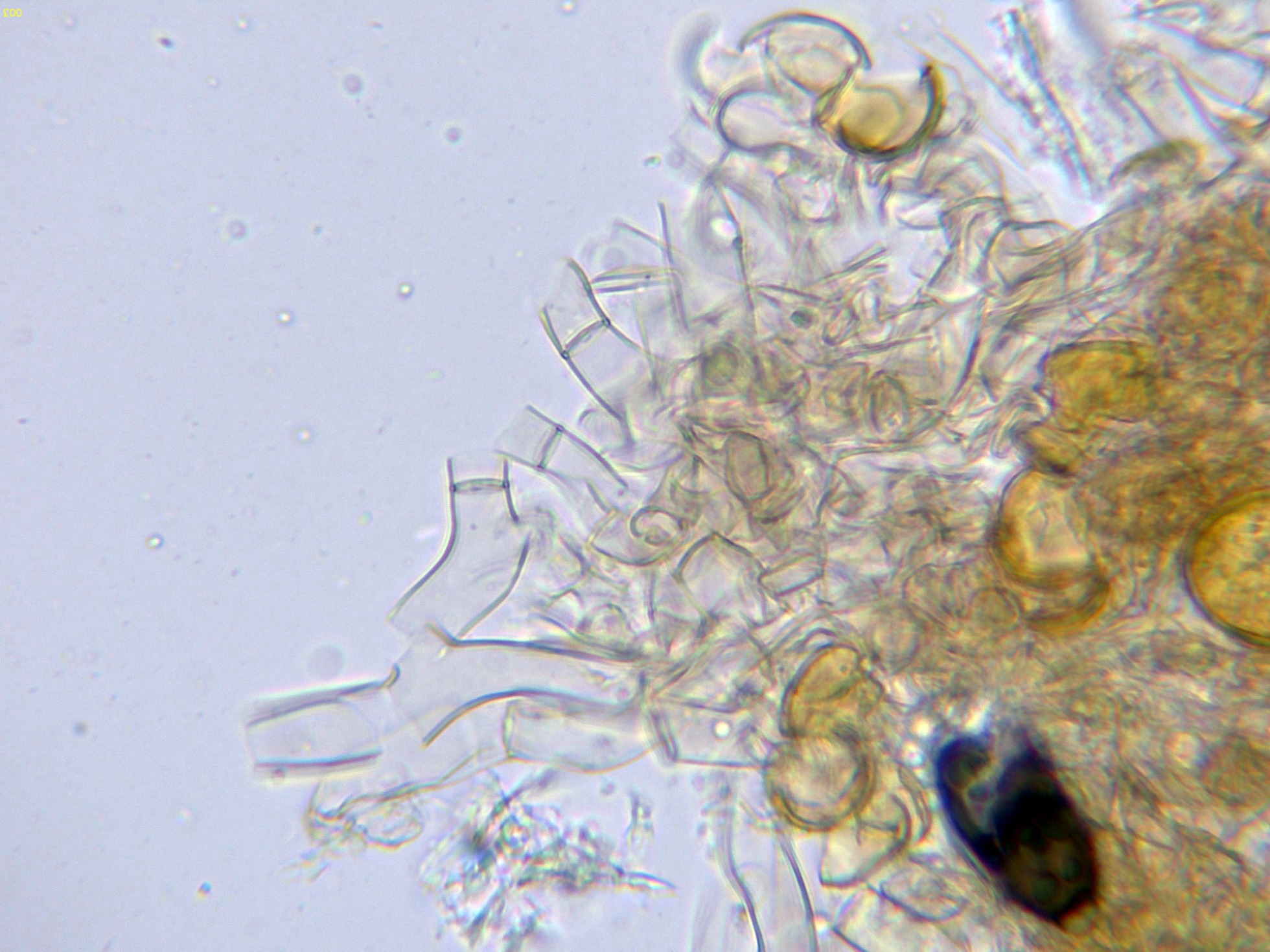 Este basidiomiceto se encontraba en su fase asexual, con hifas conidiógenas y conidios.