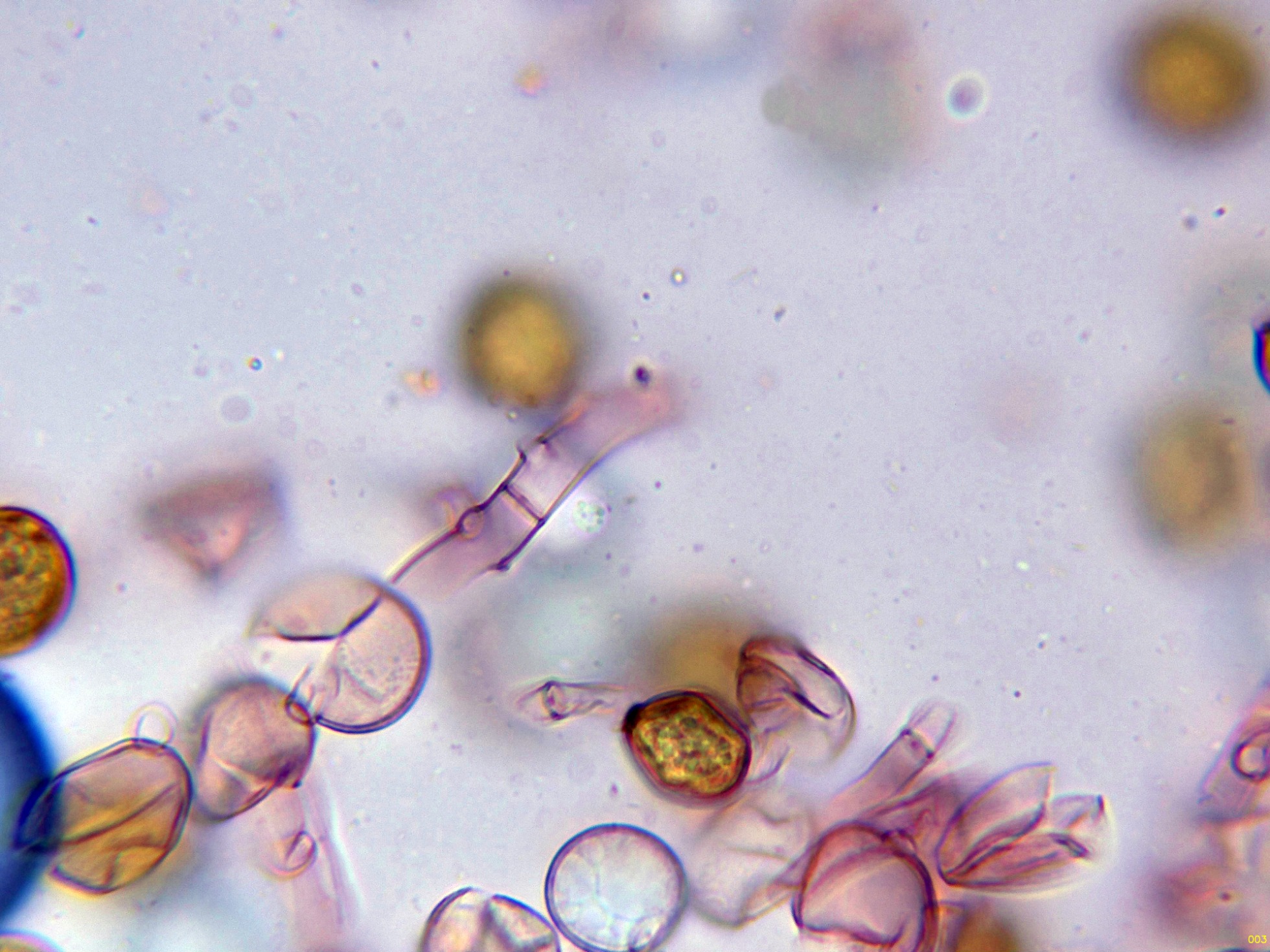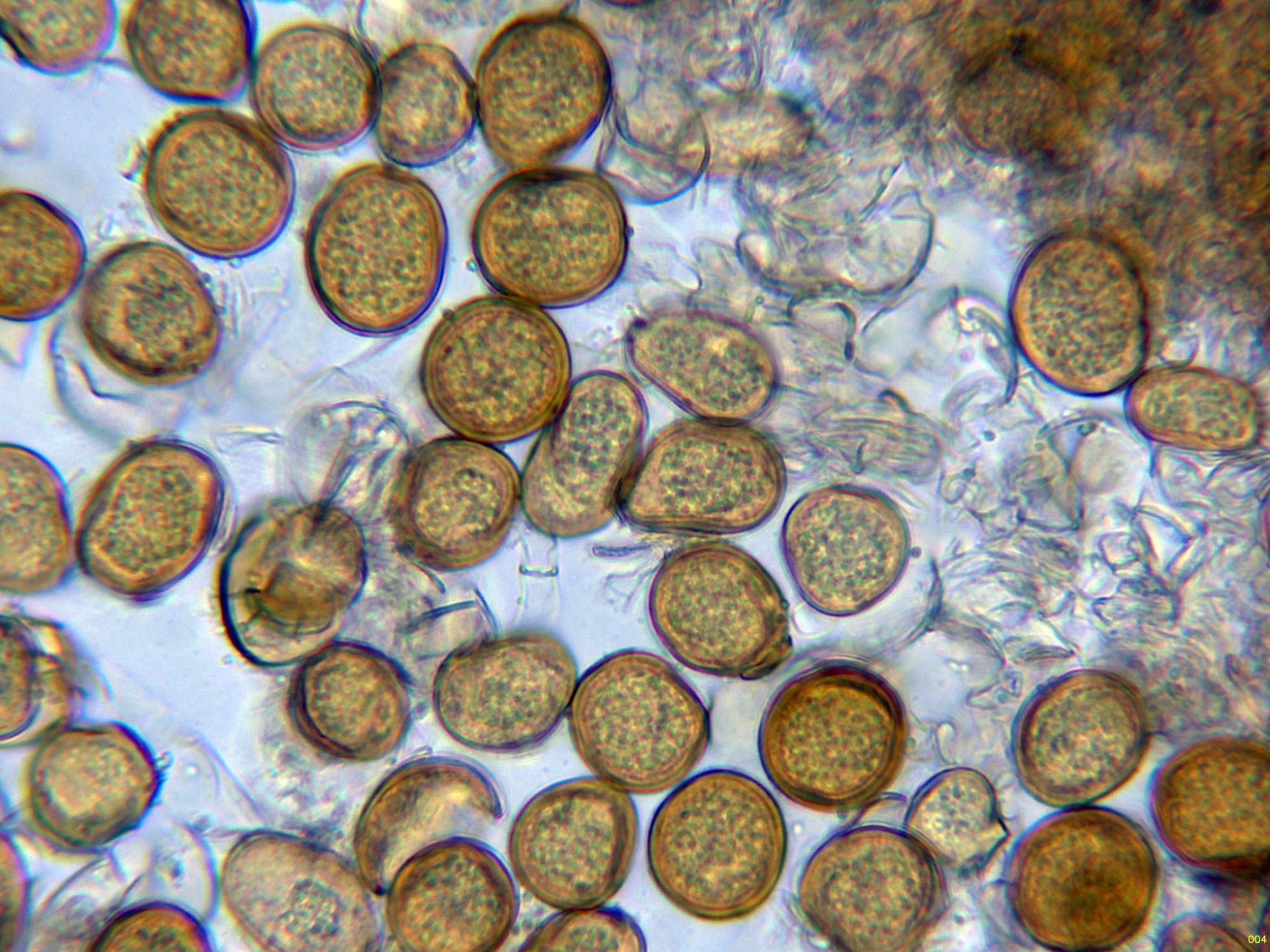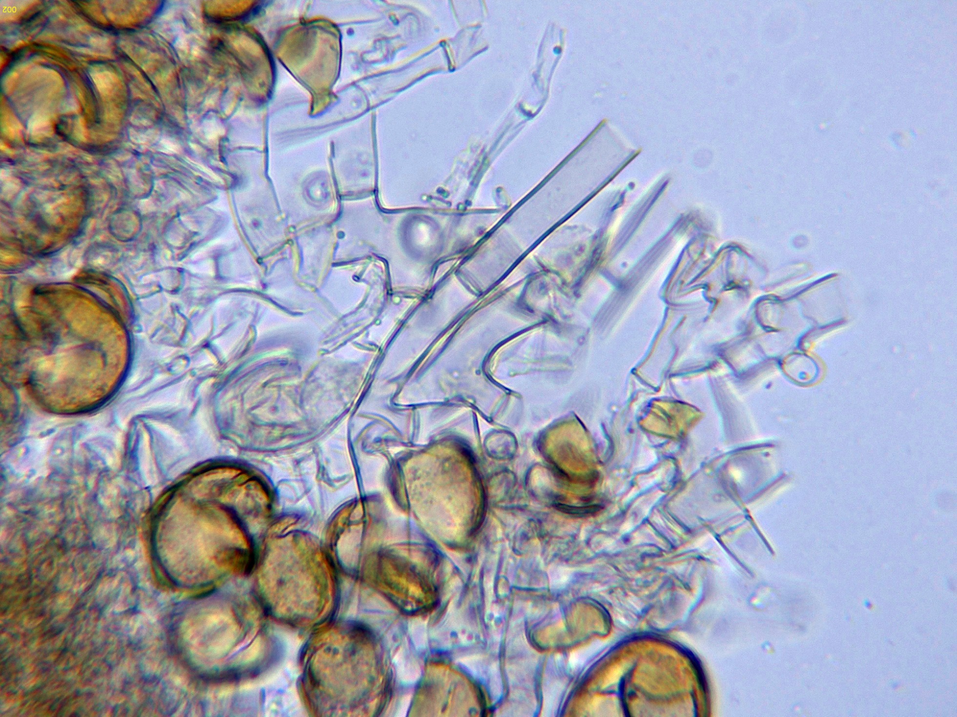 Este basidiomiceto se encontraba en su fase asexual, con hifas conidiógenas y conidios.