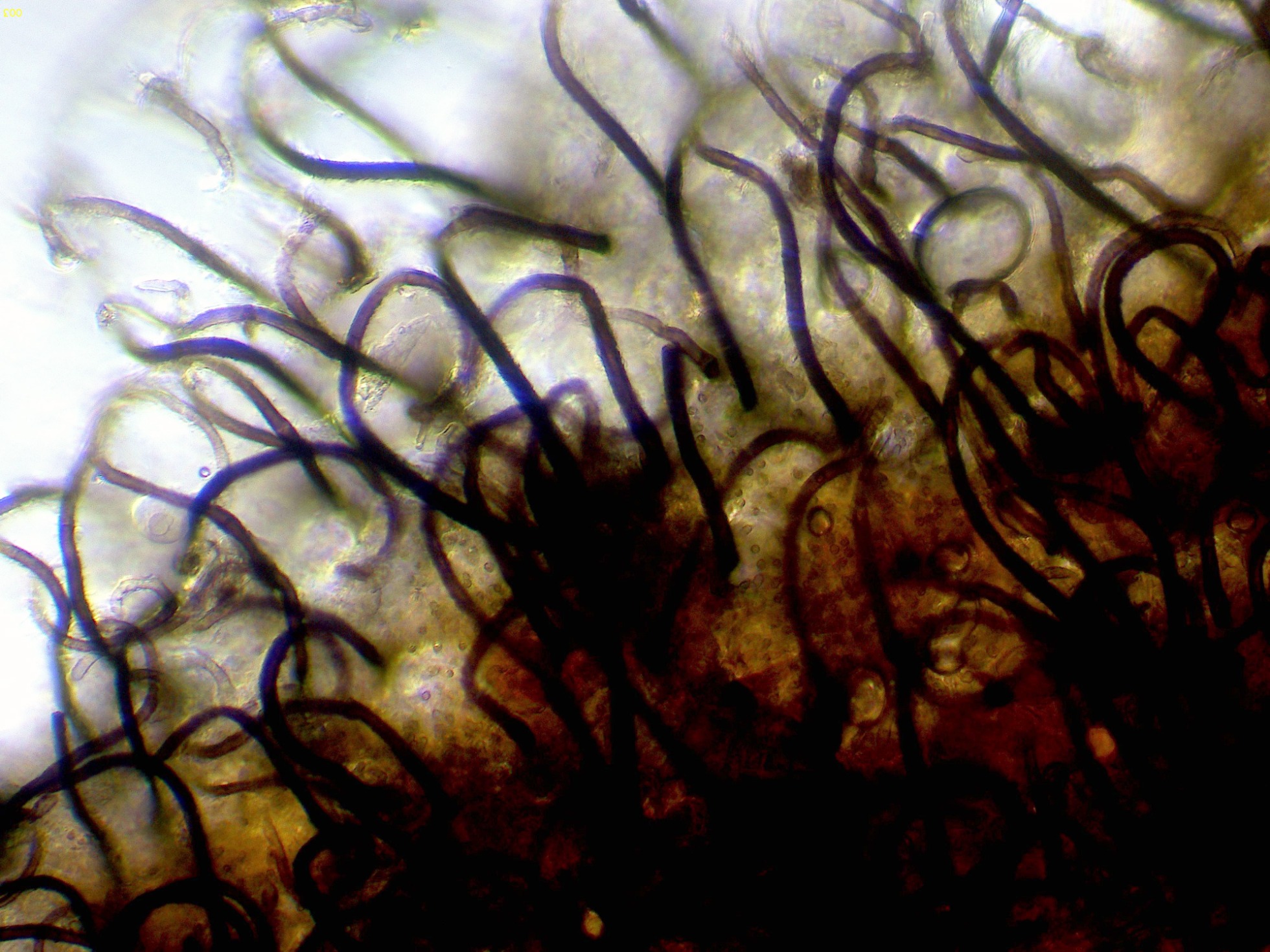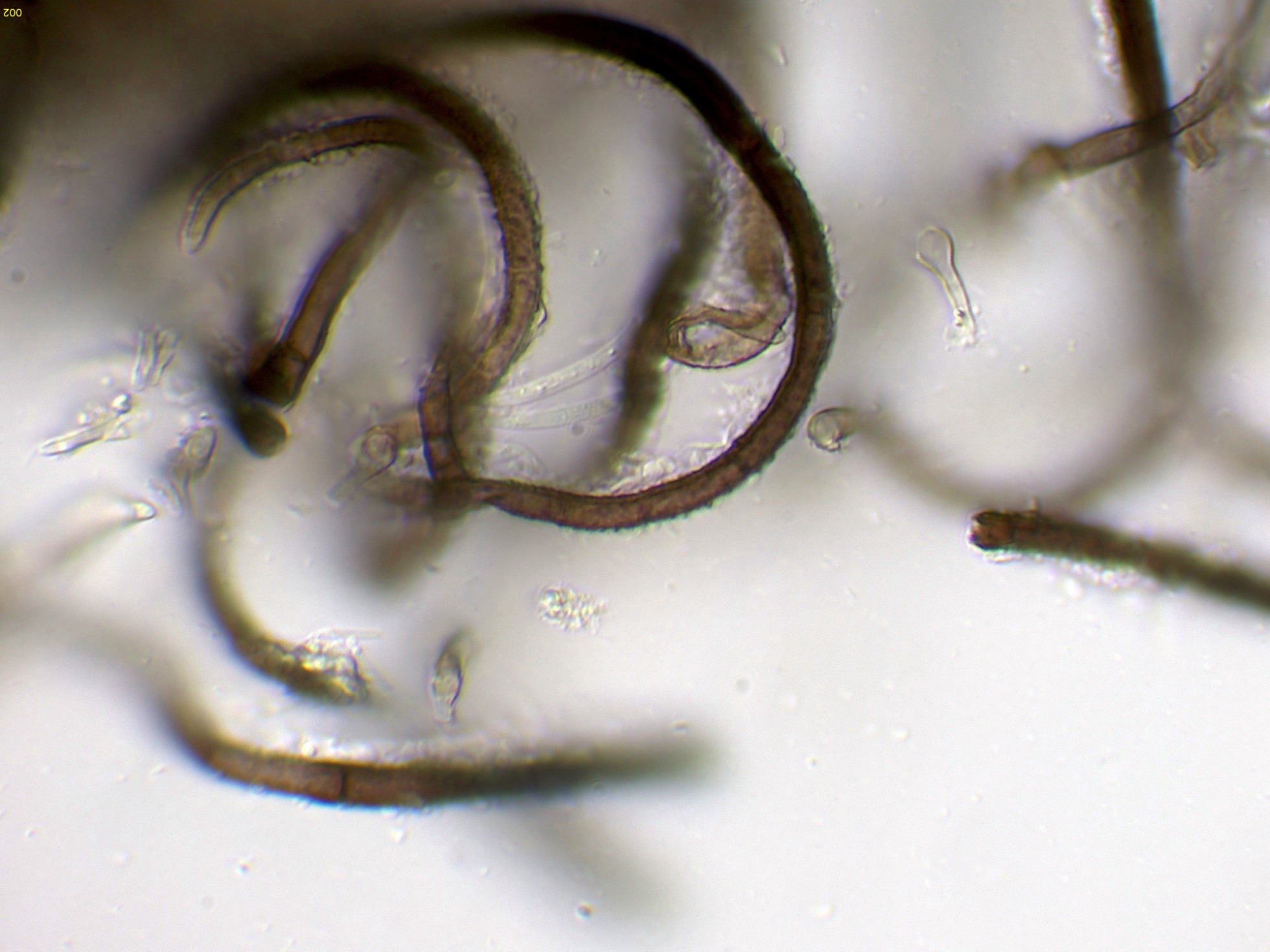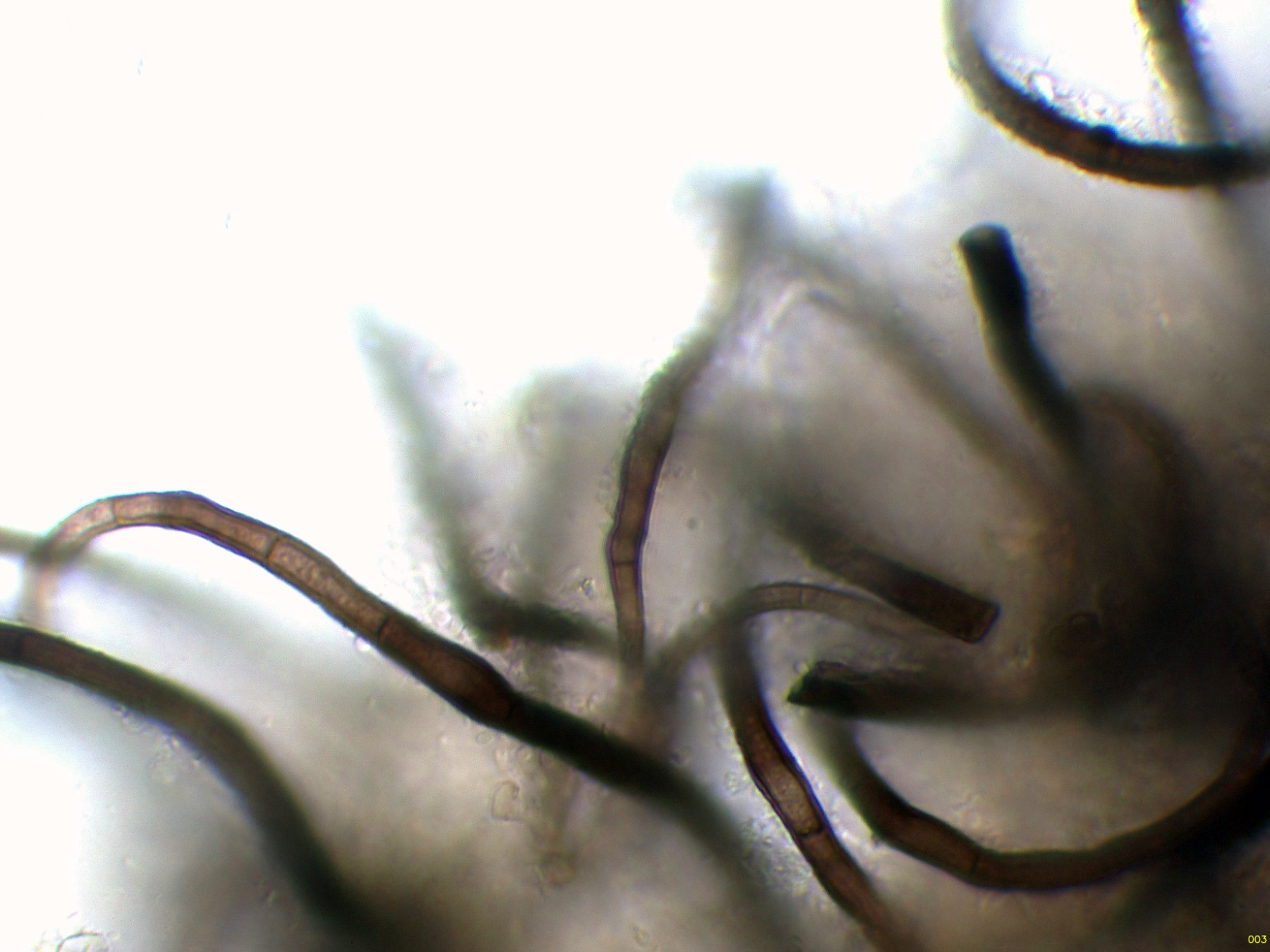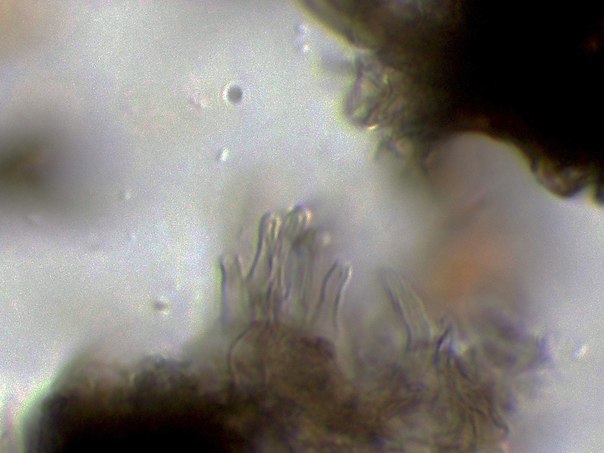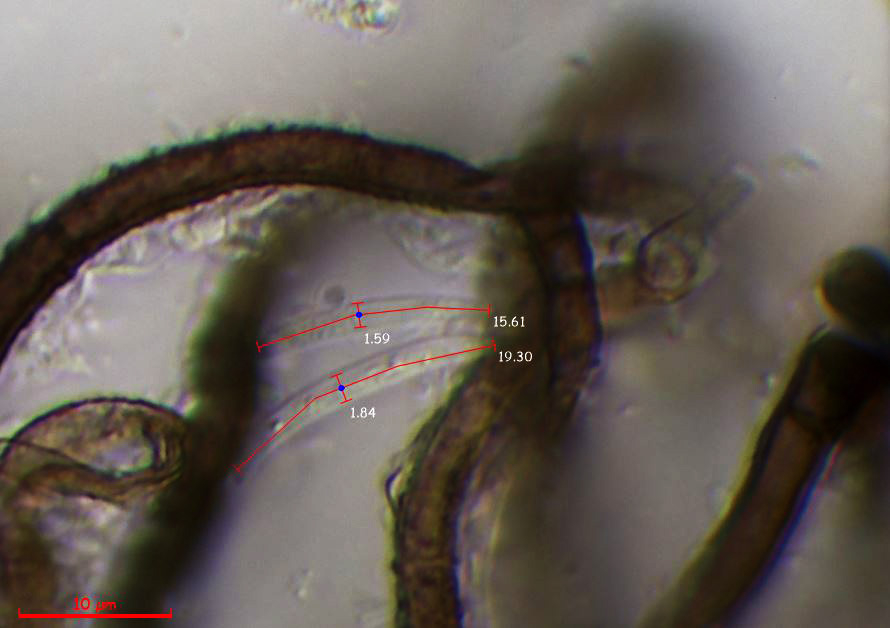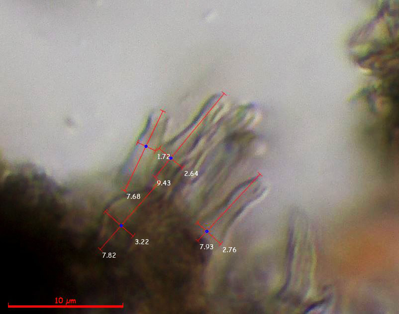 Pelos a modo de setas himeniales simples (no bifurcados).