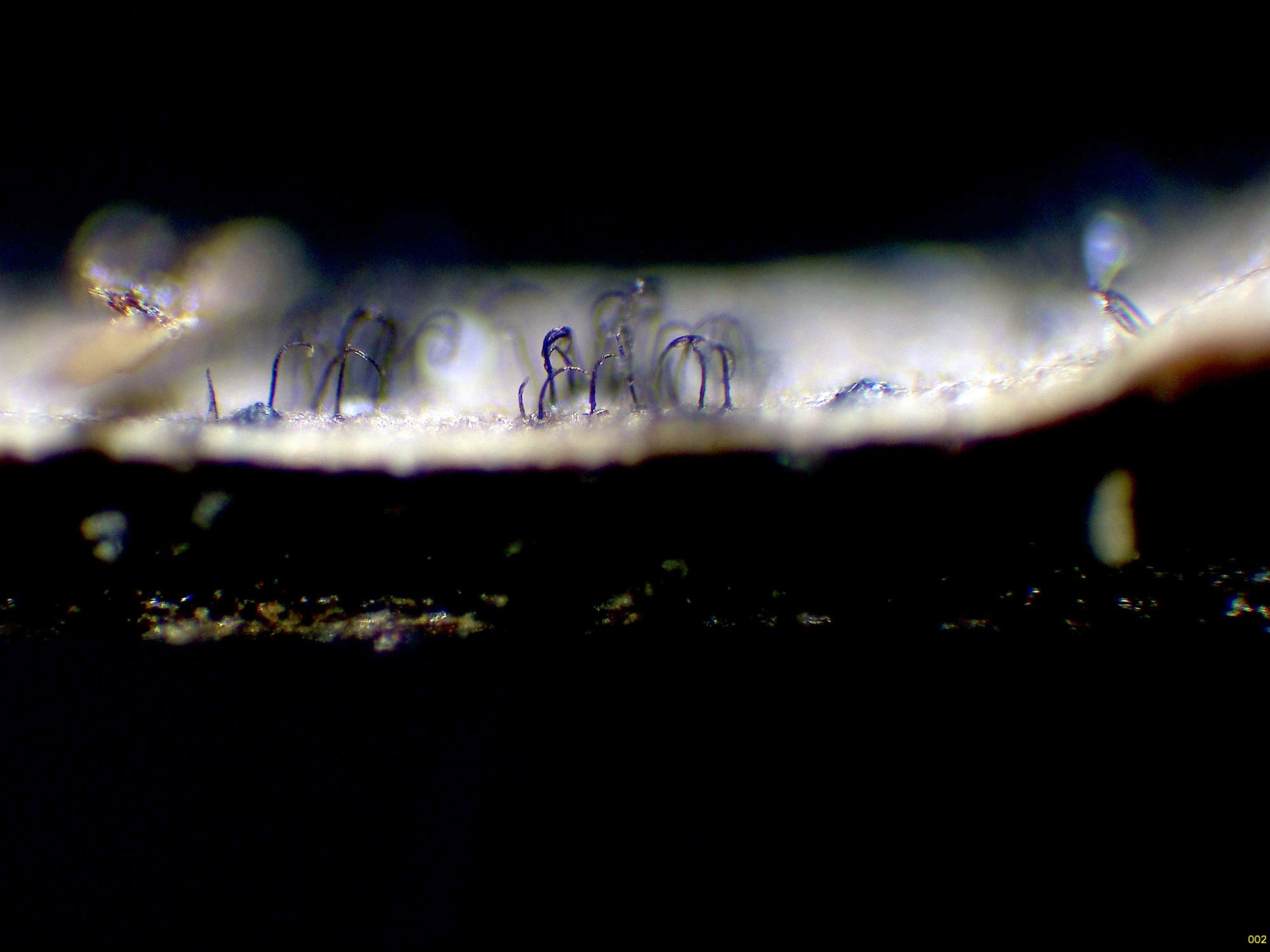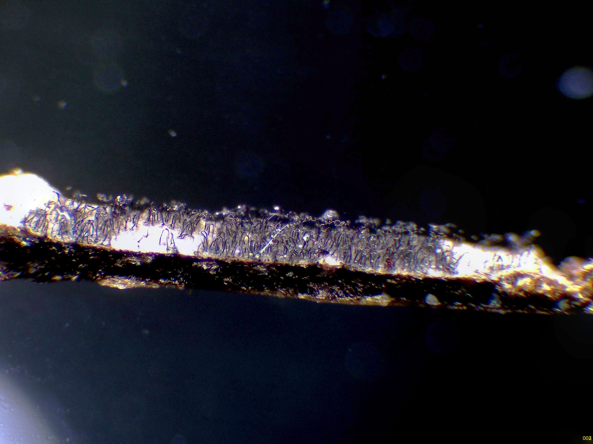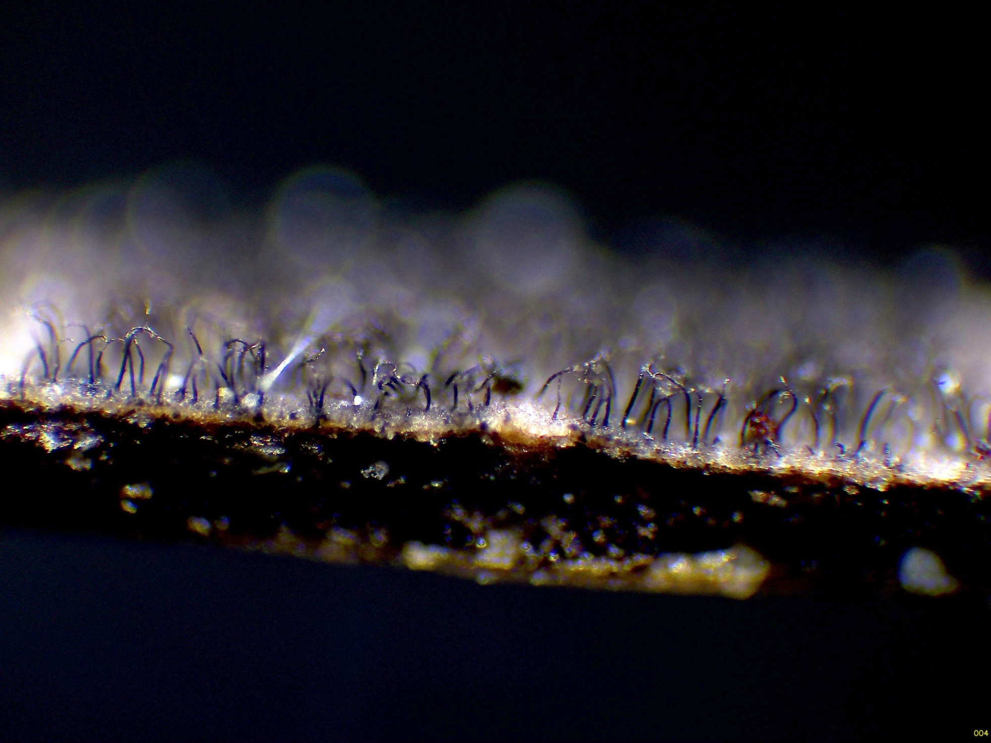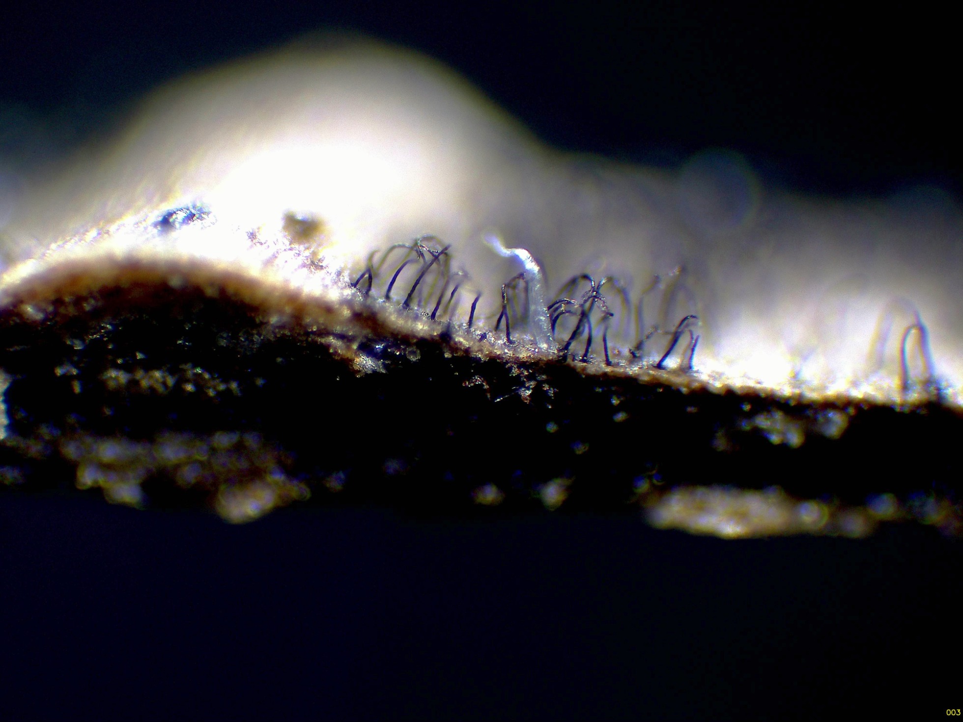 Pelos a modo de setas himeniales simples (no bifurcados).