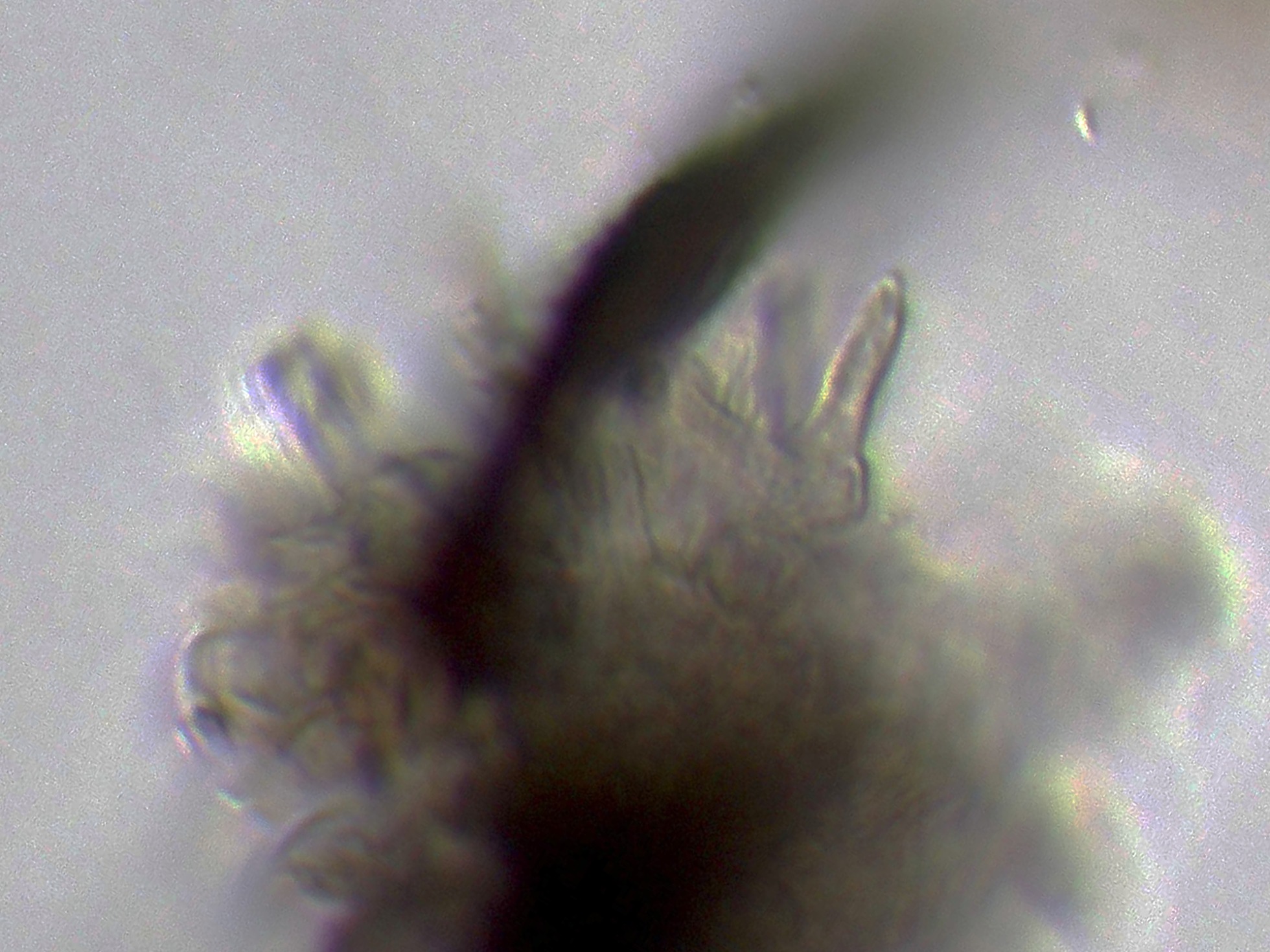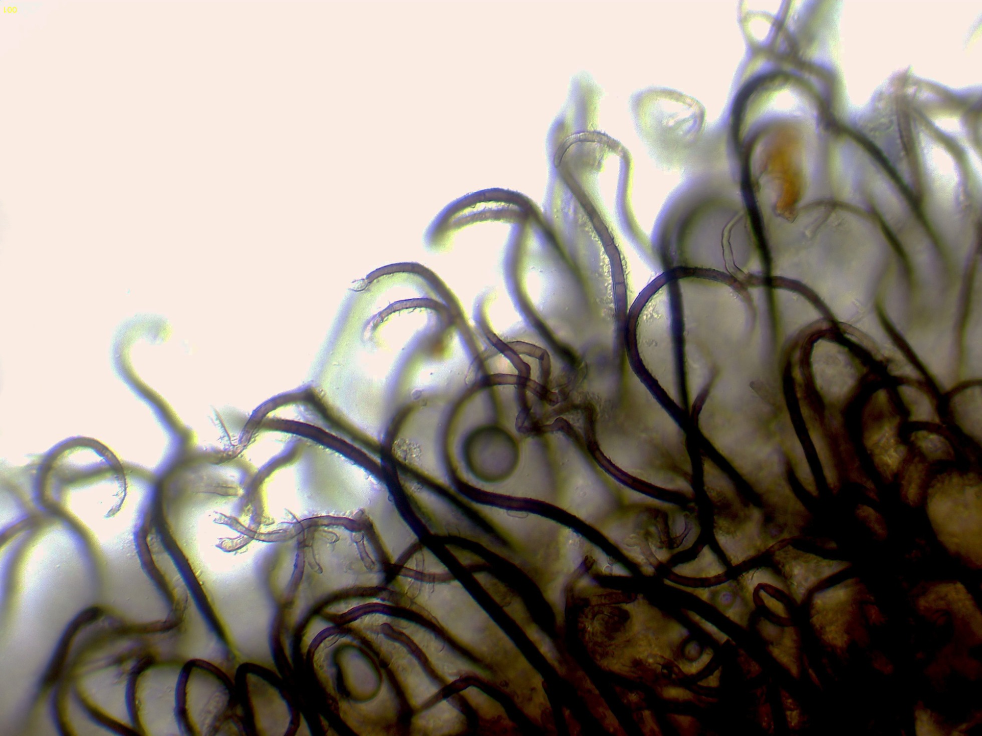 Ápice de los pelos en agua a 1000 aumentos: