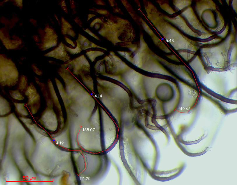 Los pelos en agua a 400 aumentos: