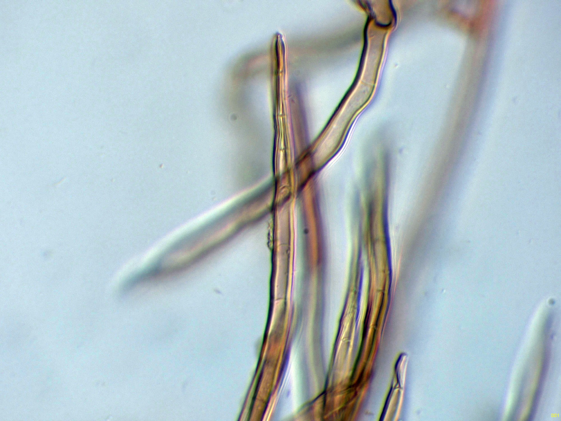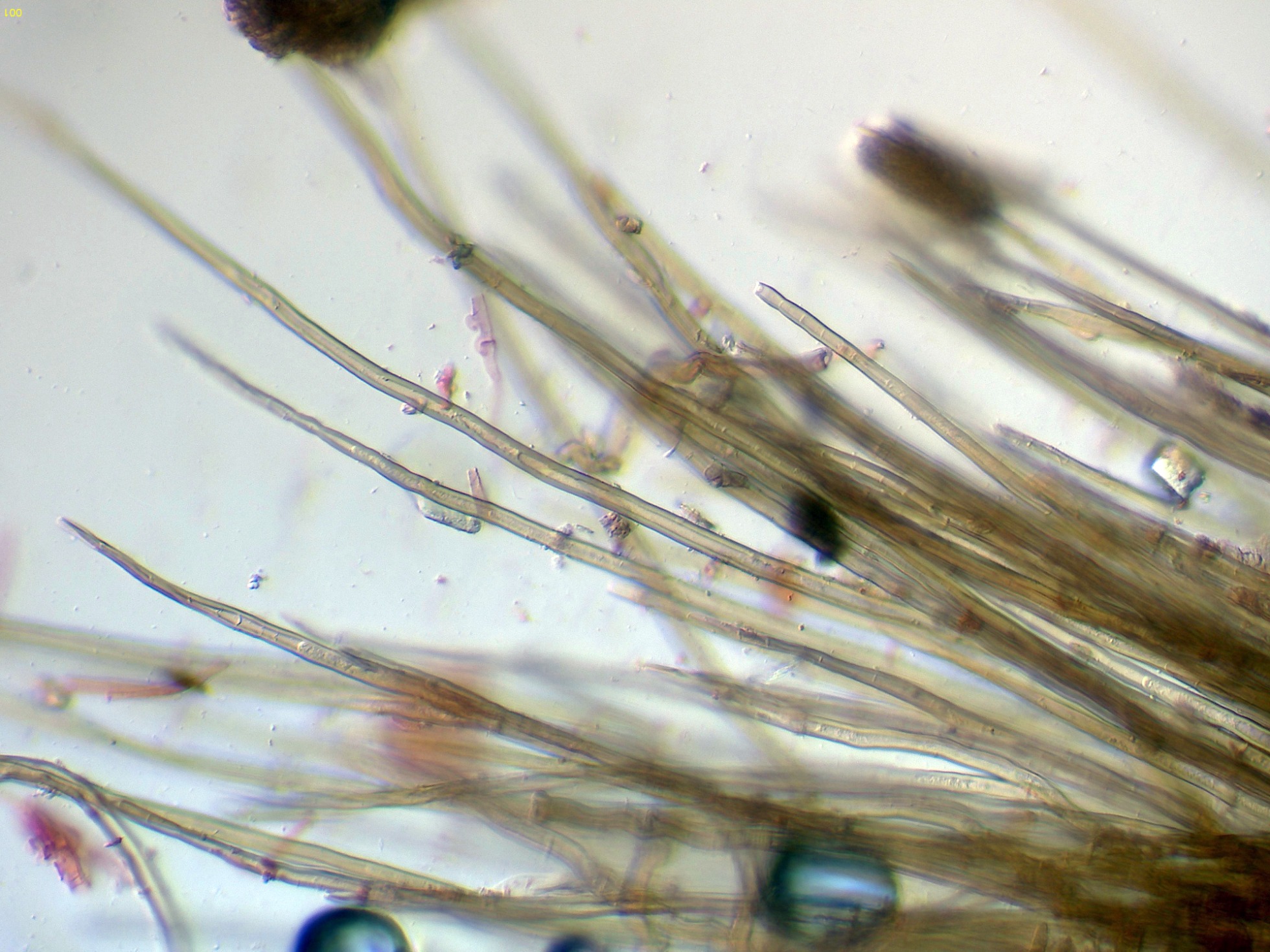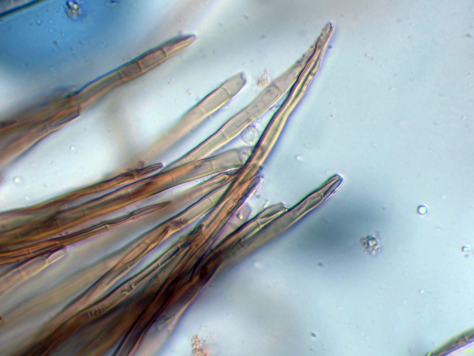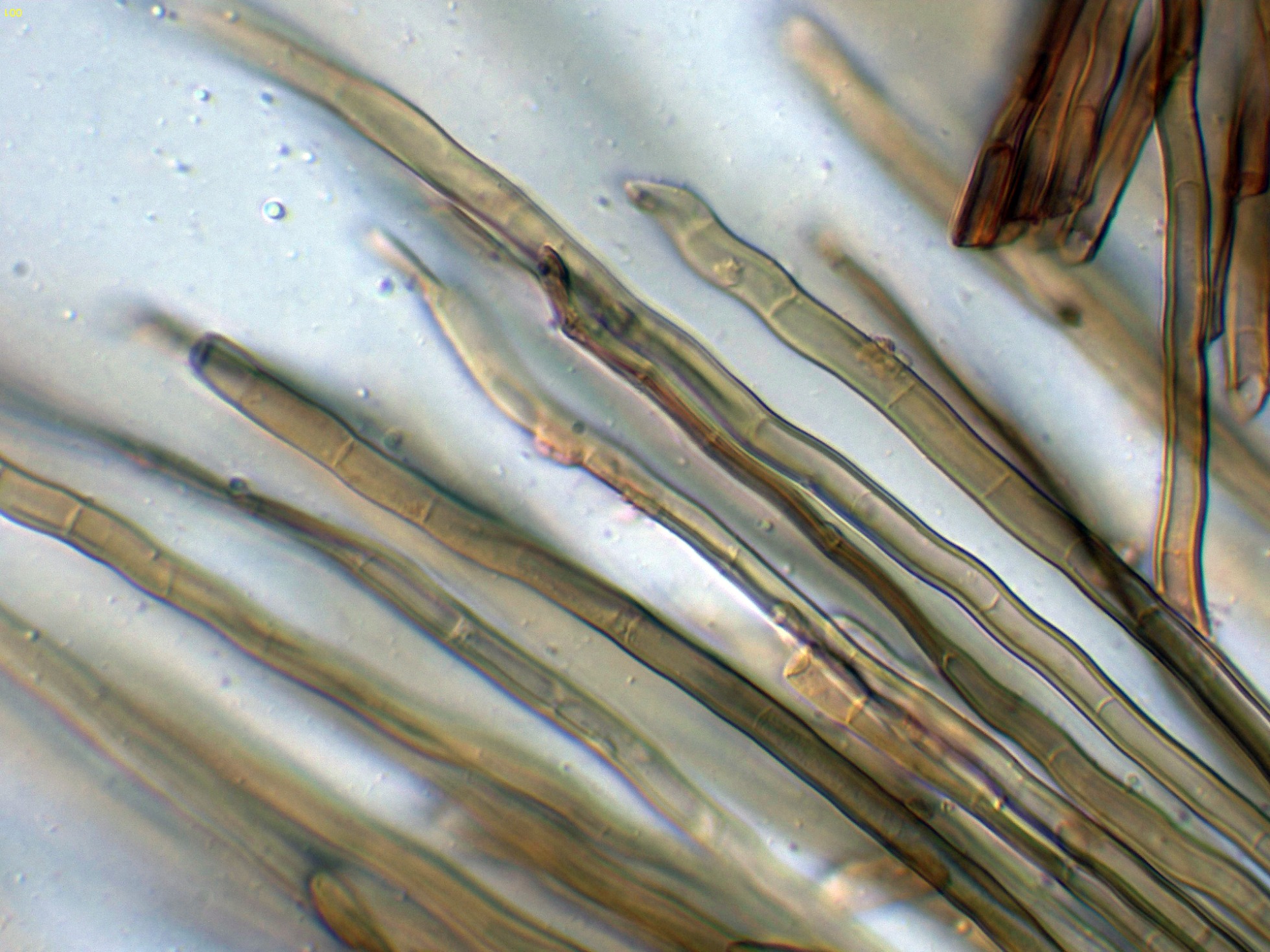 Elementos setiformes del píleo en Reactivo de Melzer: