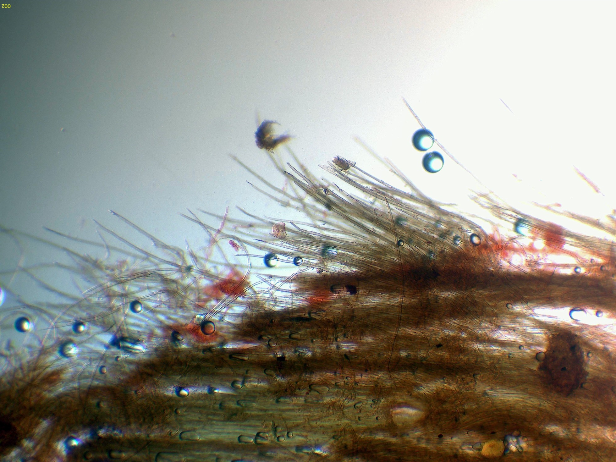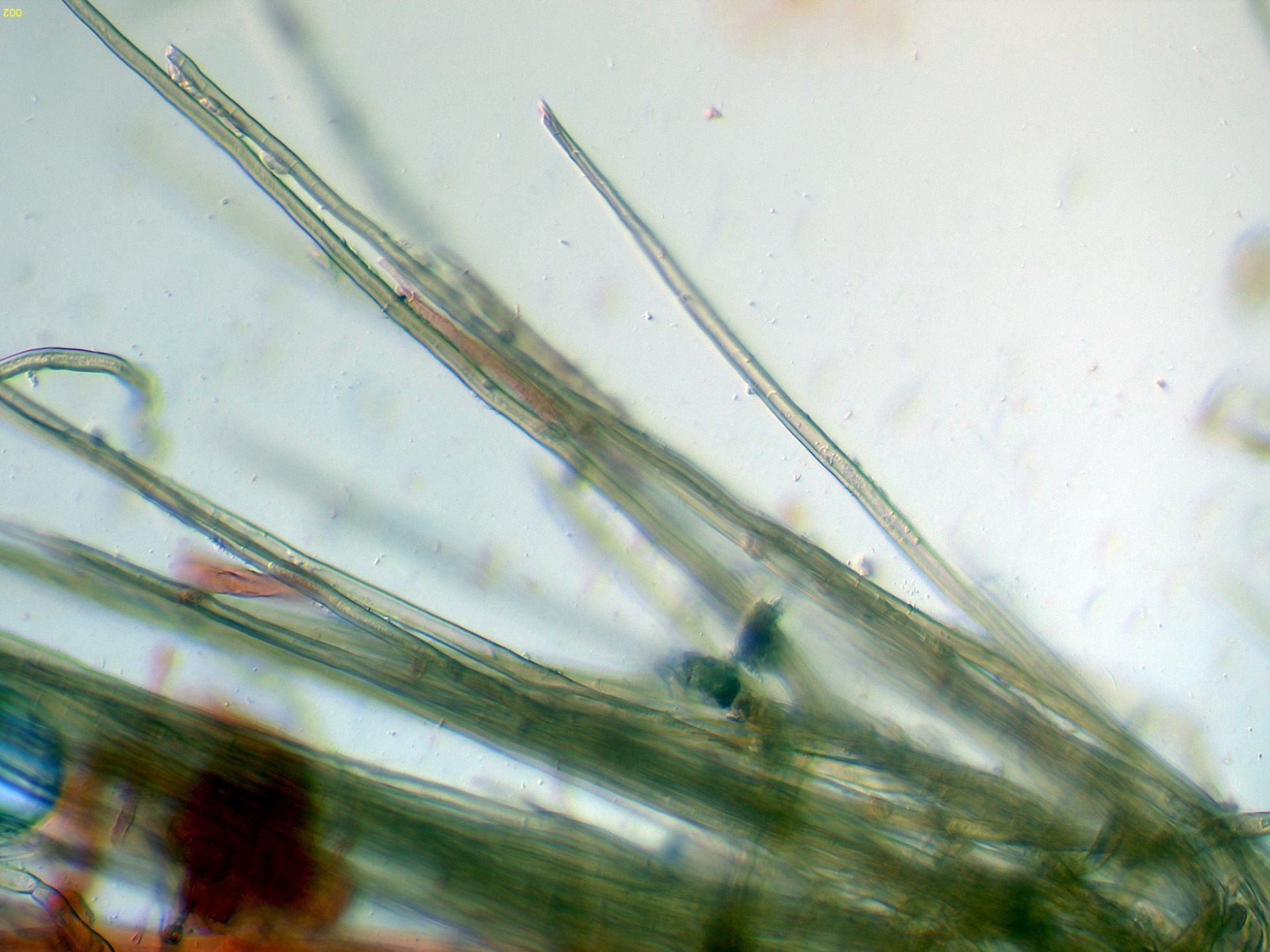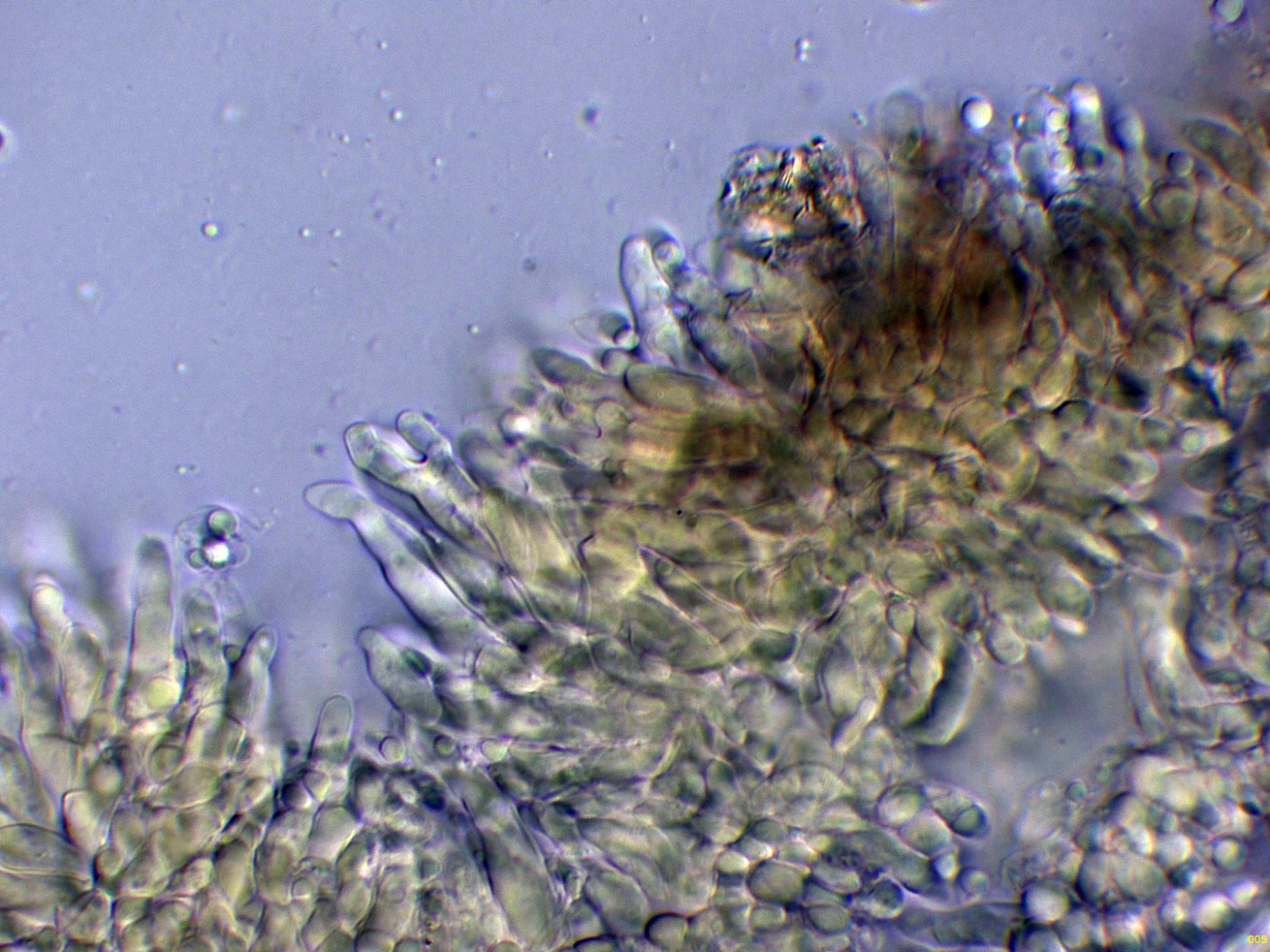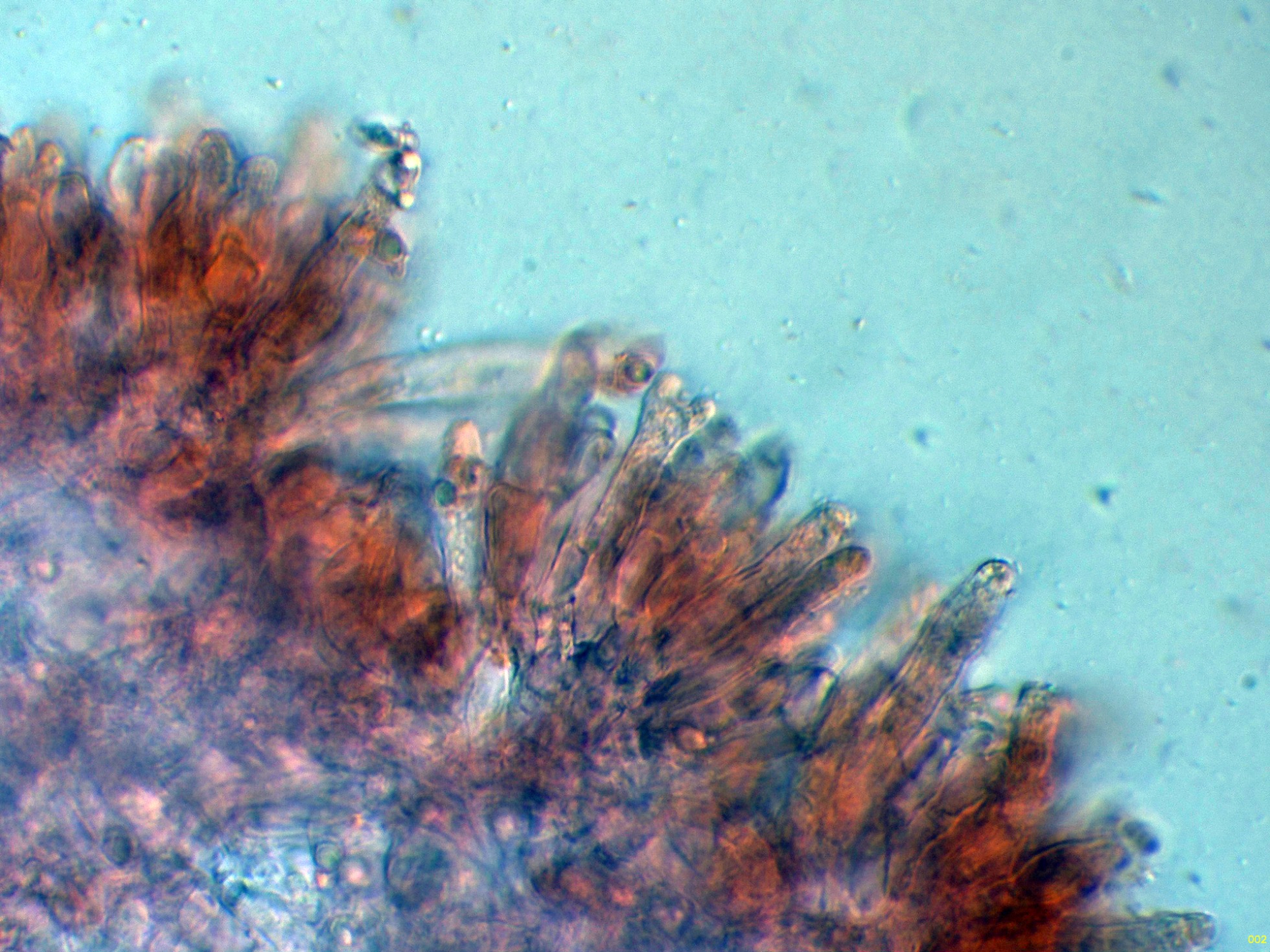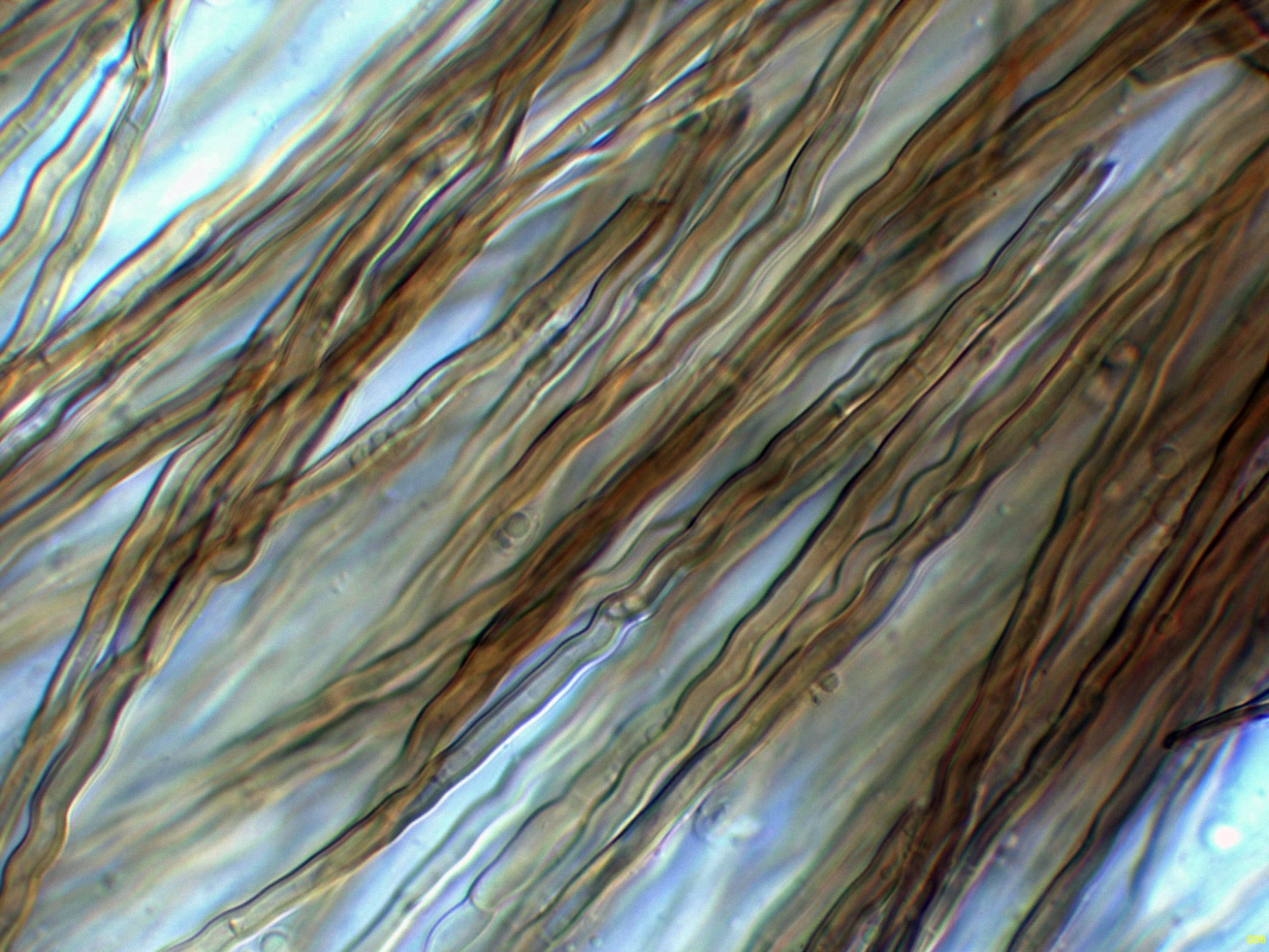 Elementos setiformes del píleo en Reactivo de Melzer: