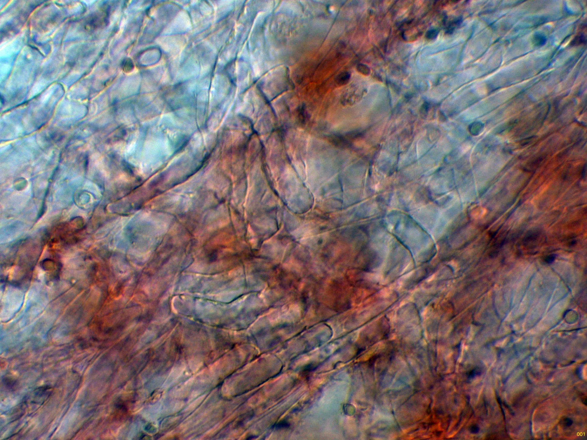 Las hifas de la trama laminar en solución de Rojo Congo: