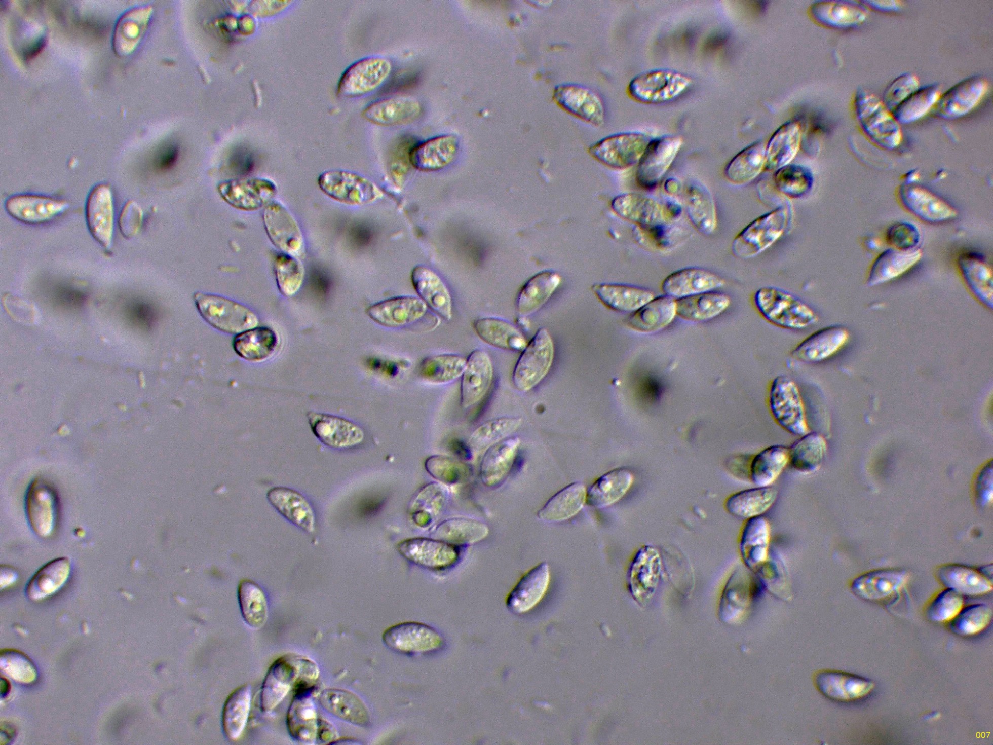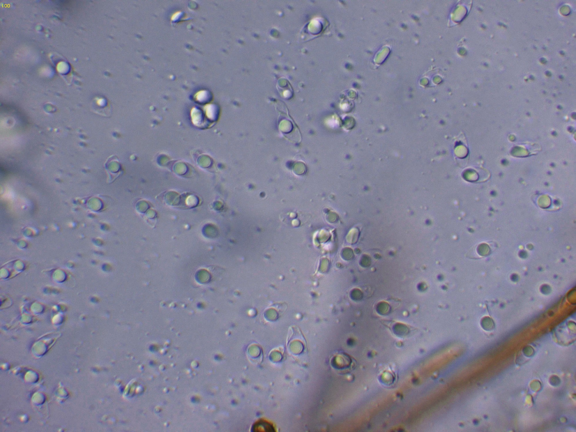 Y por último un par de imágenes de las esporas en agua: