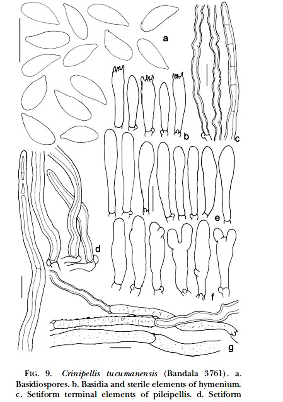 Añado una imágen con el dibujo de la microscopía de la Crinipellis tucumanenis extraída del mismo documento: