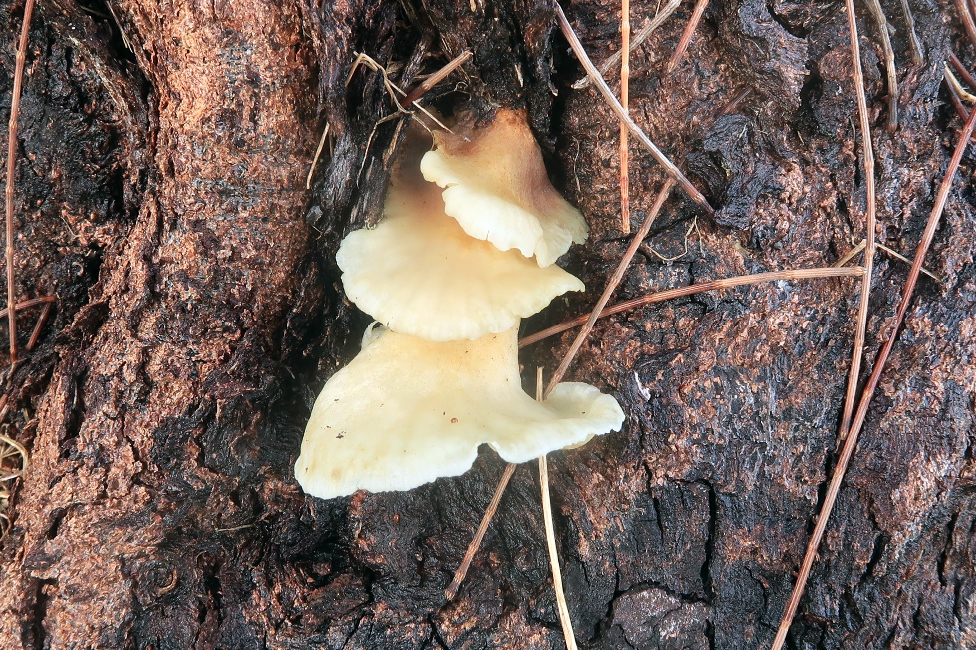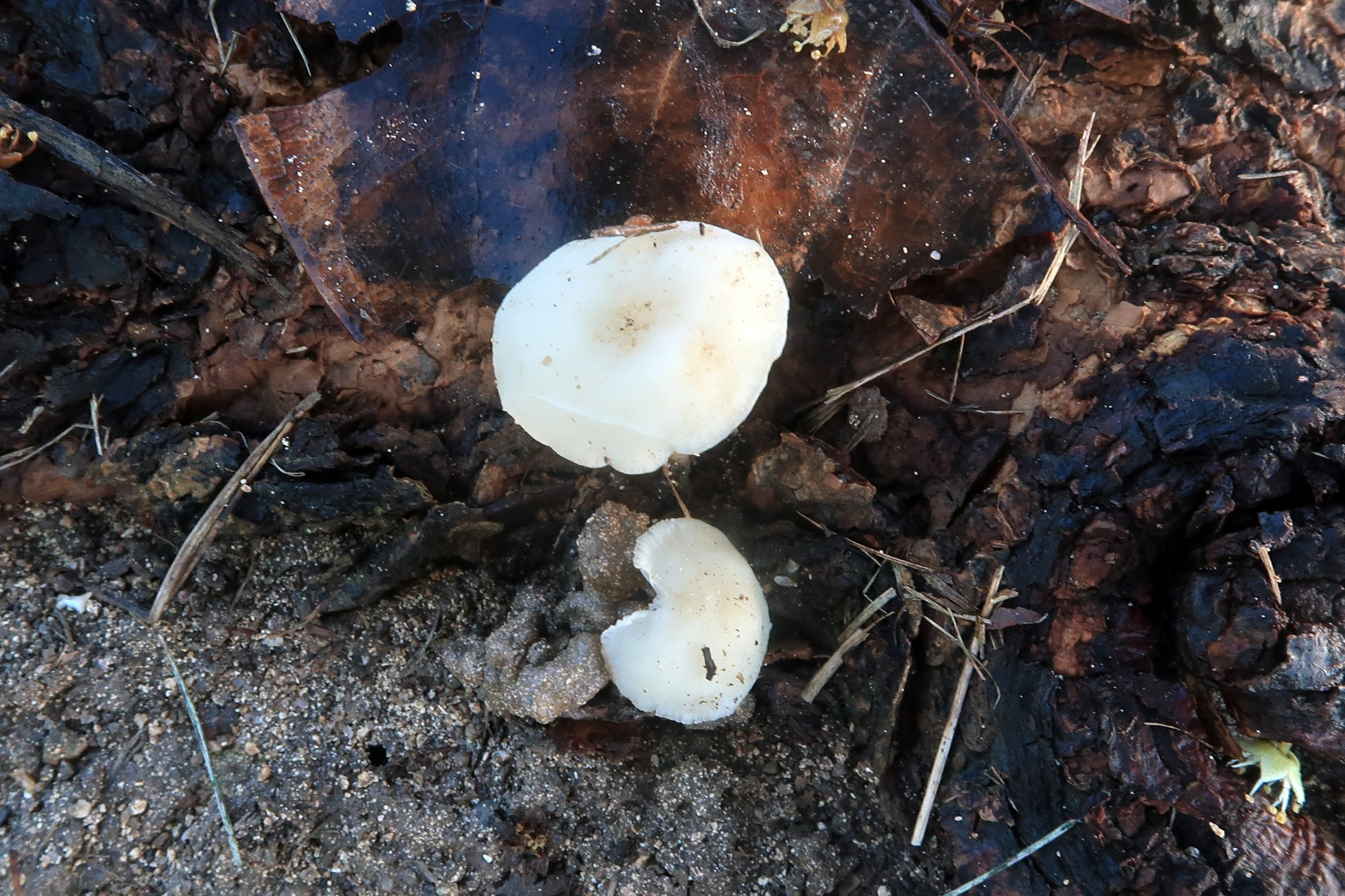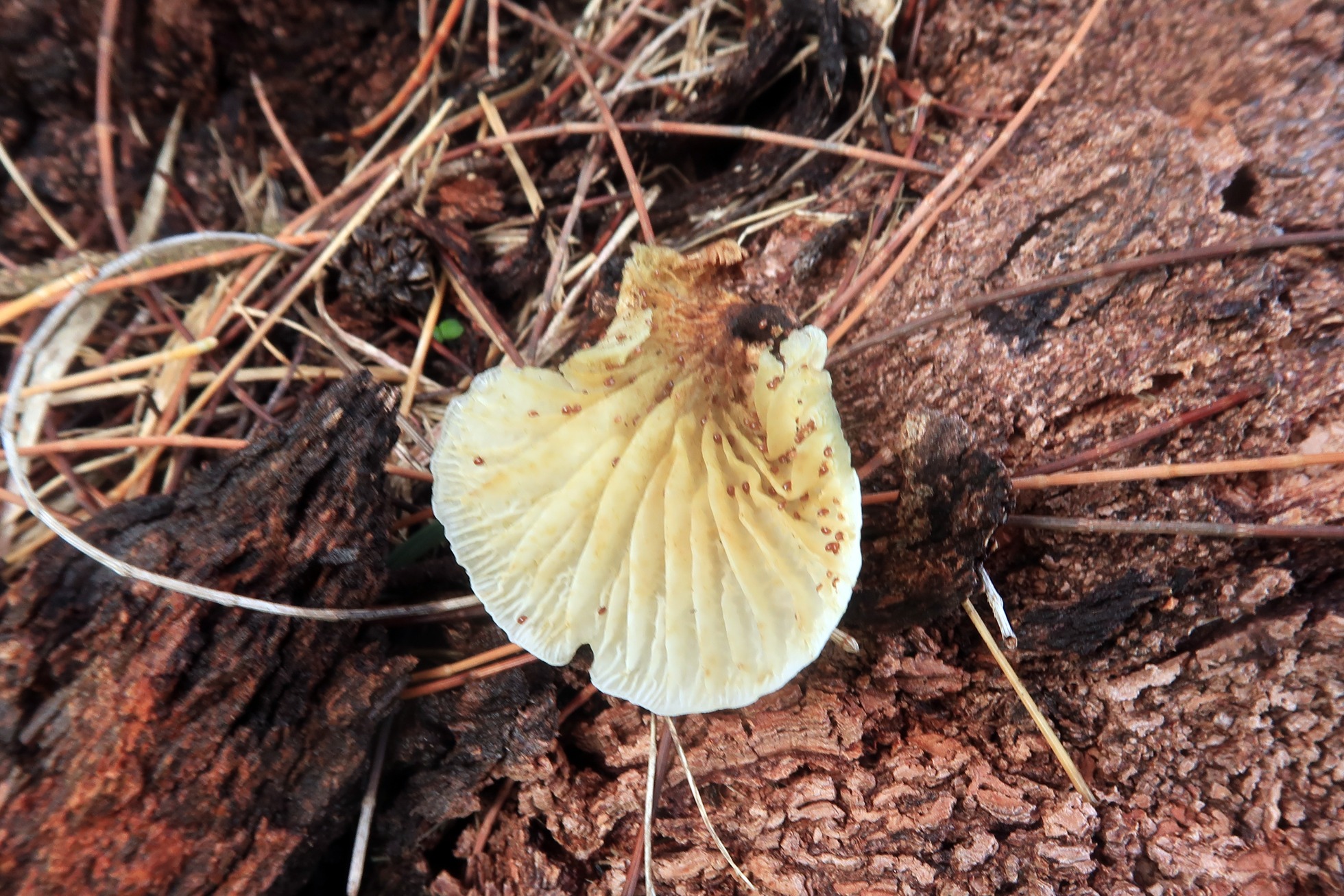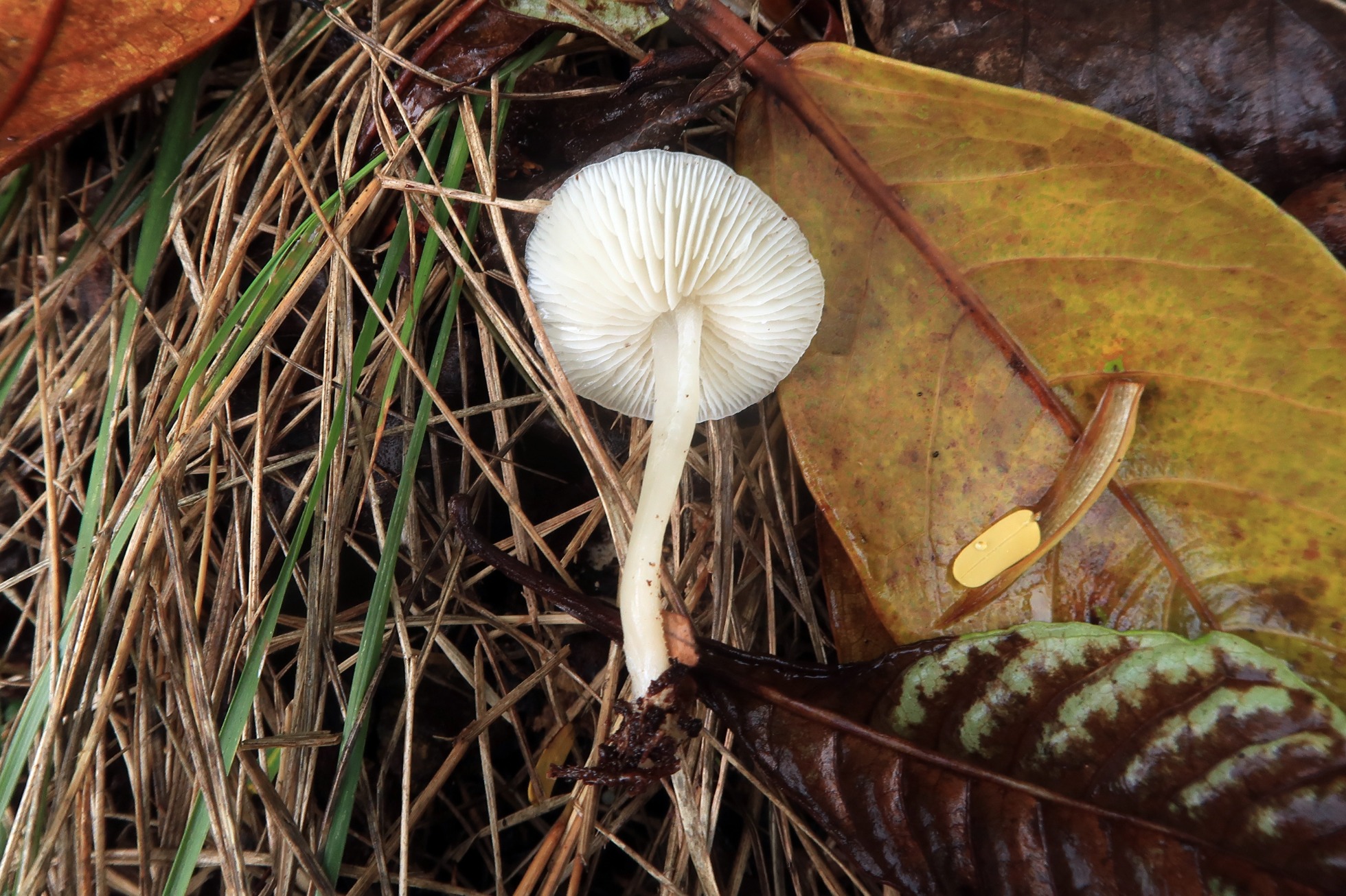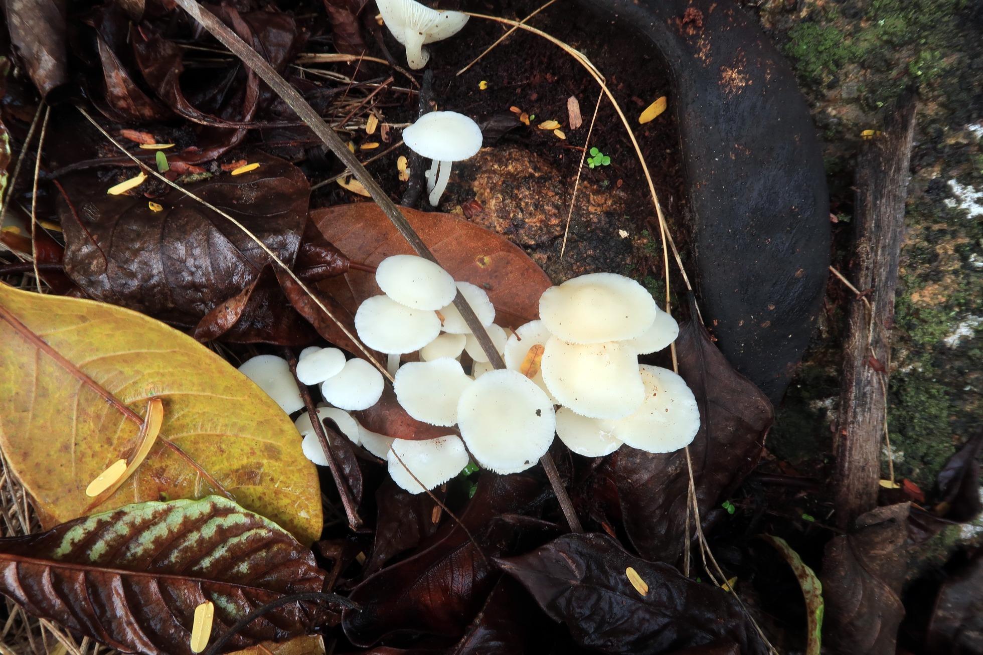 Otro hongo bastante habitual por la zona, aunque no pude obtener esporas, todos los parámetros microscópicos apuntan a la tropical Lactocollybia angiospermarum, actualmente sinonimizada con la Lactocollybia epia Europea.