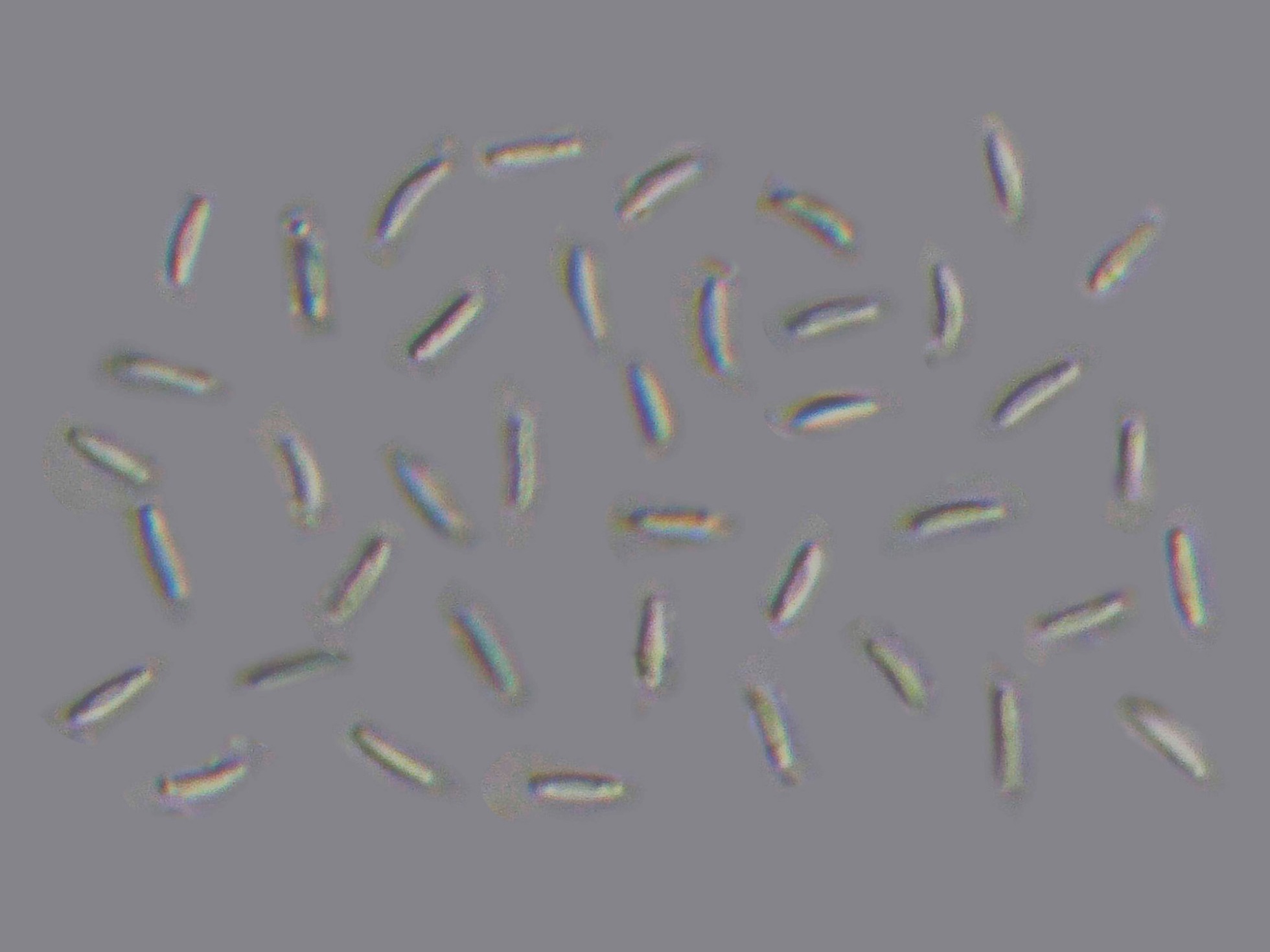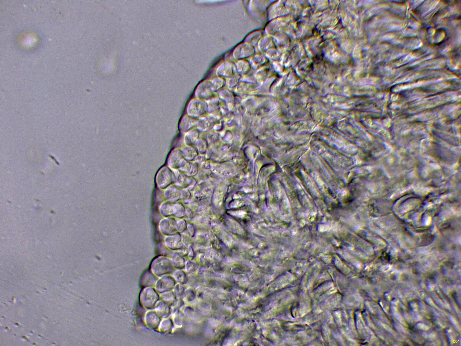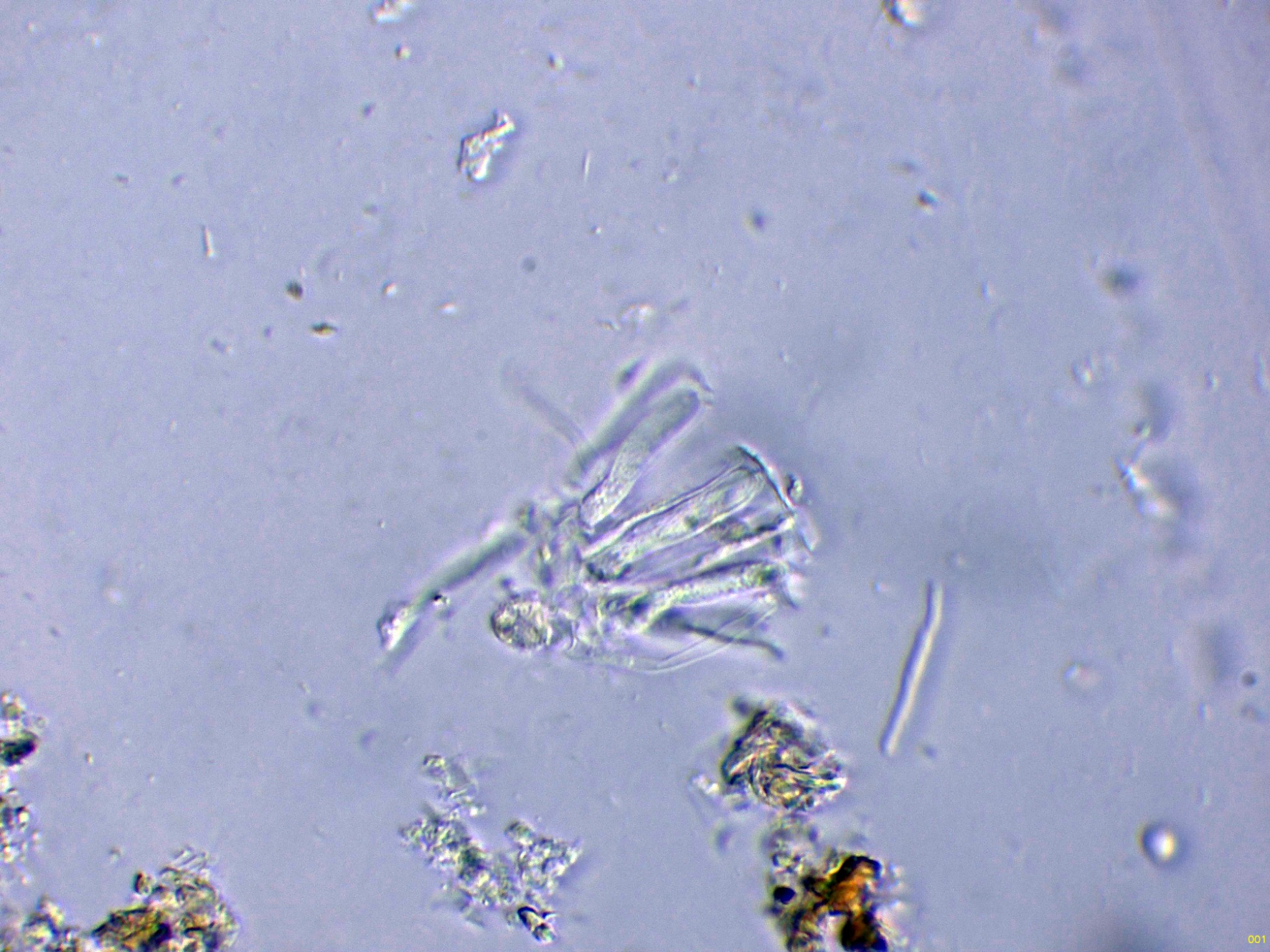 La base de los ascos en agua, como todas las Hyalorbilias, con uncínulos, este detalle las separa de las Orbilias, con base de los ascos simple: