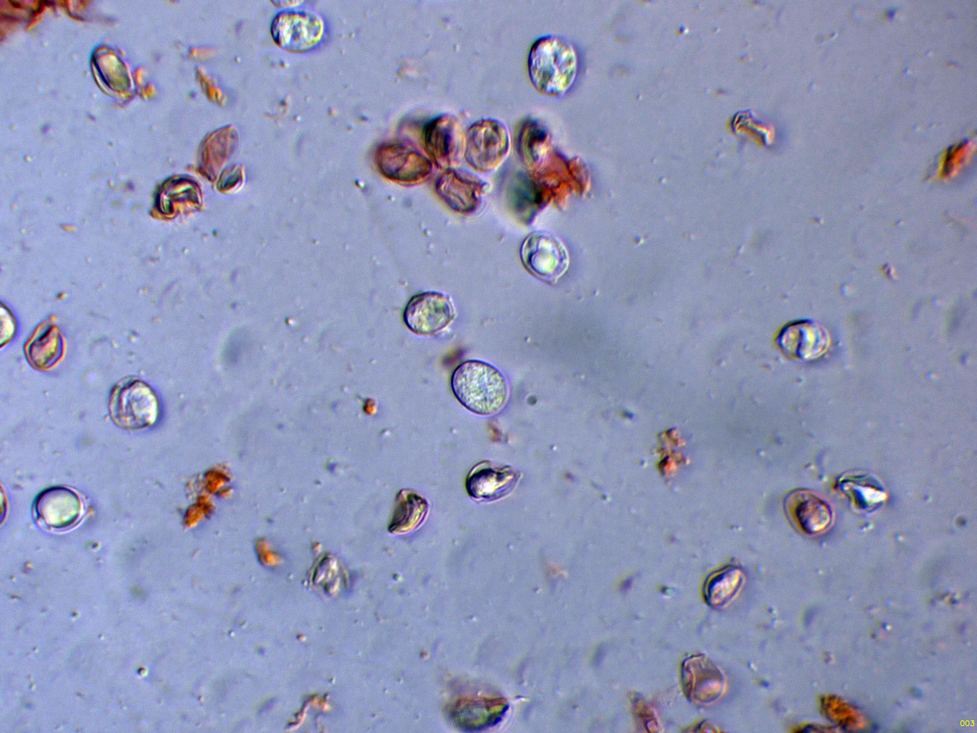 Añado como curiosidad unas esferas observadas en las muestras preparadas que presumiblemente contienen una buena cantidad de lo que parecen ser bacterias: