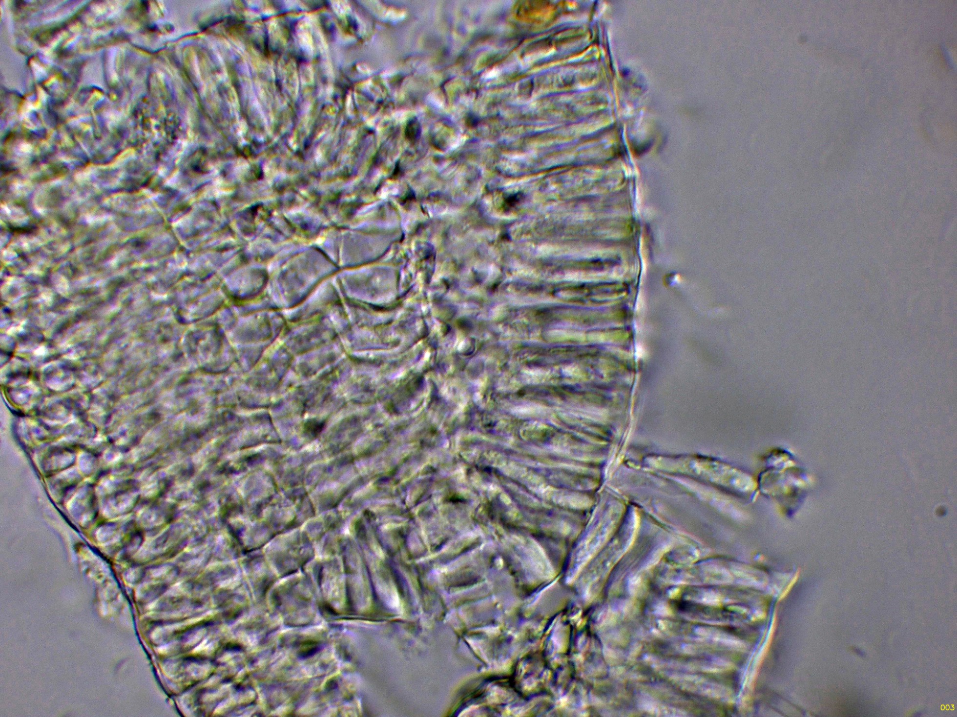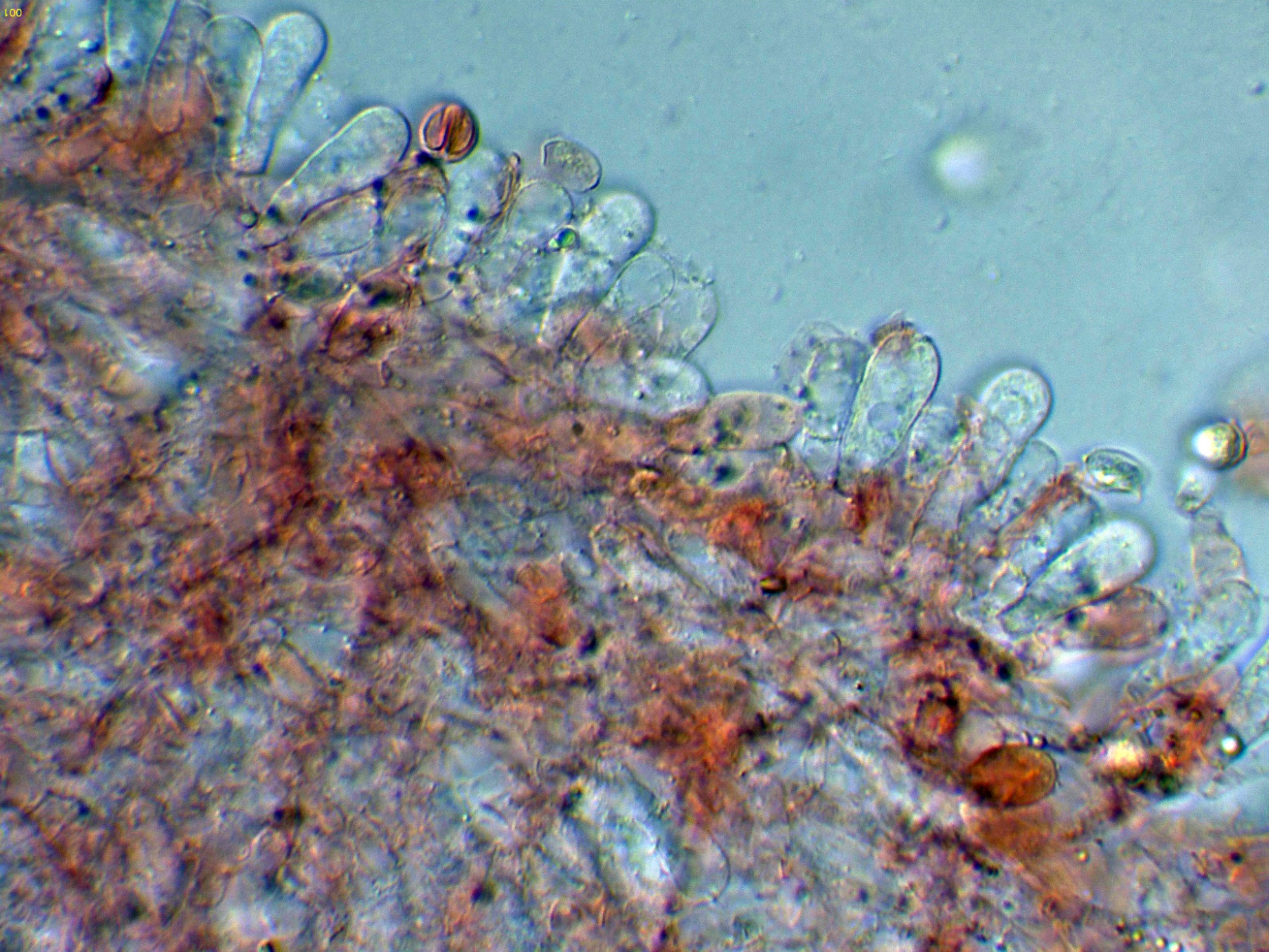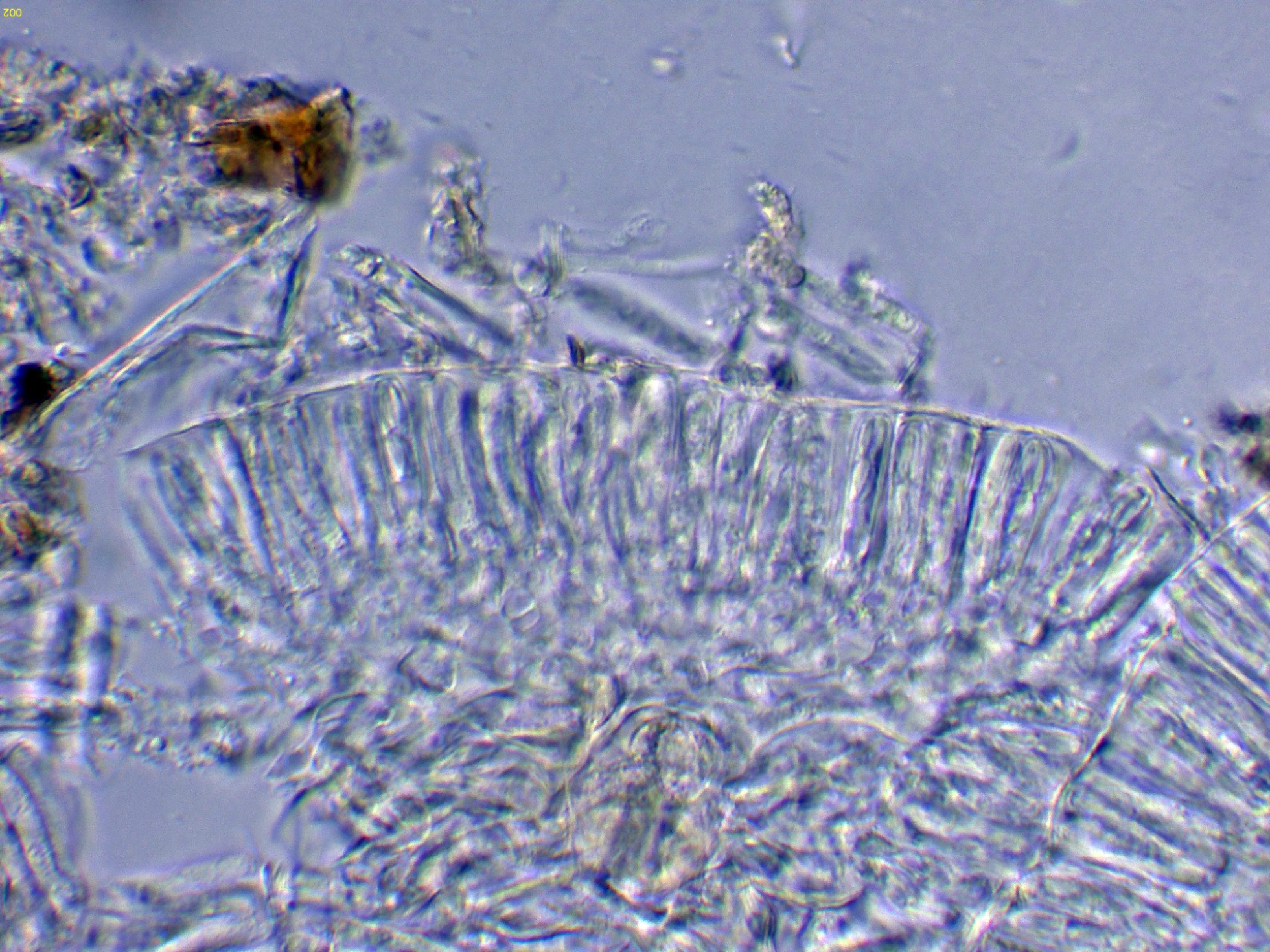 La arista laminar en solución de Rojo Congo, sin elementos diferenciados de los basidios o basidiolos: