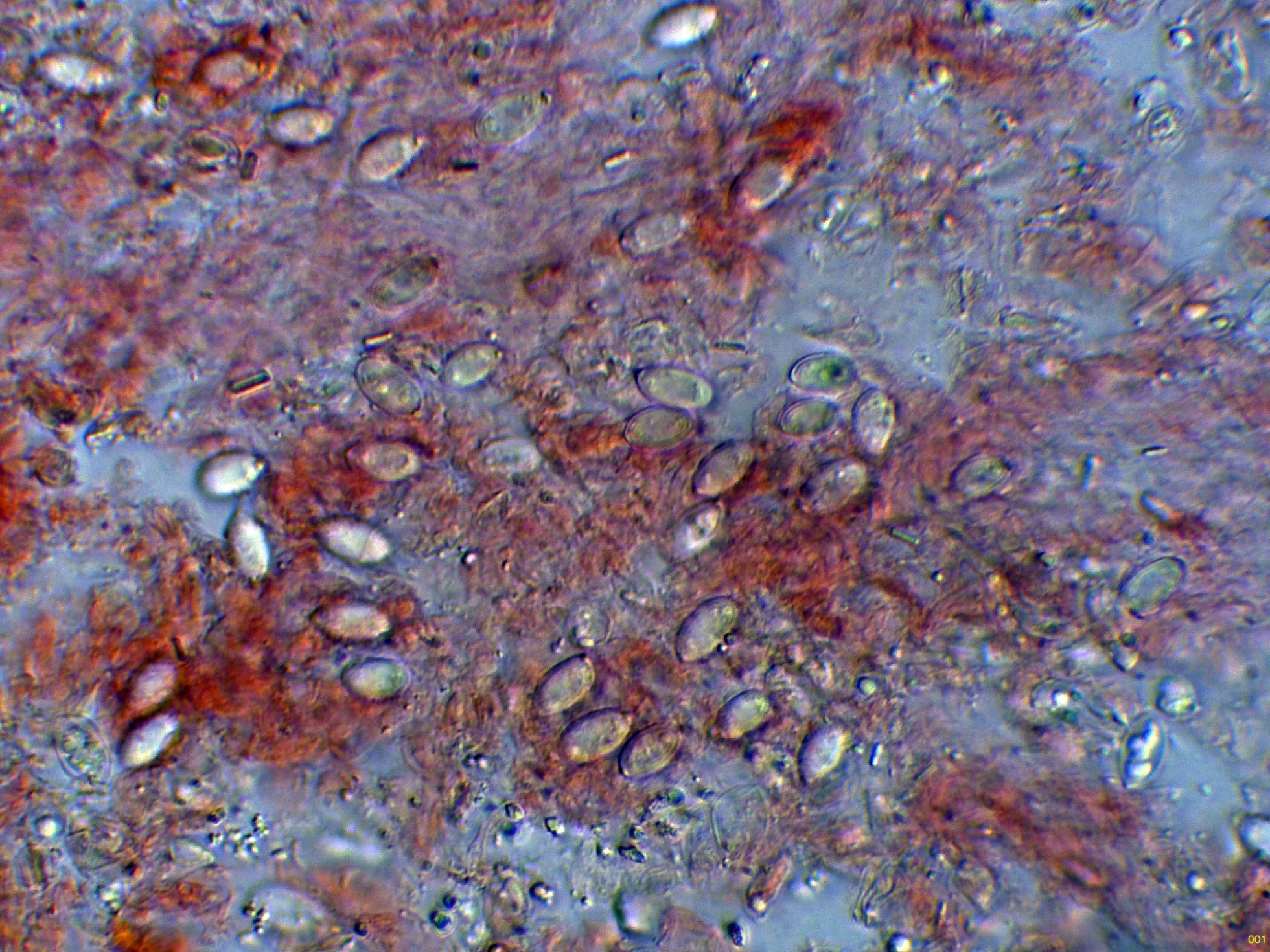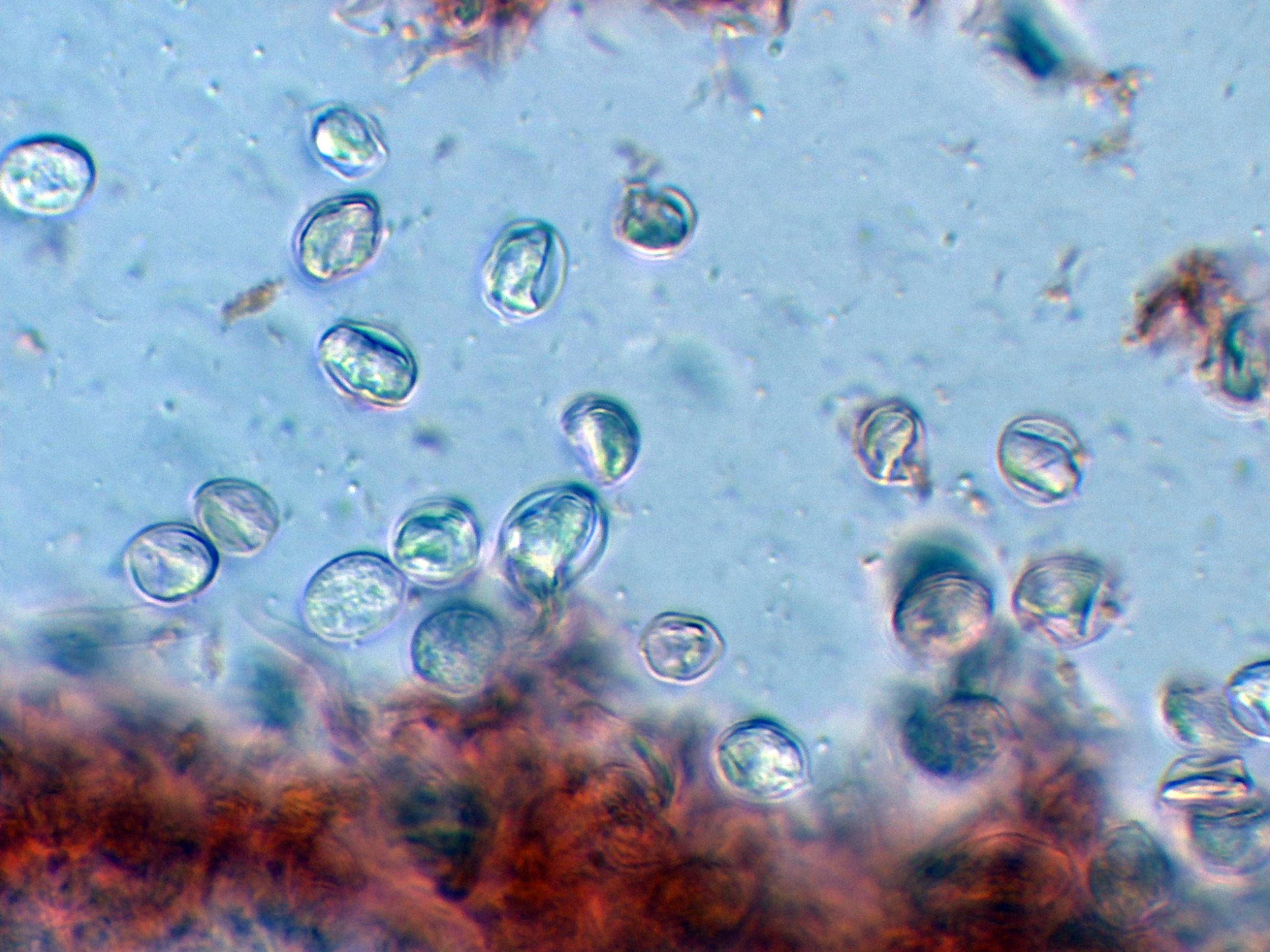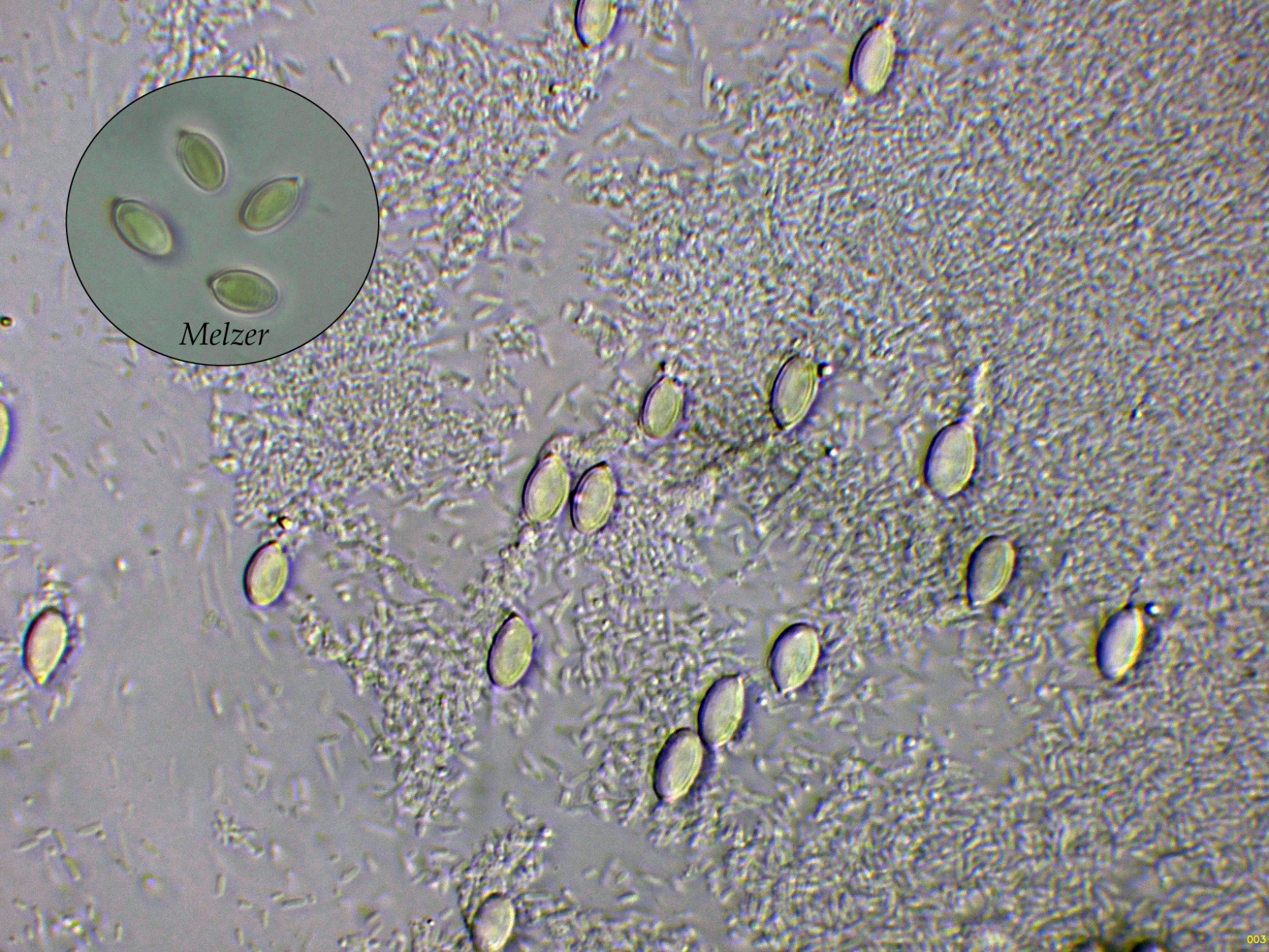 En la miniatura superior izquierda, las esporas en Reactivo de Melzer, inamiloides: