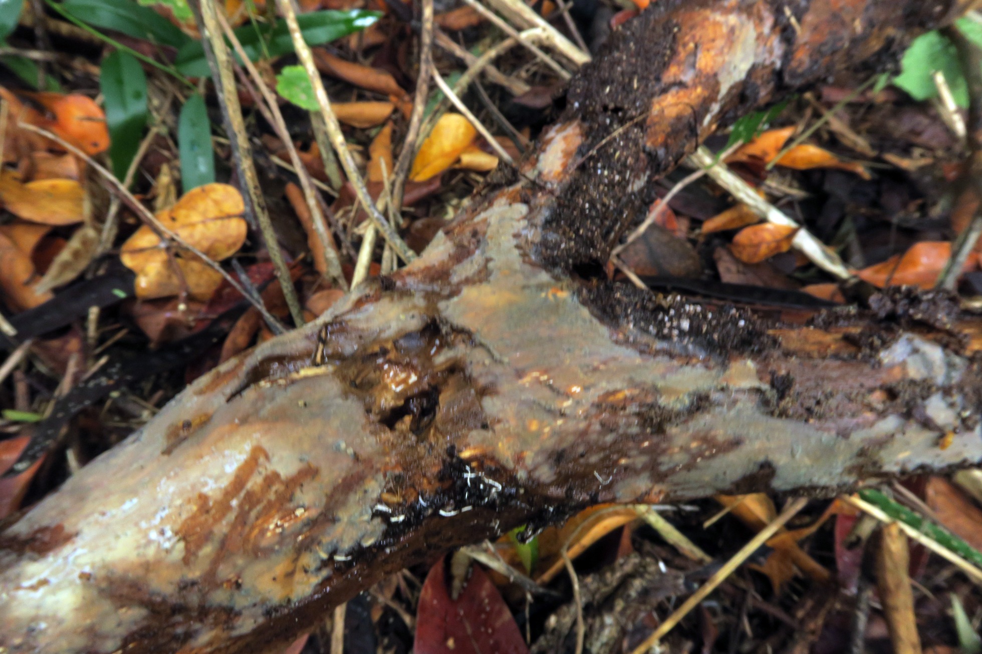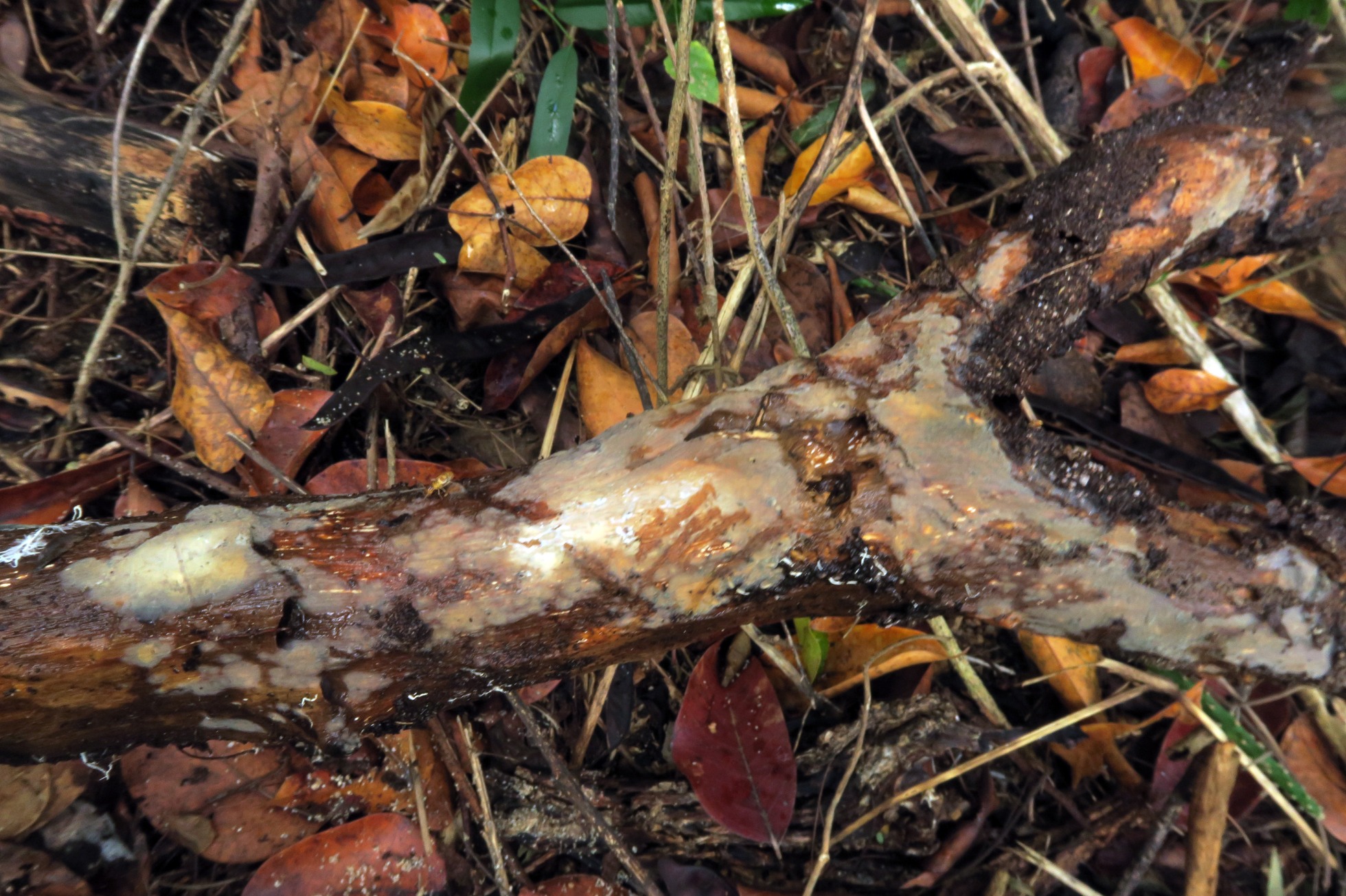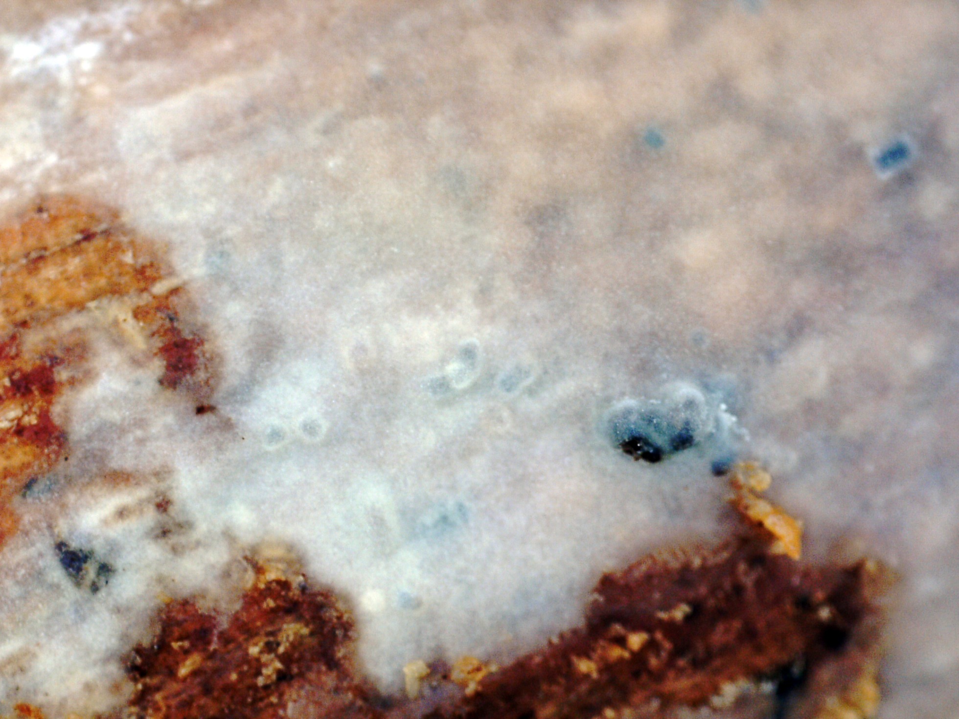 Un Corticial céreo fotografiado el 8 de febrero en la pequeña Isla de Virgin Gorda (Mar Caribe), al parecer presente en todos los Continentes, aunque es la primera vez que me lo encuentro en el Continente Americano, la Radulomyces confluens: