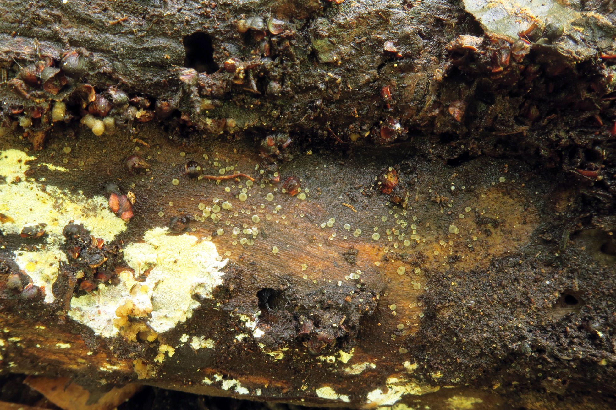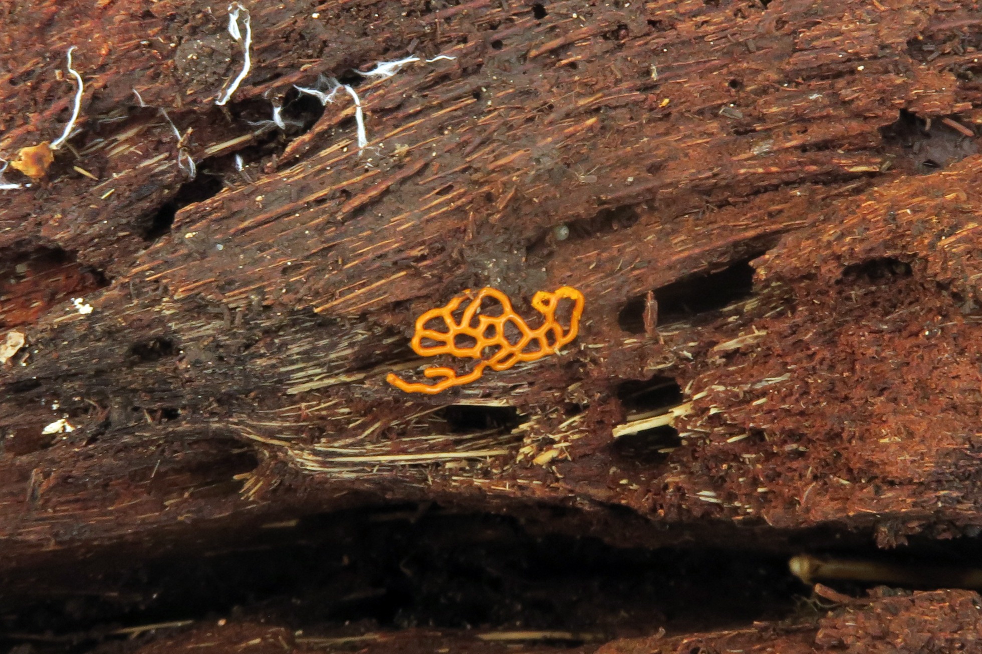 Ya para cerrar el tema un Mixomiceto, la tercera vez que me lo encuentro, y las tres veces que lo he visto ha sido en el Continente Americano, la Hemitrichia serpula:
