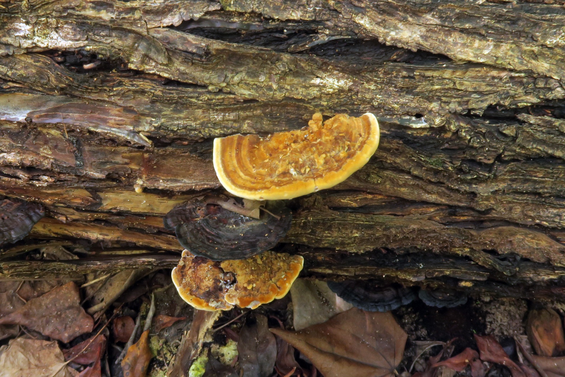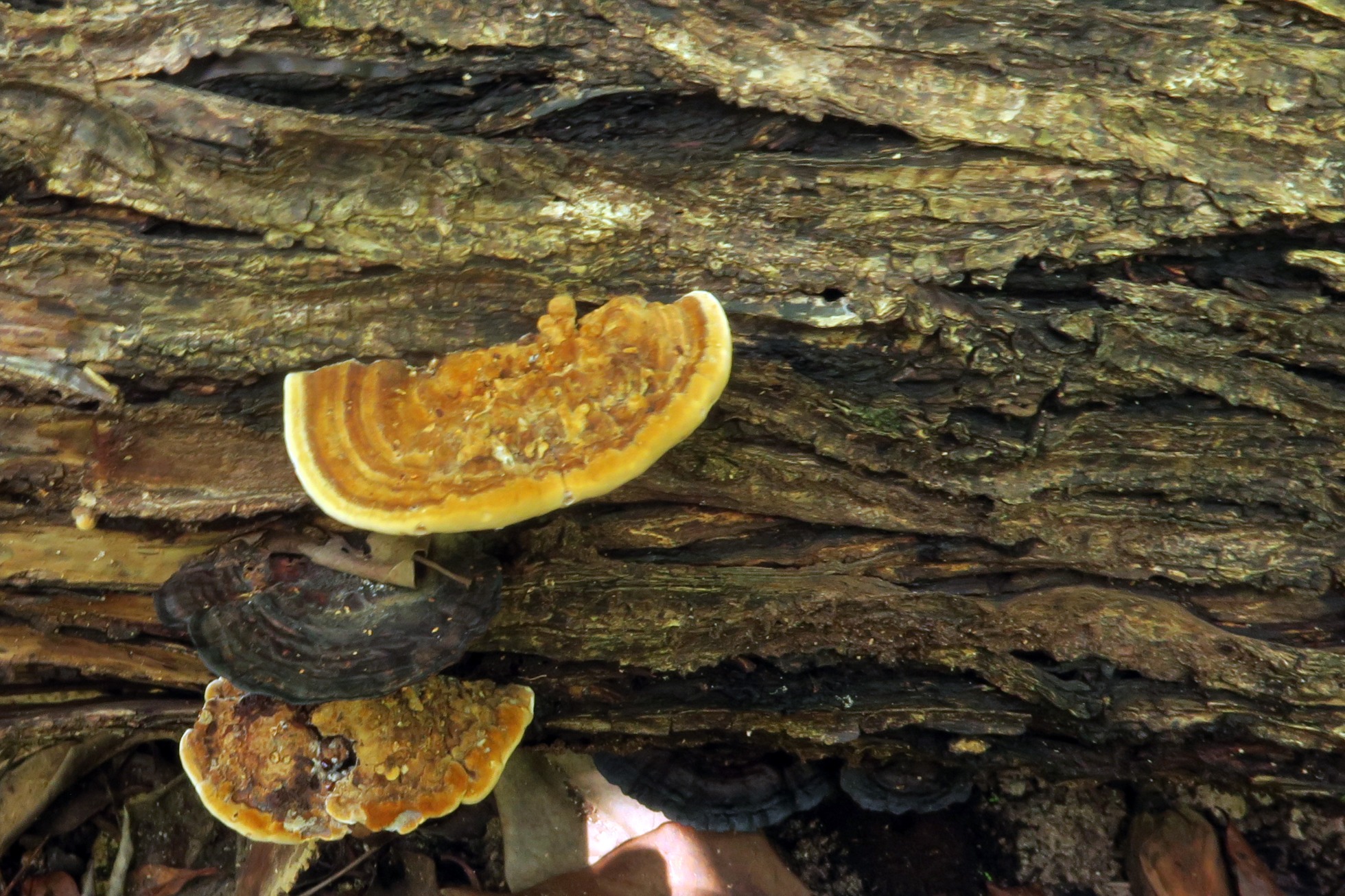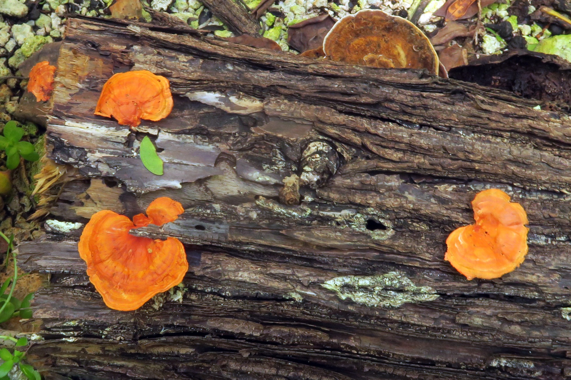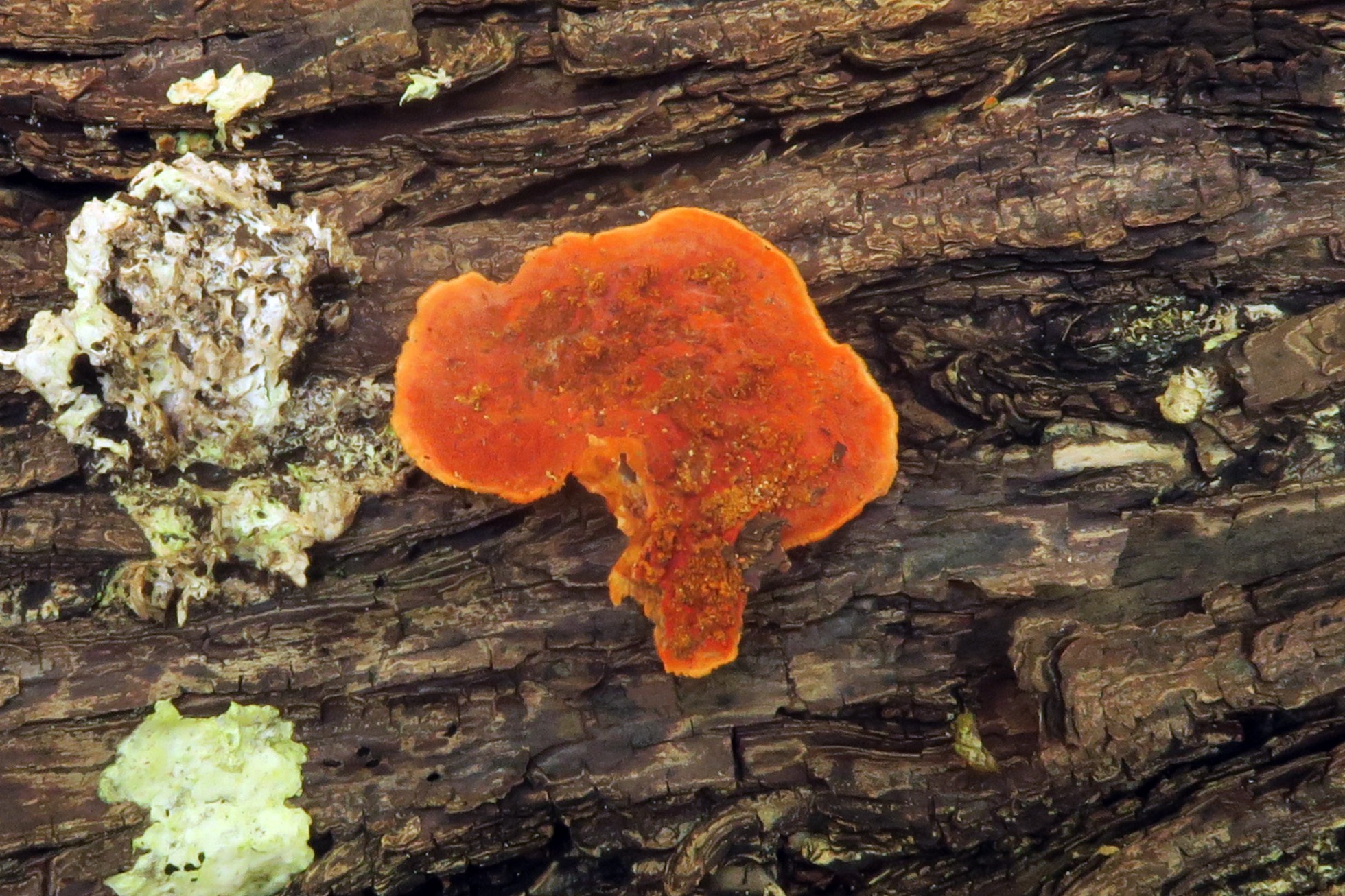 Un Polyporal típico de la zona que nunca me resisto a fotografiar, ya tan solo por ser tan fotogénico, el Pycnoporus sanguineus.