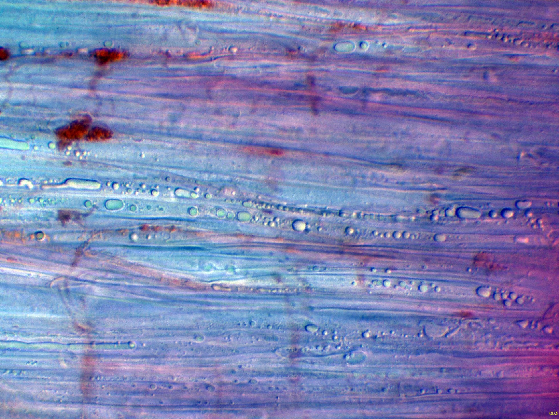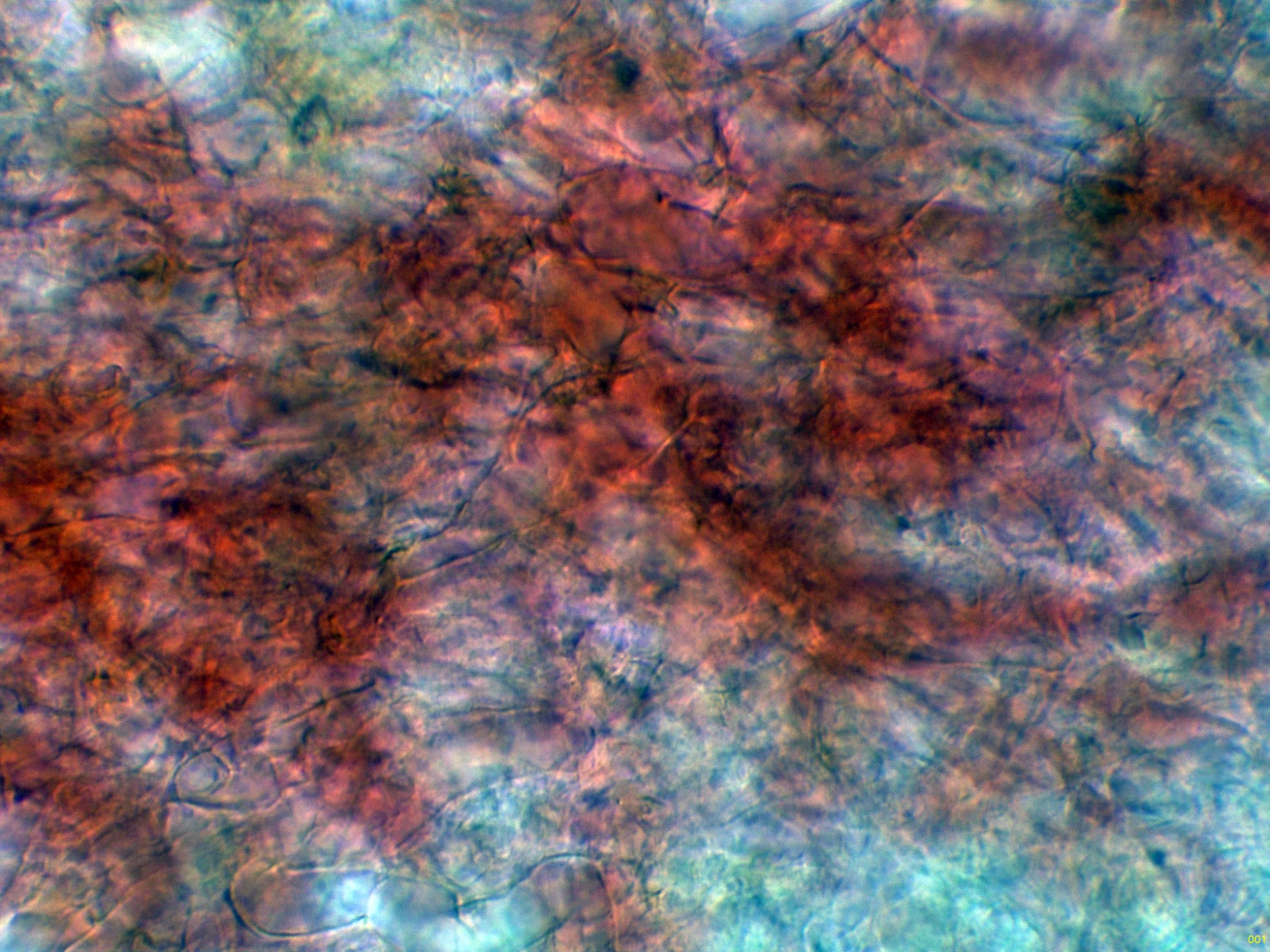 Hifas de la estipitipellis en solución de Rojo Congo: