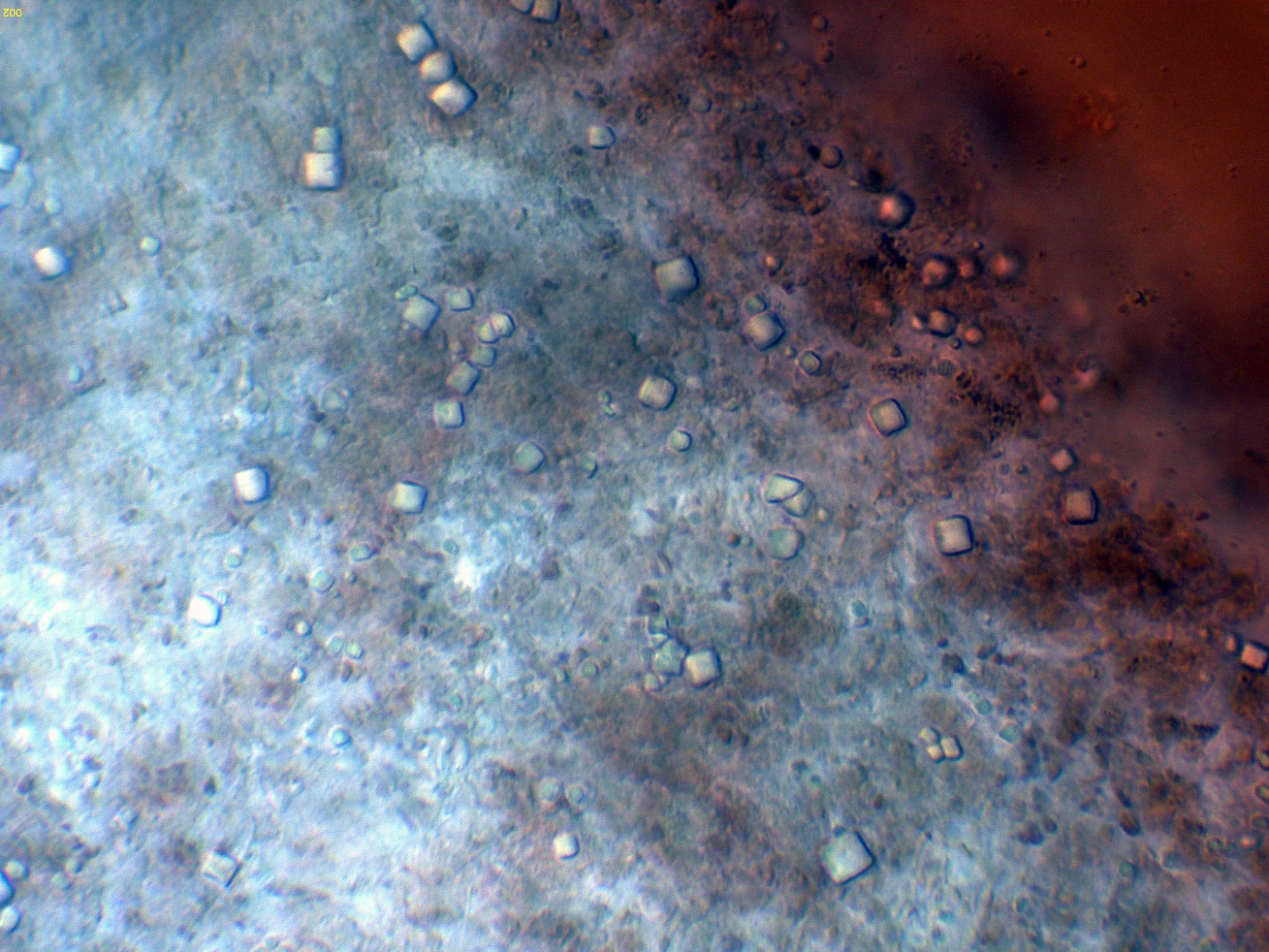 Abundantes cristales presentes en el himenio: