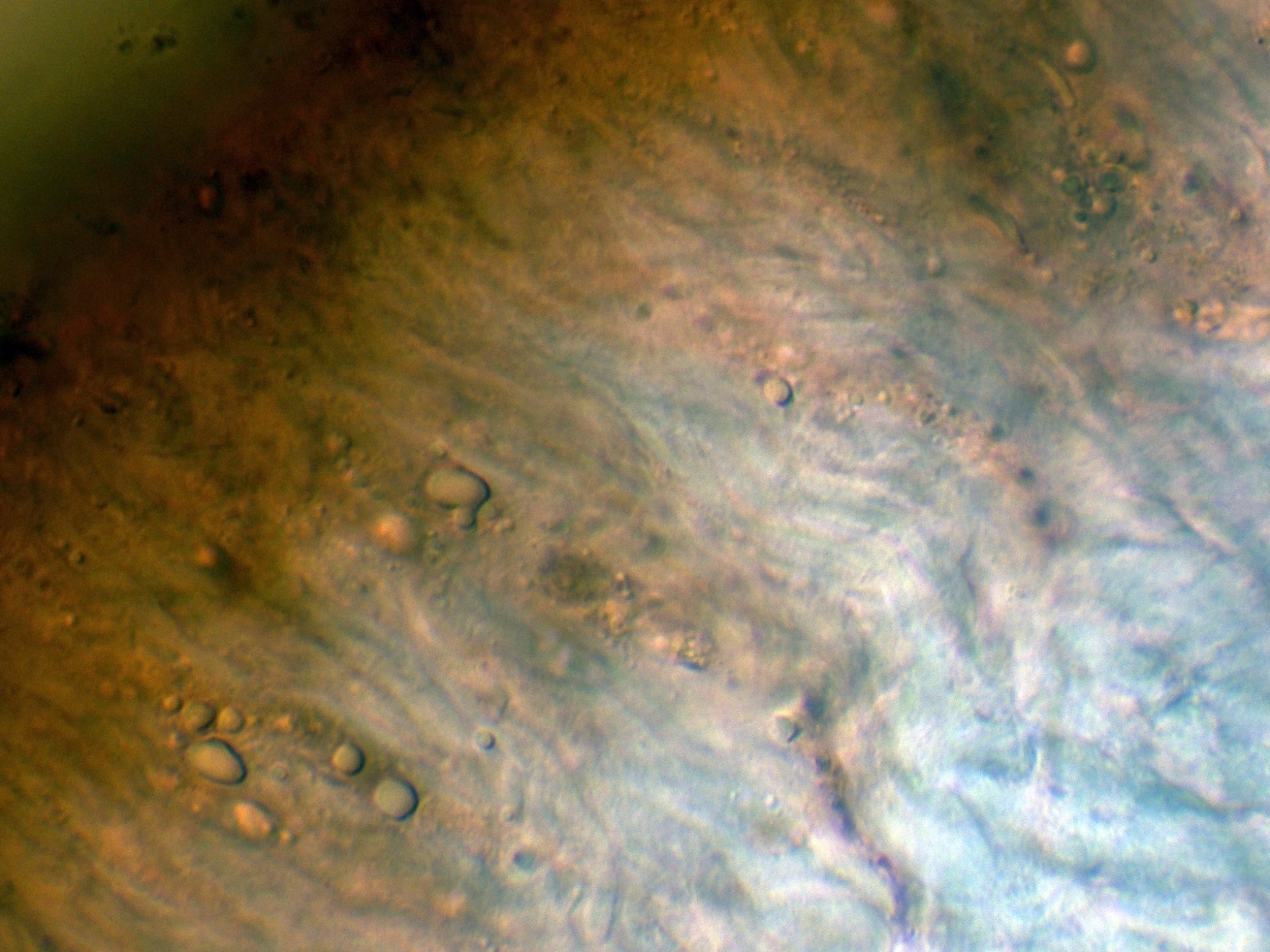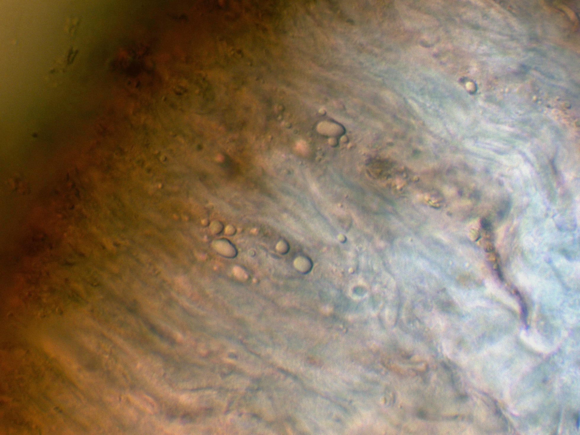 Las hifas de la pileipellis por debajo de estos pelos en agua a 400 aumentos: