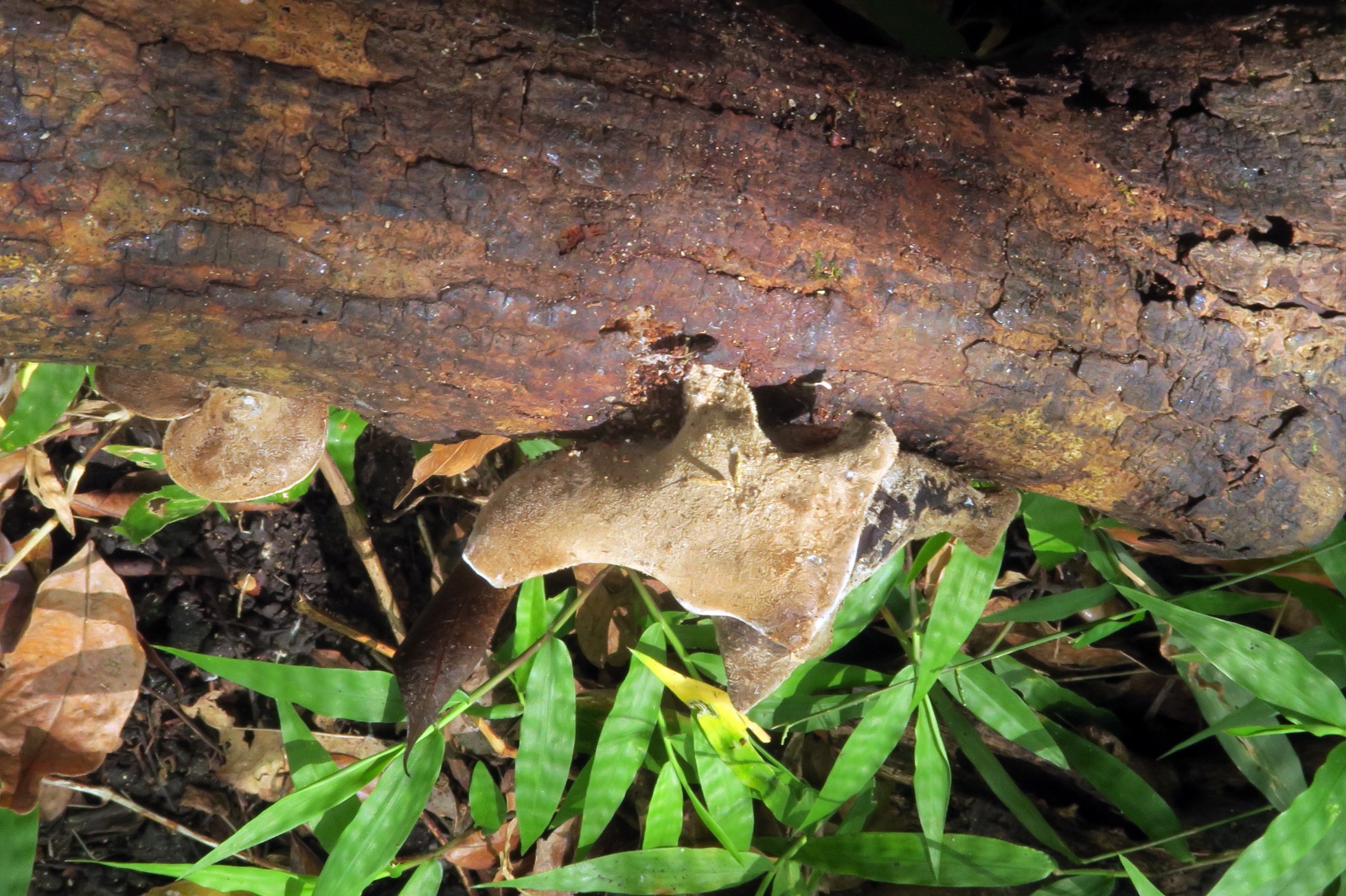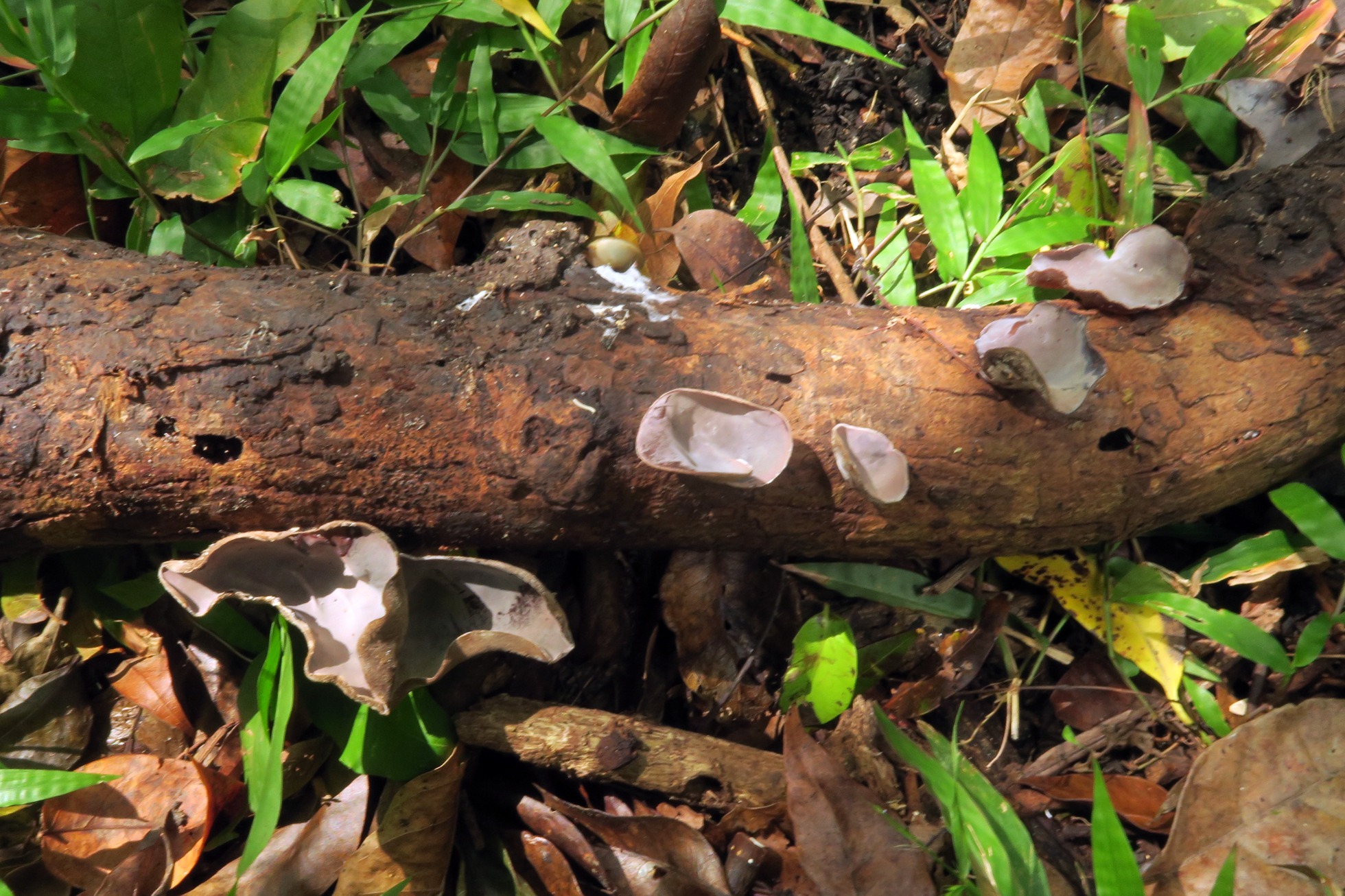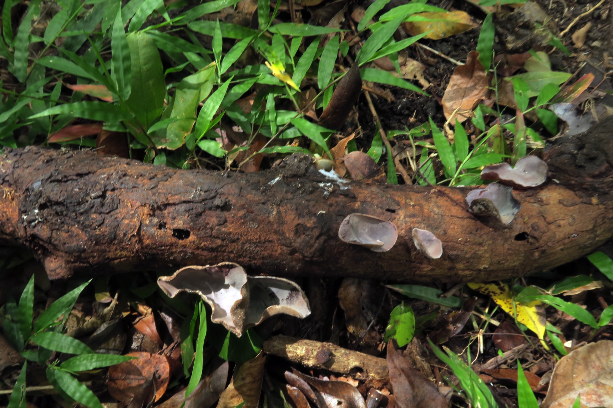 Especie muy parecida a la abundante Auricularia nigricans que he presentado recientemente, y que aparece sinonimizada con la Auricularia cornea en la lista de especies de la República Dominicana de Neotropicalfungi (no se de donde habrán sacado la información), dejo el enlace: