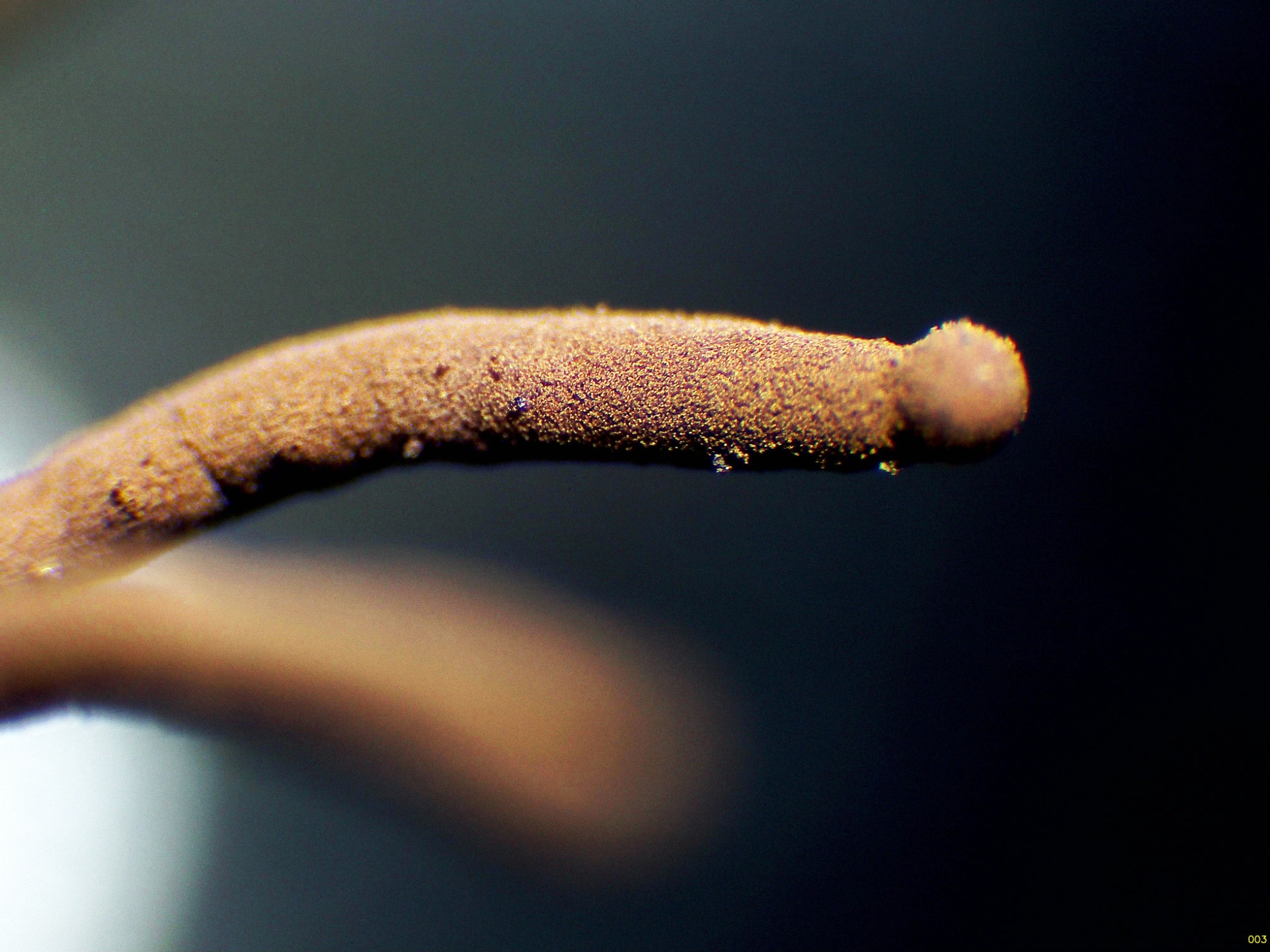 Esporocarpos con una altura total de entre 4,3 a 6 mm., con esporotecas con una longitud de entre 3,1 a 3,5 mm. y una anchura de entre 0,2 a 0,24 mm.