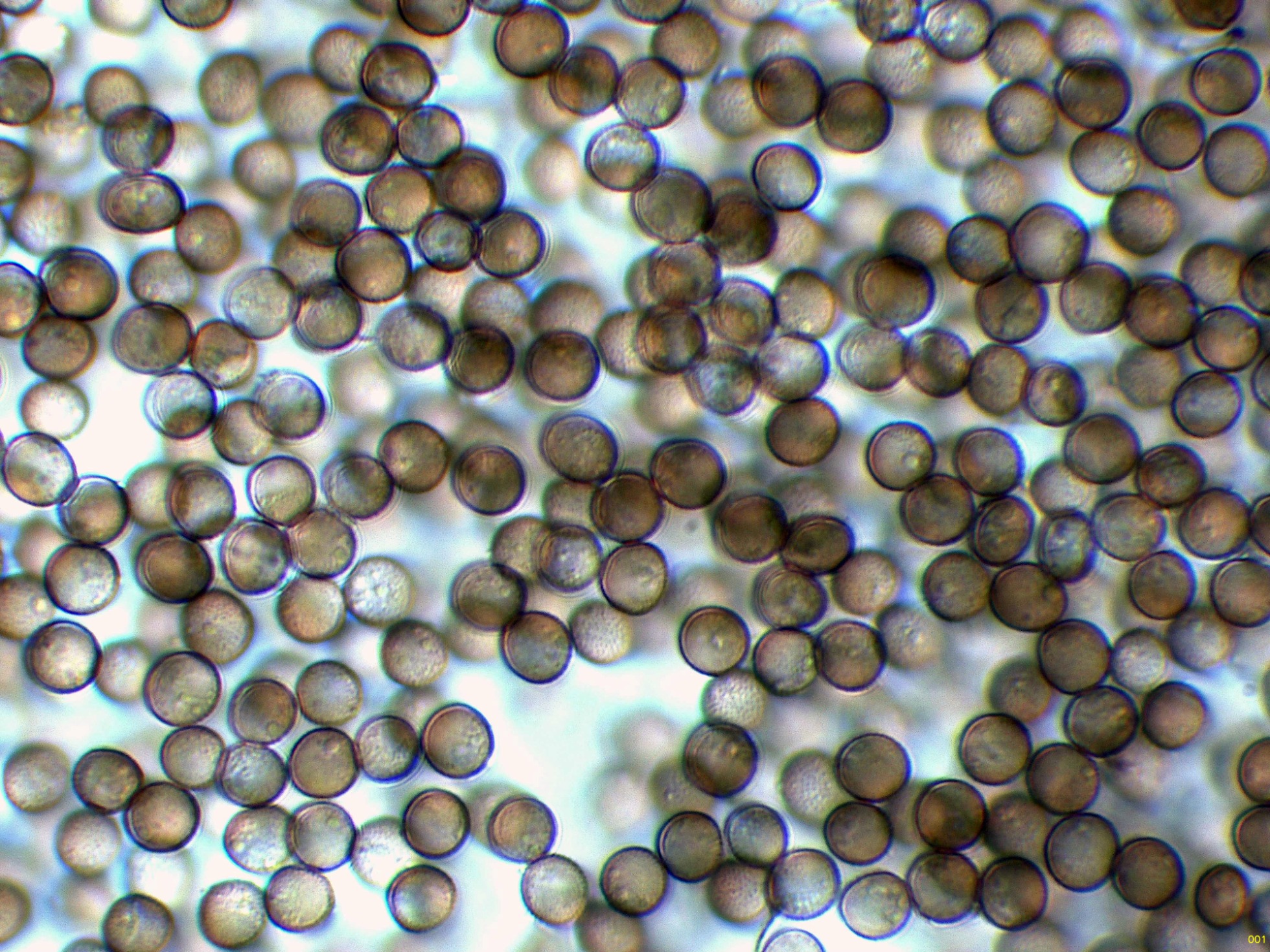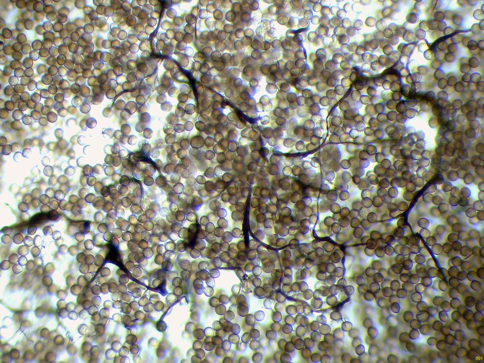Las esporas en solución de Rojo Congo diluido: