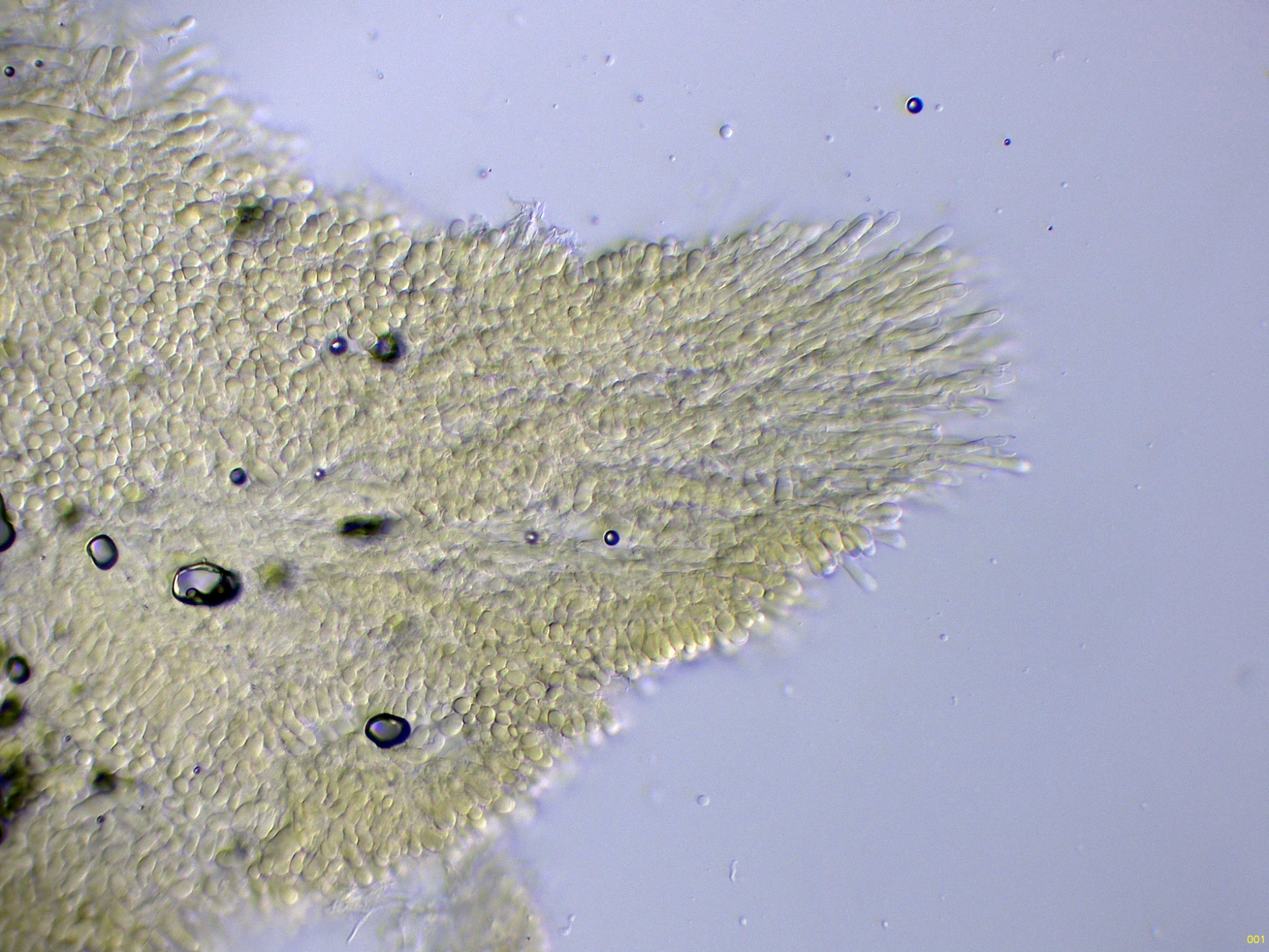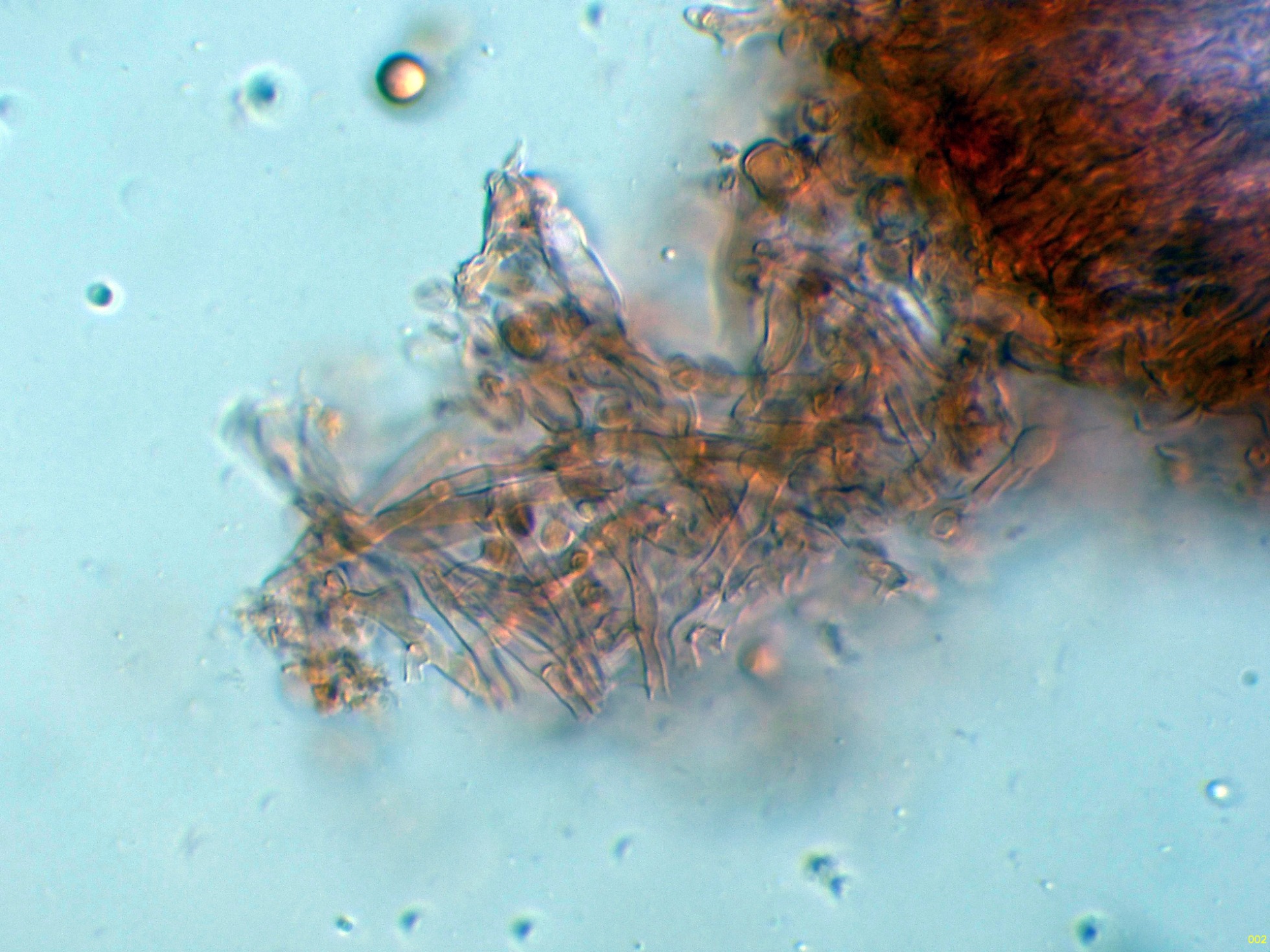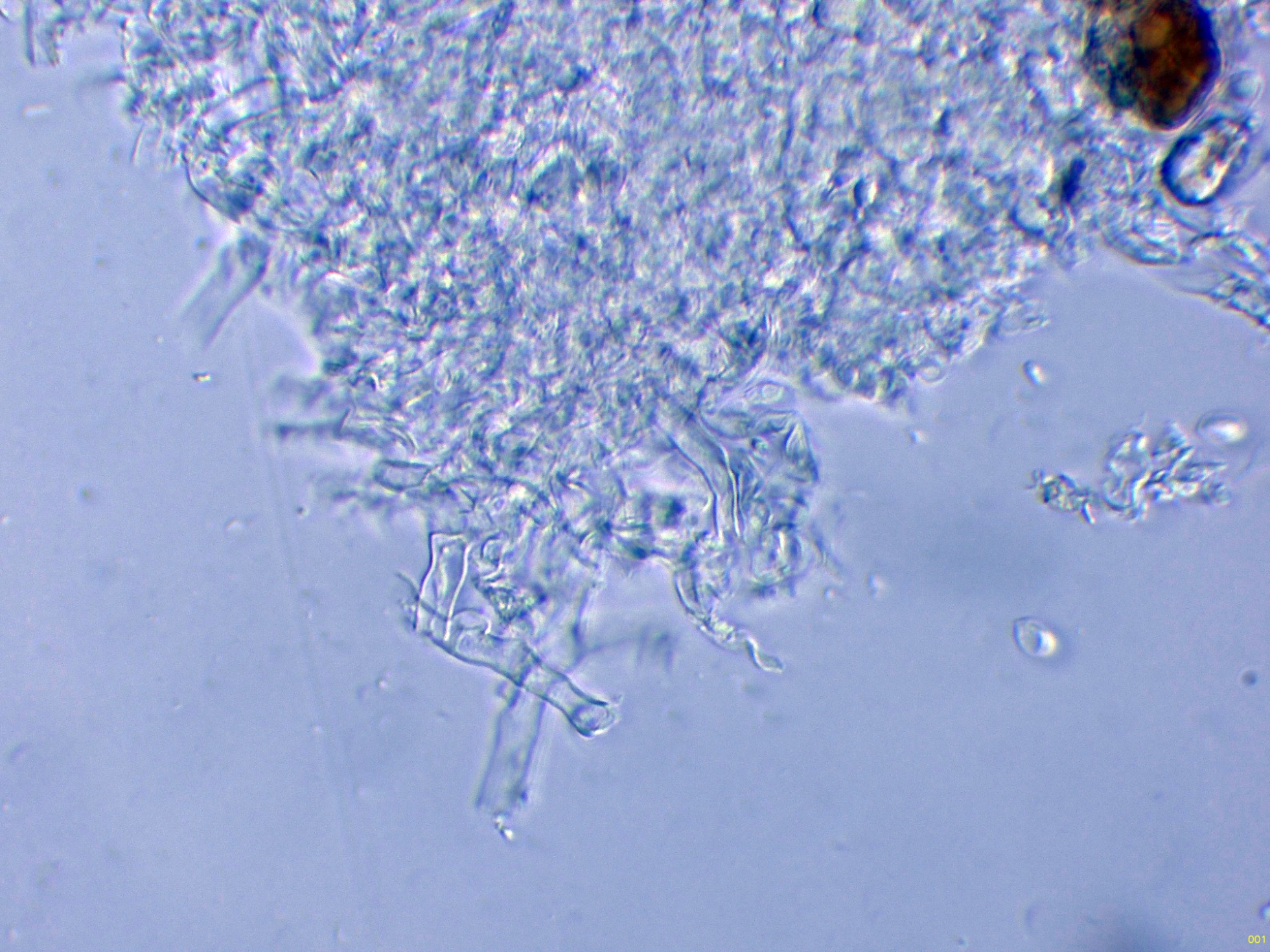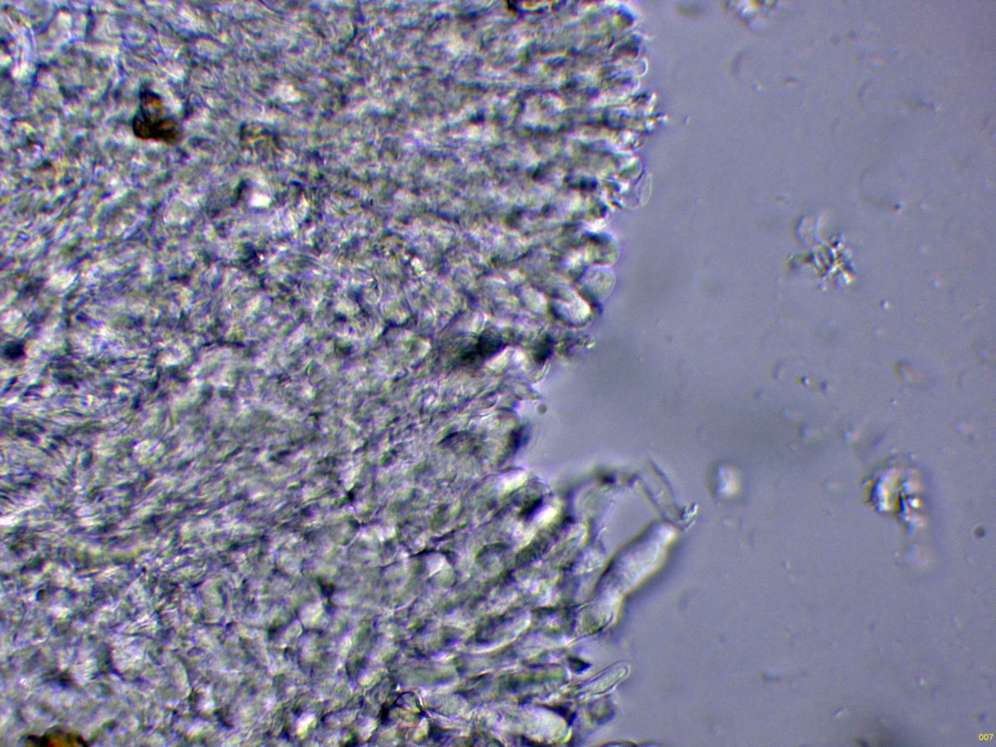 Superficie del basidioma a 20 aumentos: