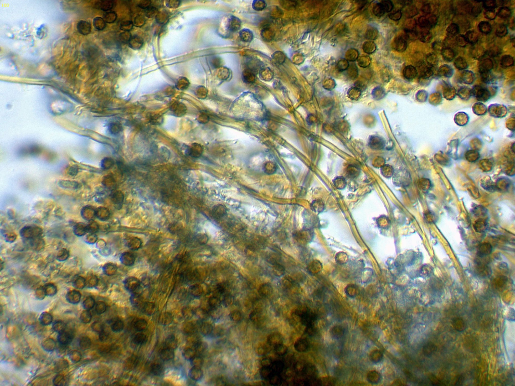 Esporas en Reactivo de Melzer, con un comportamiento que parece entre inamiloide a muy ligeramente dextrinoide: