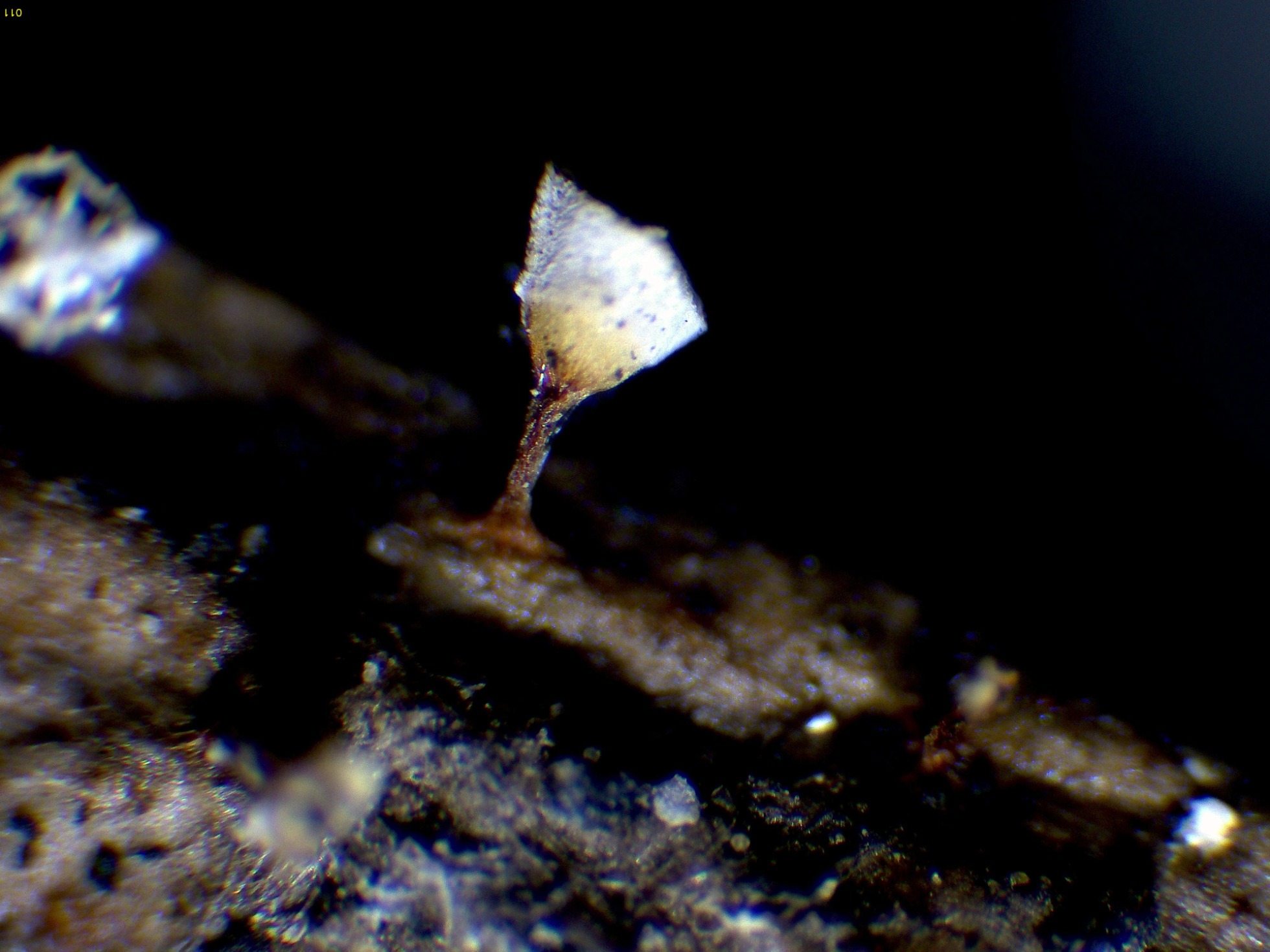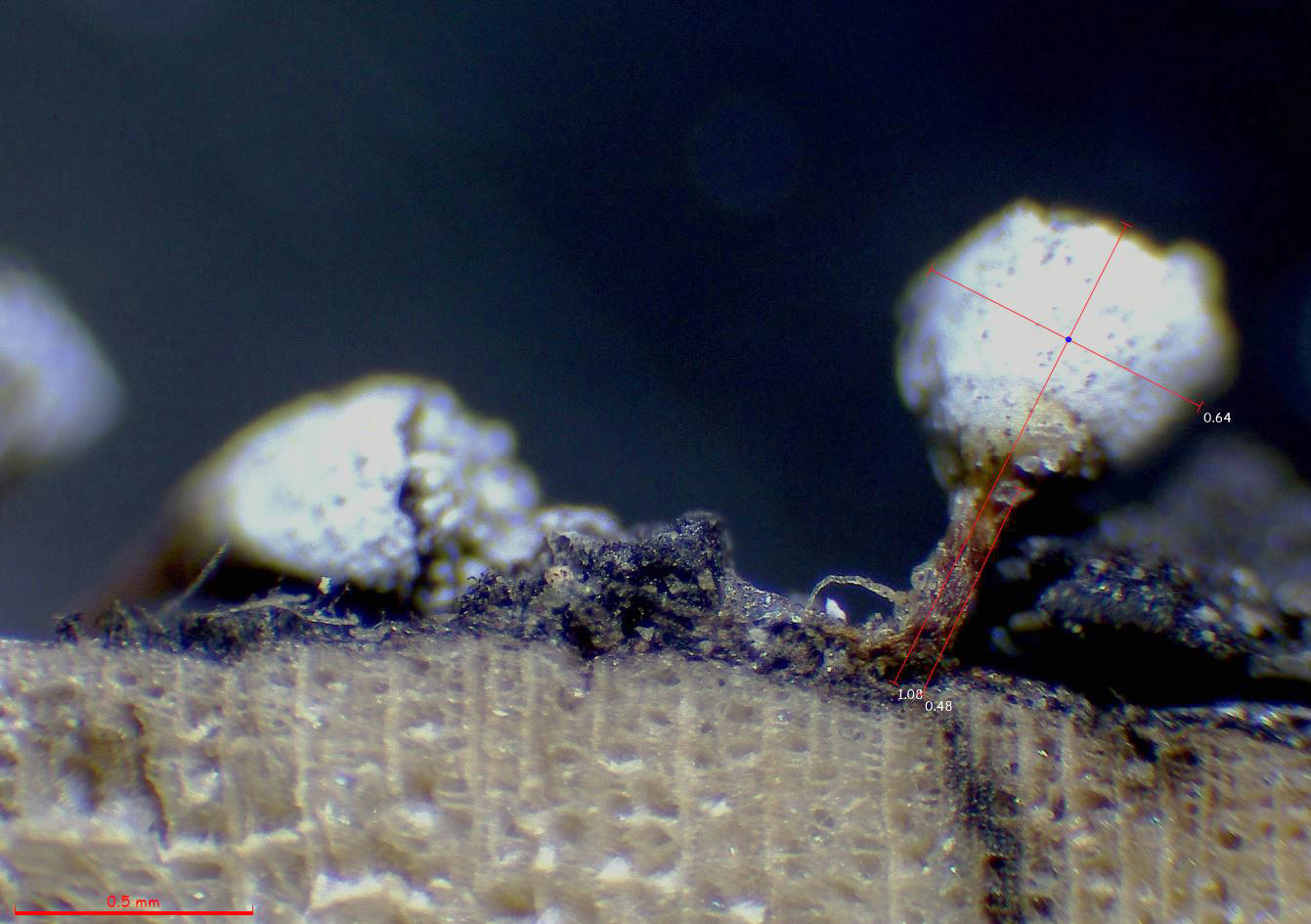 Un esporocarpo con las medidas. (hasta 1 mm. de altura total):