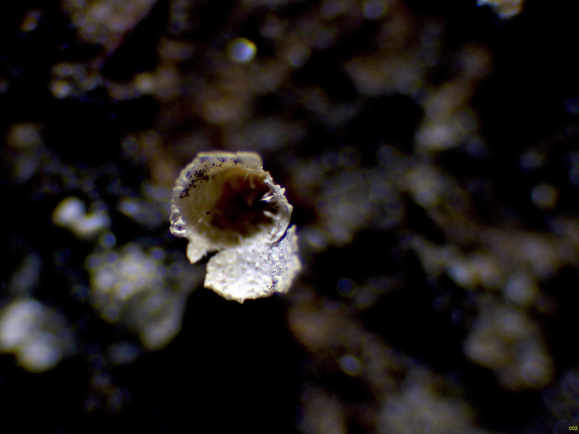Se cita para las esporas del Craterium leucocephalum, una ornamentación a base de verrugas finas, bastante difíciles de observar con el microscopio óptico (ver la ampliación de la miniatura superior izquierda):