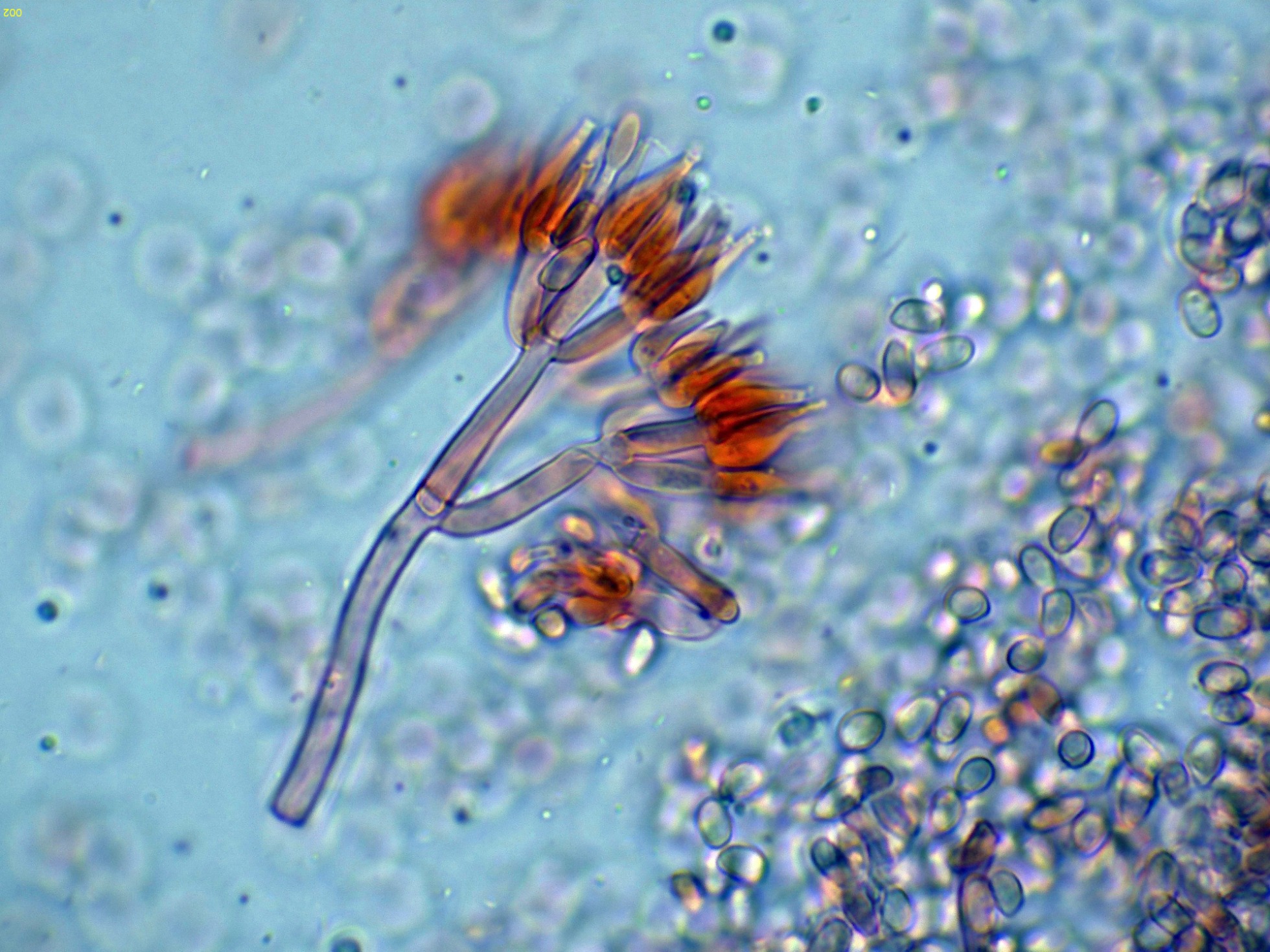 Si bien en mi estudio anterior los conidios arrojaban una anchura ligeramente por encima de la que se correspondería con la especie, en esta ocasión las medidas ya encajan perfectamente.