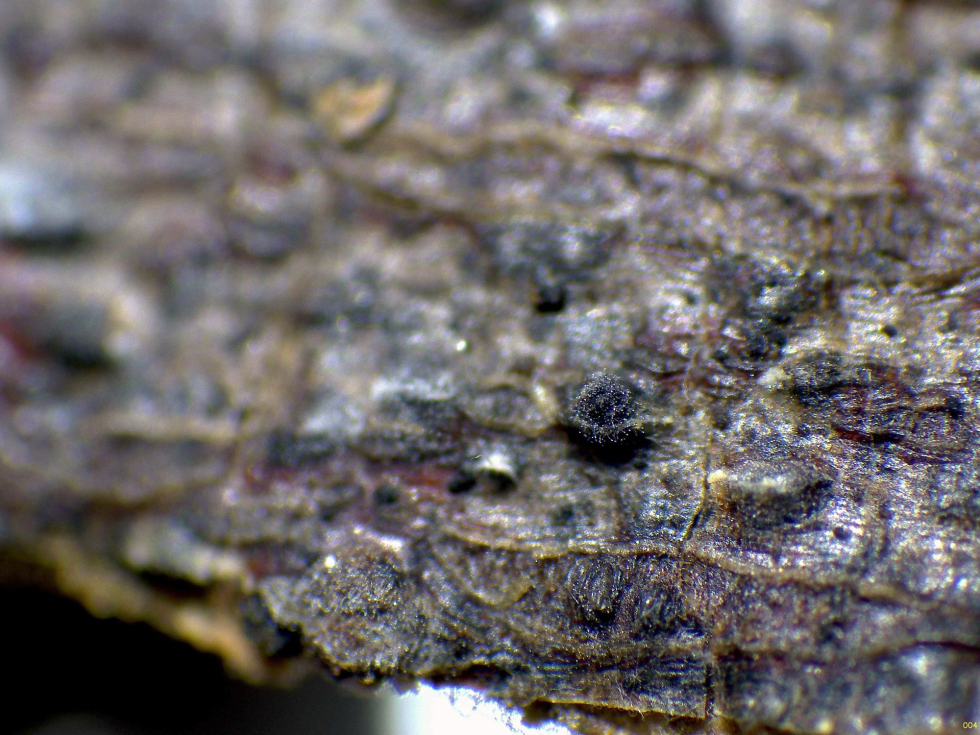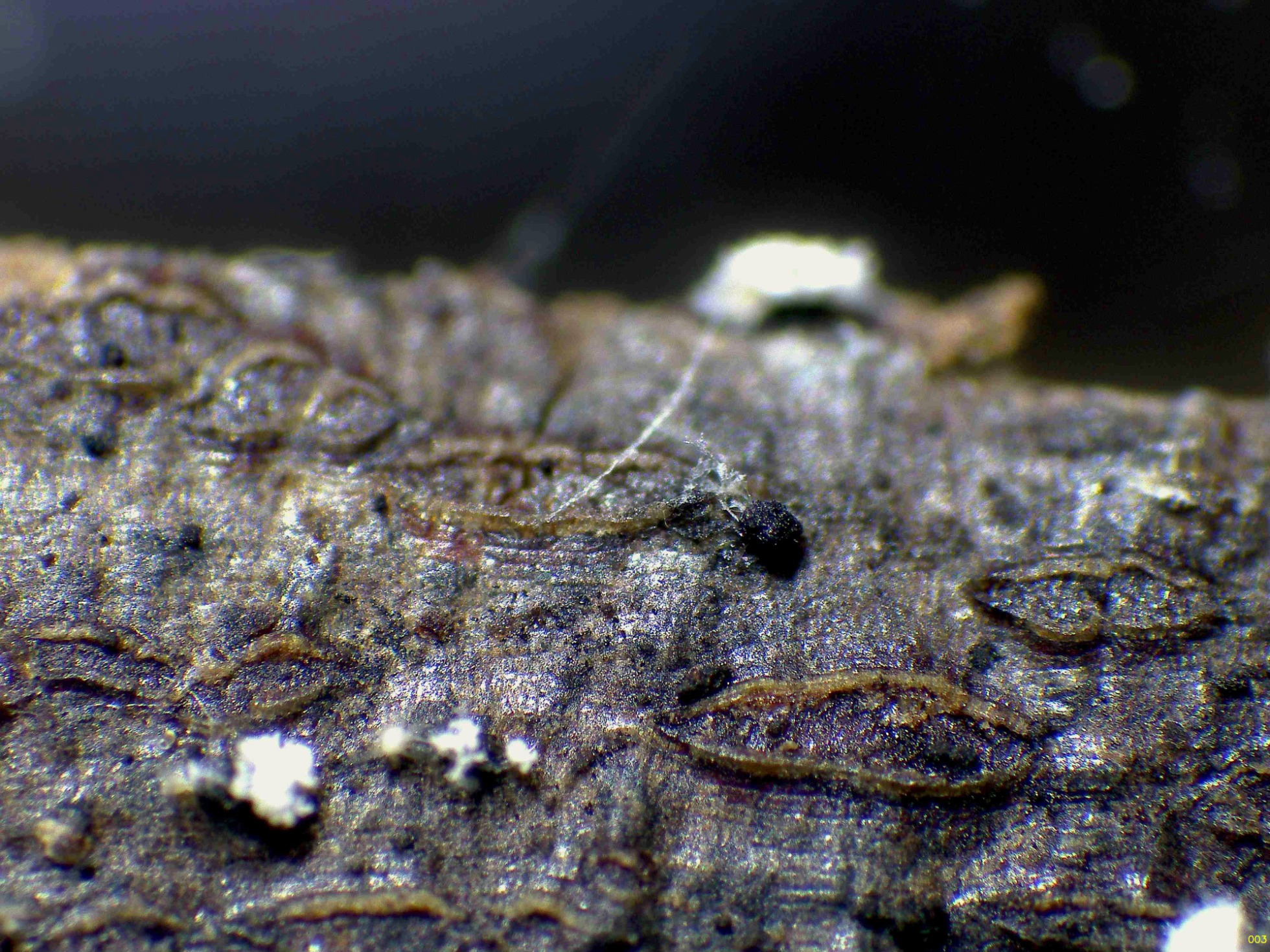 Y compartiendo espacio con la anterior otra Diplodia que ya había encontrado anteriormente por la misma zona, en mi estudio la archivé como Diplodia aff. rosacearum, dejo el enlace del trabajo que presenté en su momento: