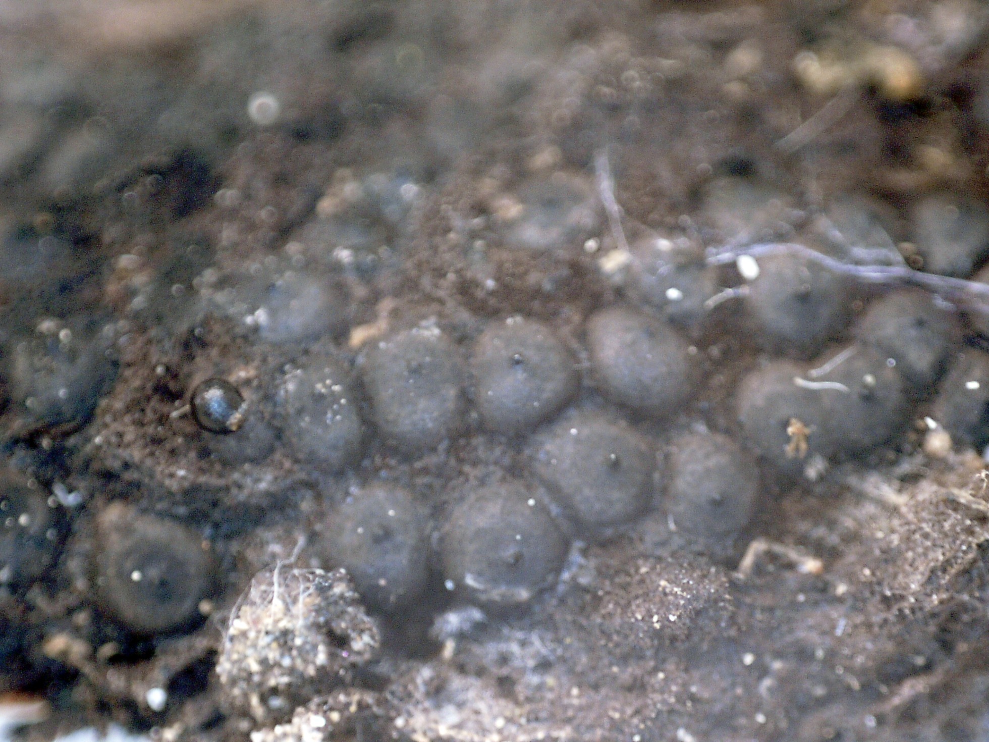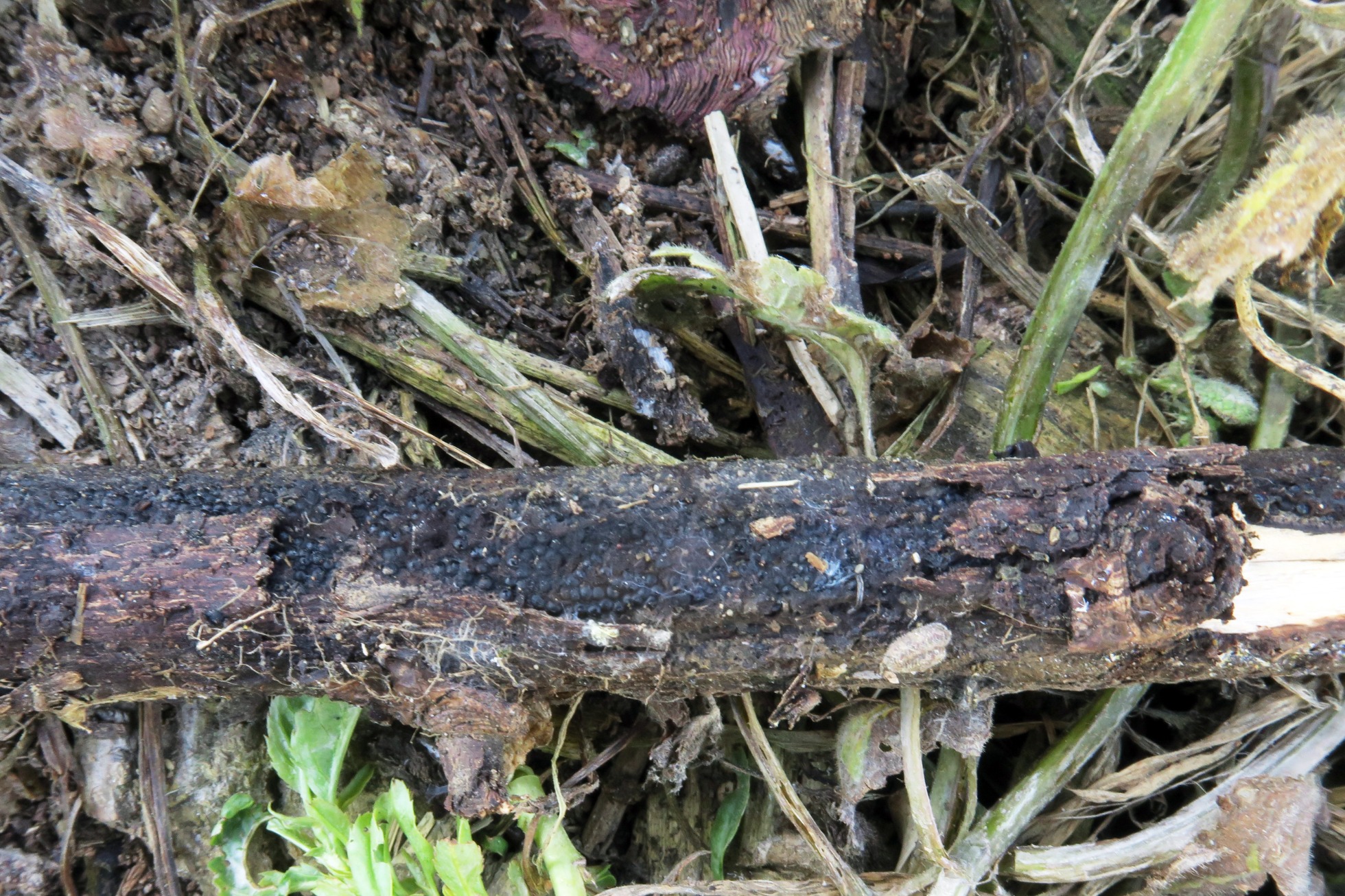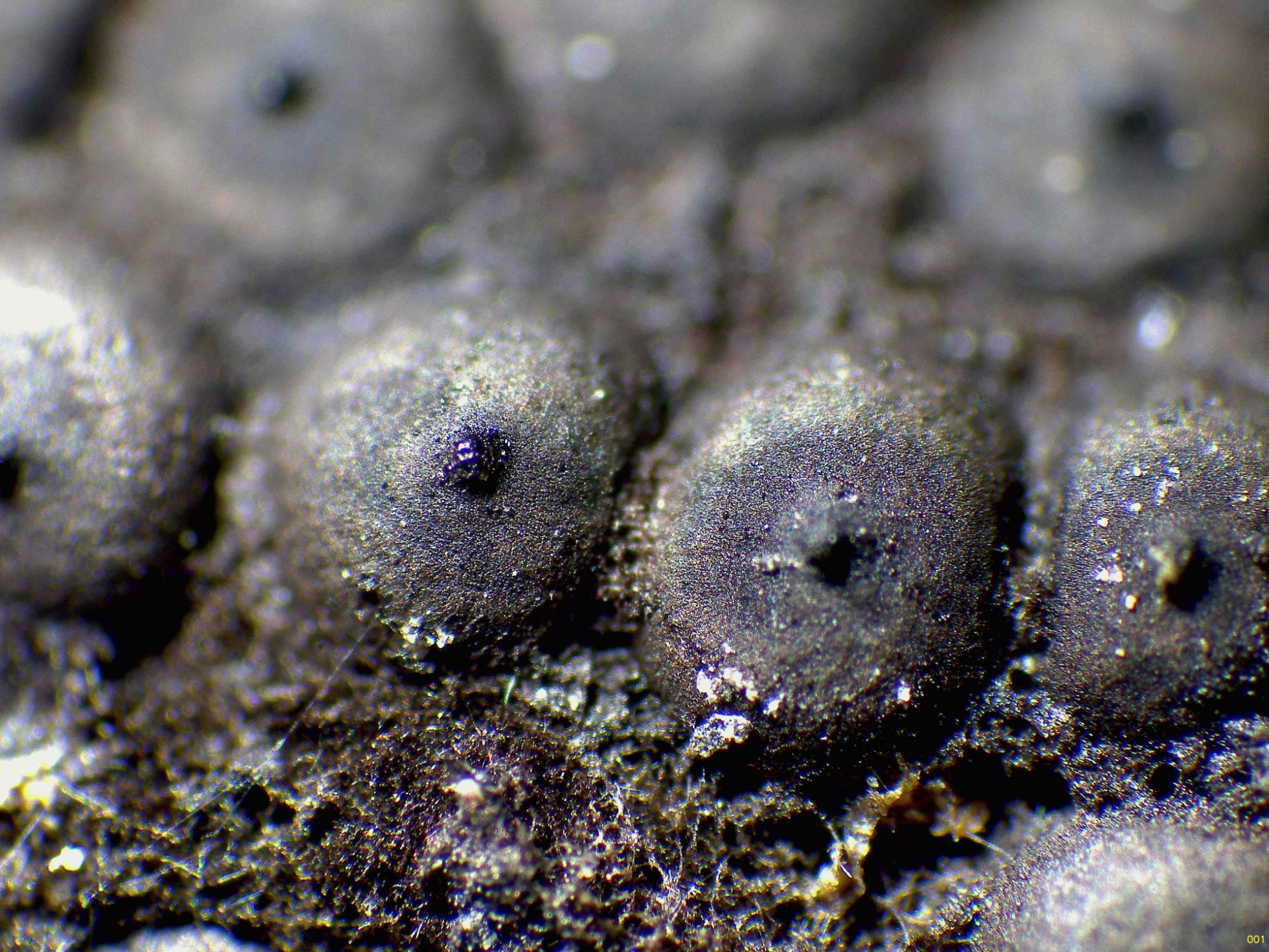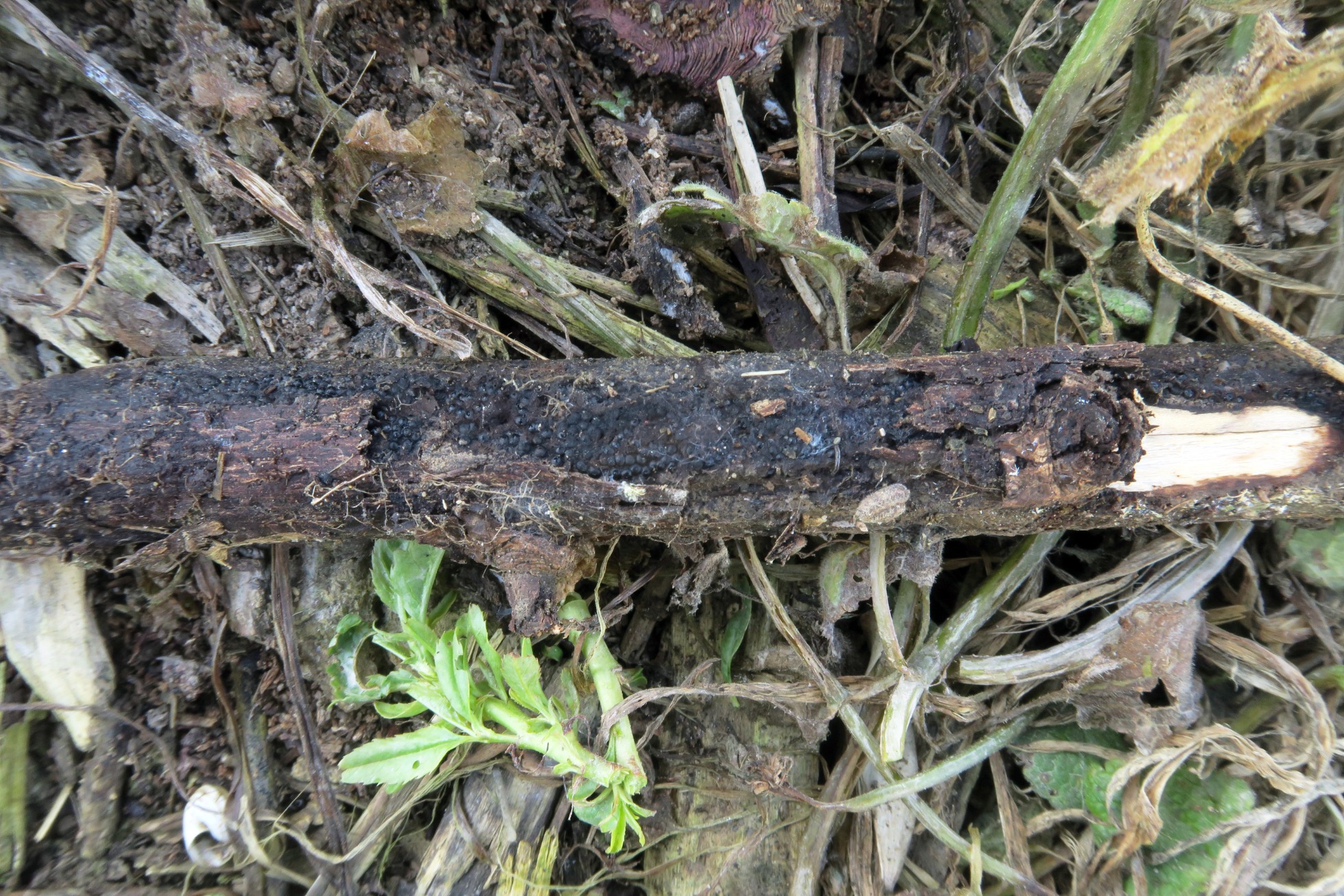 Una Rosellinia localizada el sábado 29 de marzo, brotando sobre la superficie de un pequeño tronco del suelo, procedente de las labores de limpieza de un campo de almendros, en las inmediaciones de mi ciudad.