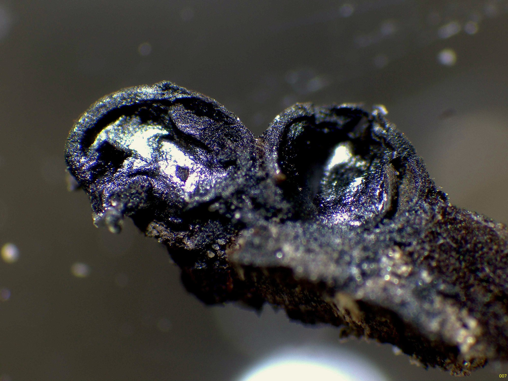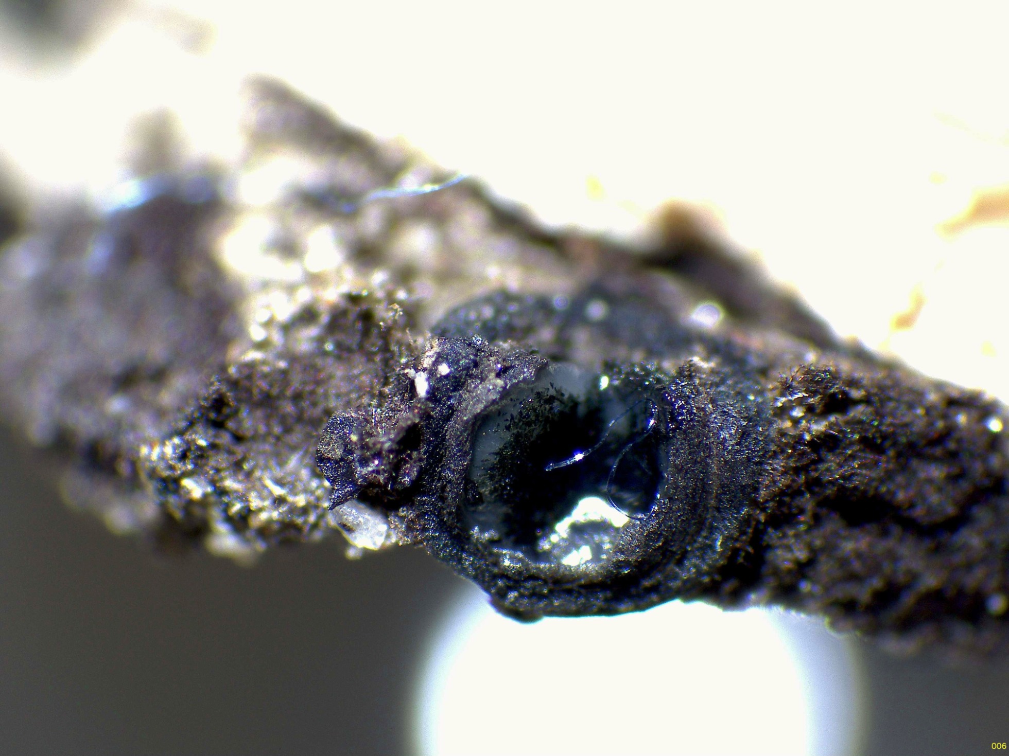 Determinación hecha siguiendo las Claves de Pyrenomycetes.free.fr, en las que atribuyen unas medidas esporales para la Rosellinia corticiun de 19-27 x 7,5-10 μm. y unas medidas del aparato apical de 7-11 μm de alto x 4-6,5 μm de ancho.