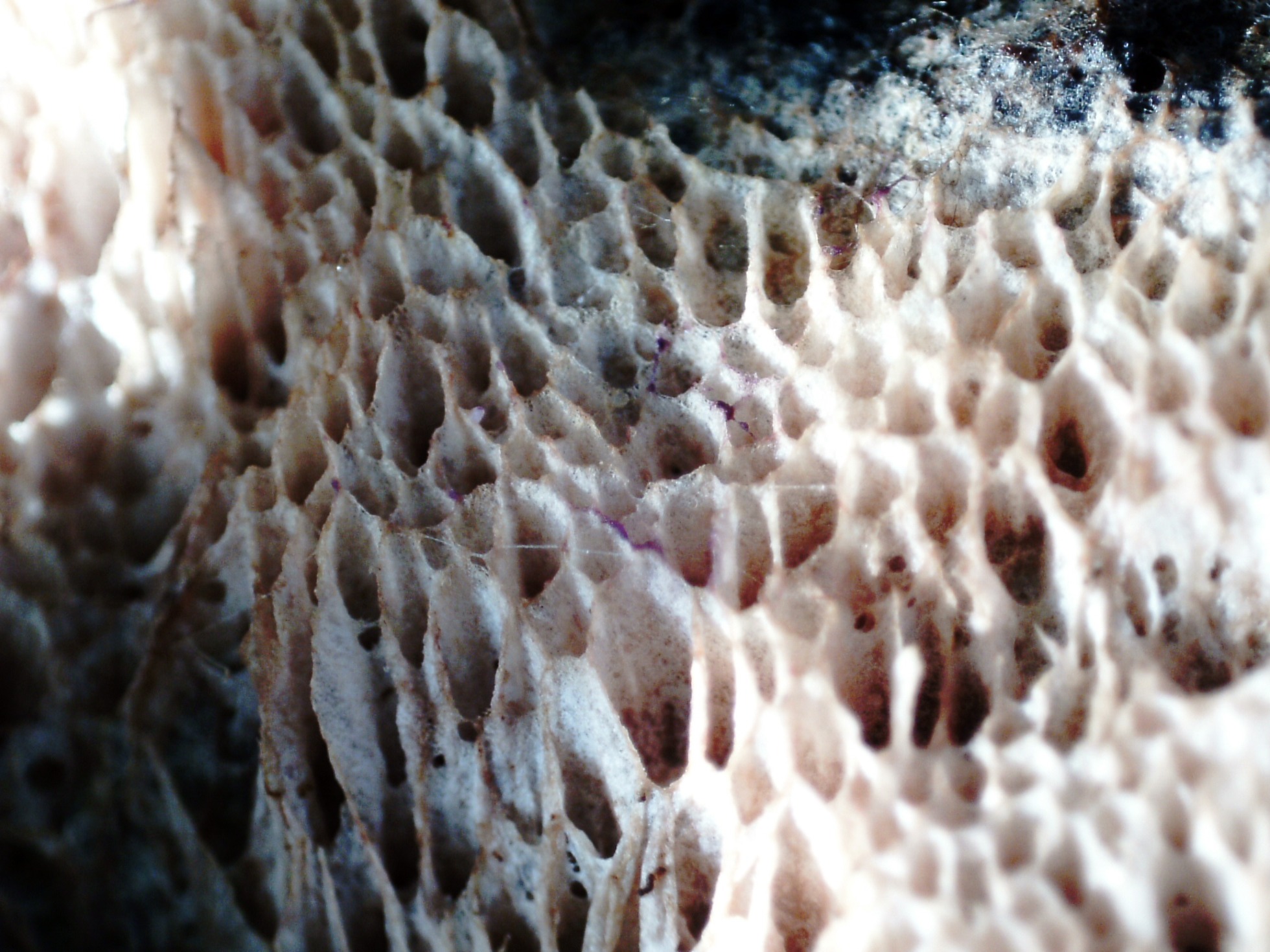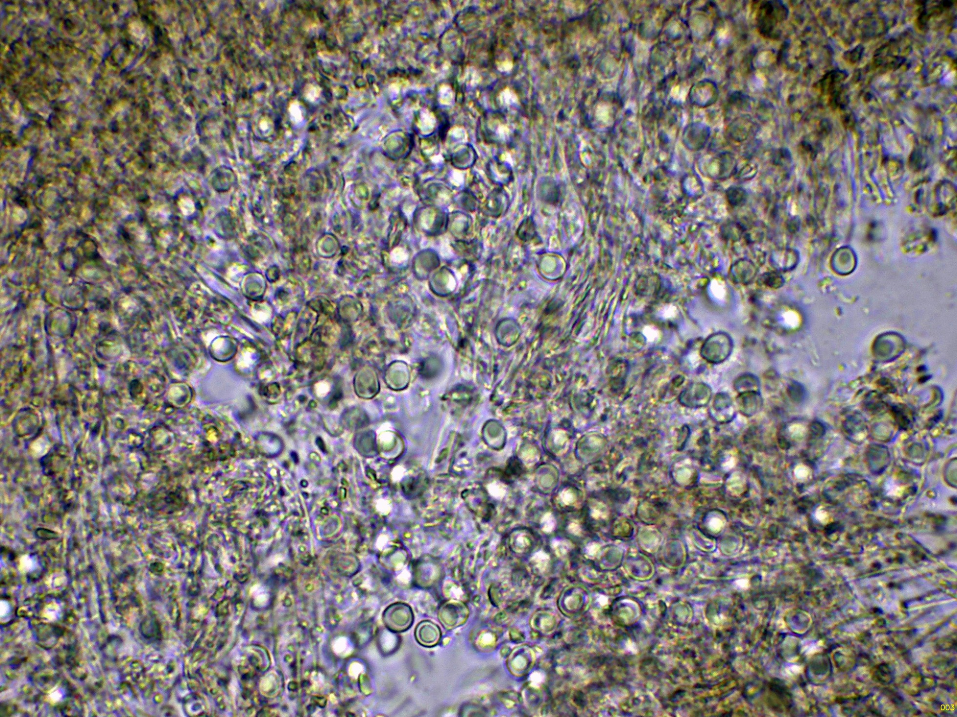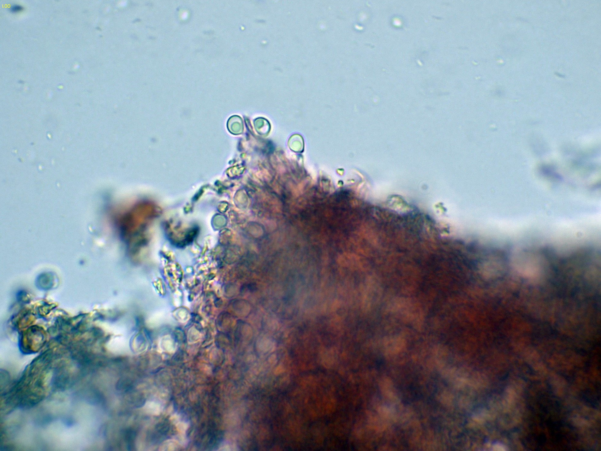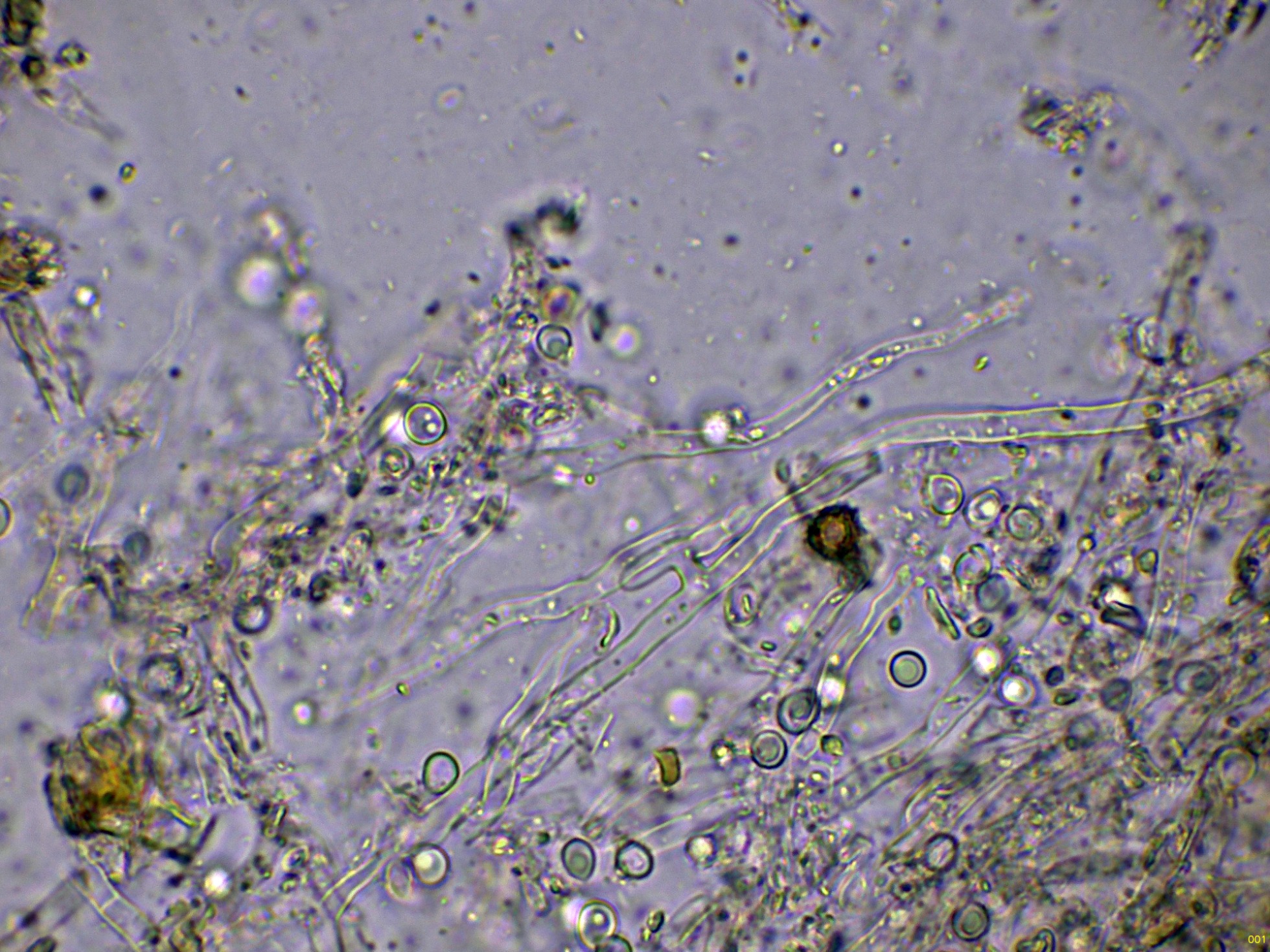 Observaciones: Como que el basidioma ya estaba muerto, no pude observar con claridad todos los elementos que confirmarían la especie, la determinación se ha hecho en base al aspecto del basidioma, a su sistema hifal monomítico y sin fíbulas, y especialmente a la morfología y medidas esporales, que por este último dato ya me conducen a Physisporinus. Los datos obtenidos coinciden perfectamente con los del trabajo de mi maestro y mejor amigo Enrique Rubio, dejo el enlace: