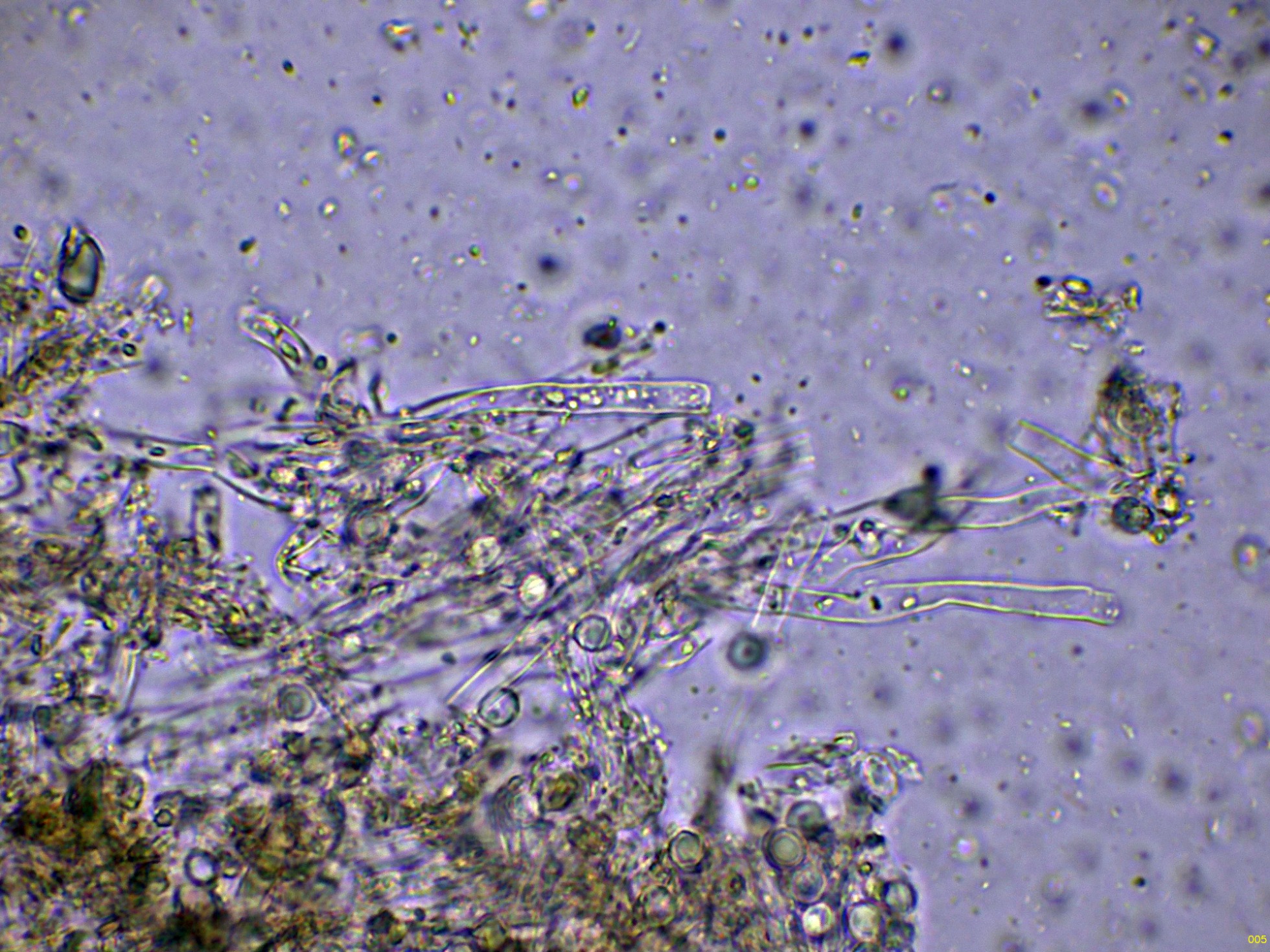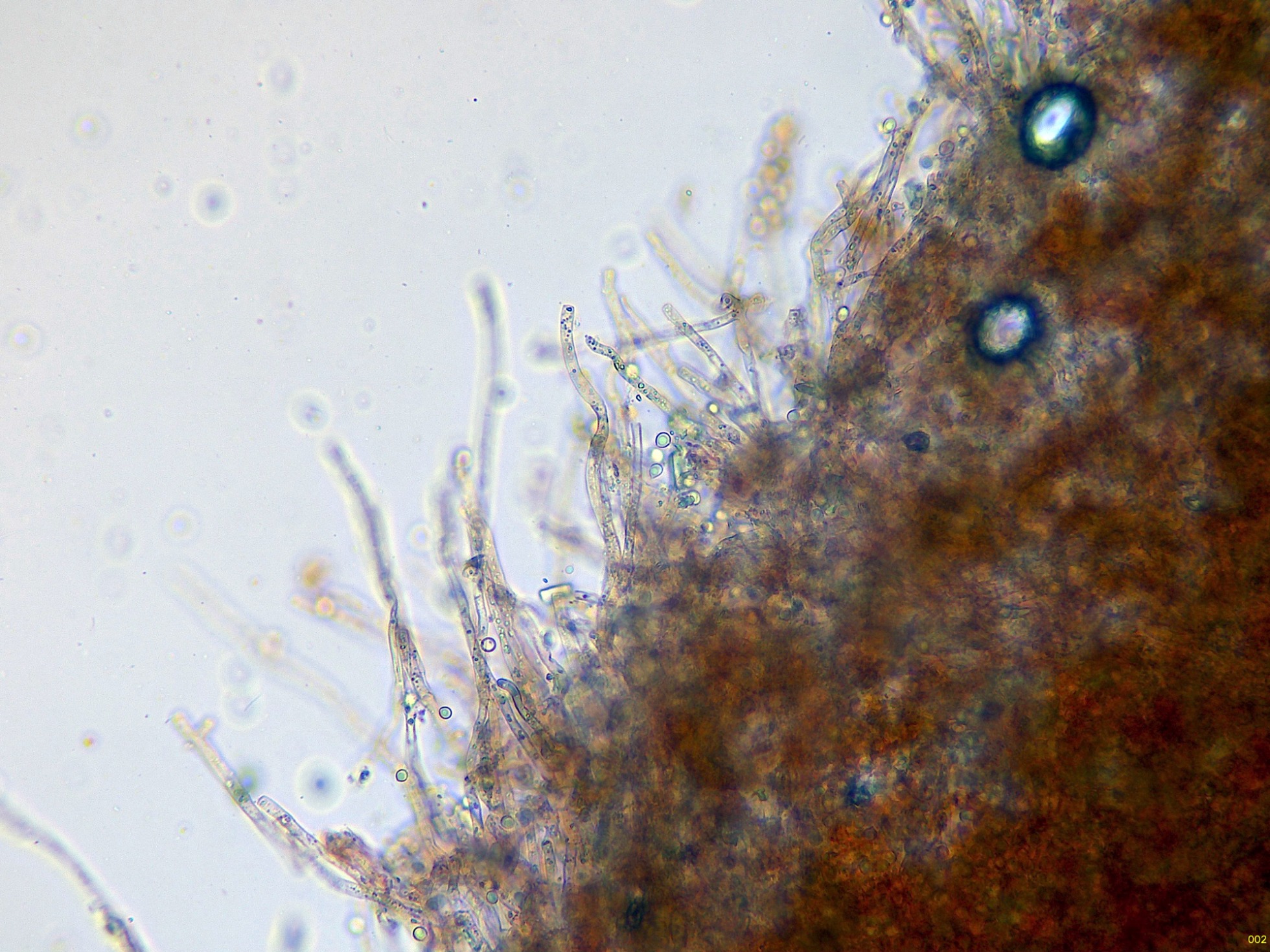 Superficie del basidioma a 20 aumentos: