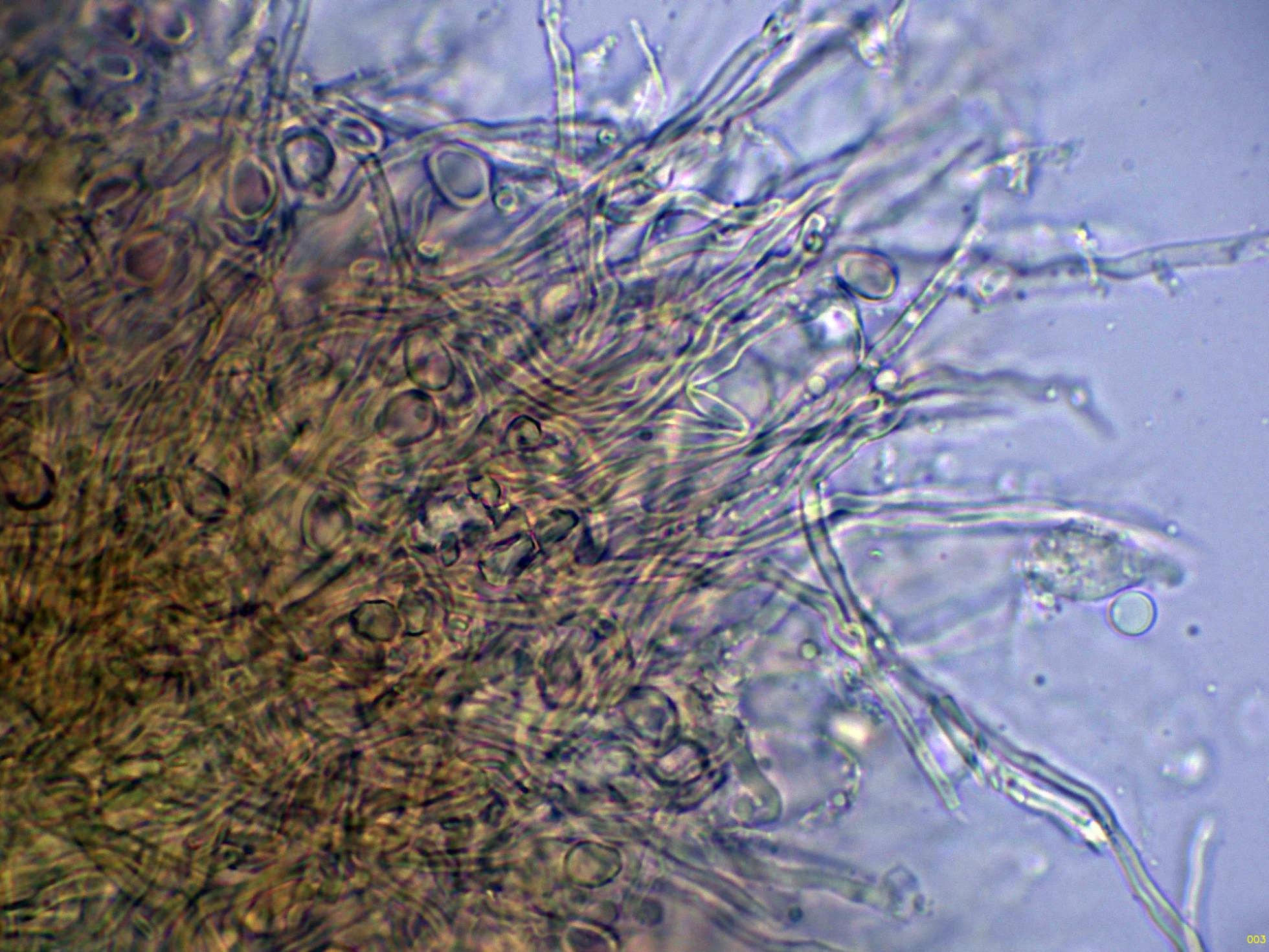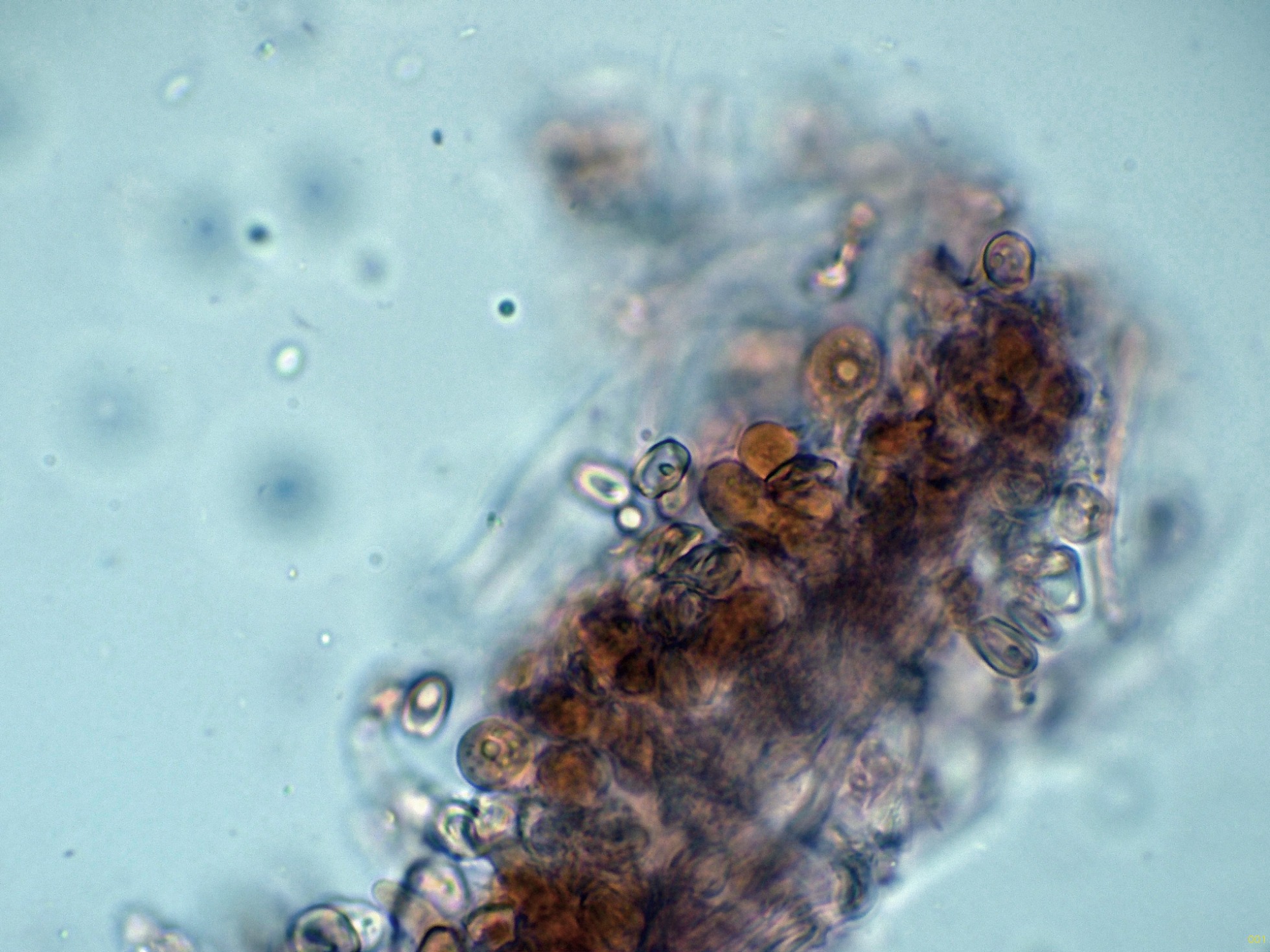 Un Polyporal, aunque no había tenido ocasión hasta la fecha de pasar ninguna Perenniporia por el microscopio, atendiendo a sus esporas dextrinoides y truncadas, su determinación en cuanto al género fue relativamente fácil, el apellido me sorprendió ya que al parecer no se trata de una especie común y en lo que respecta al huésped, bastante restringida a Quercus.