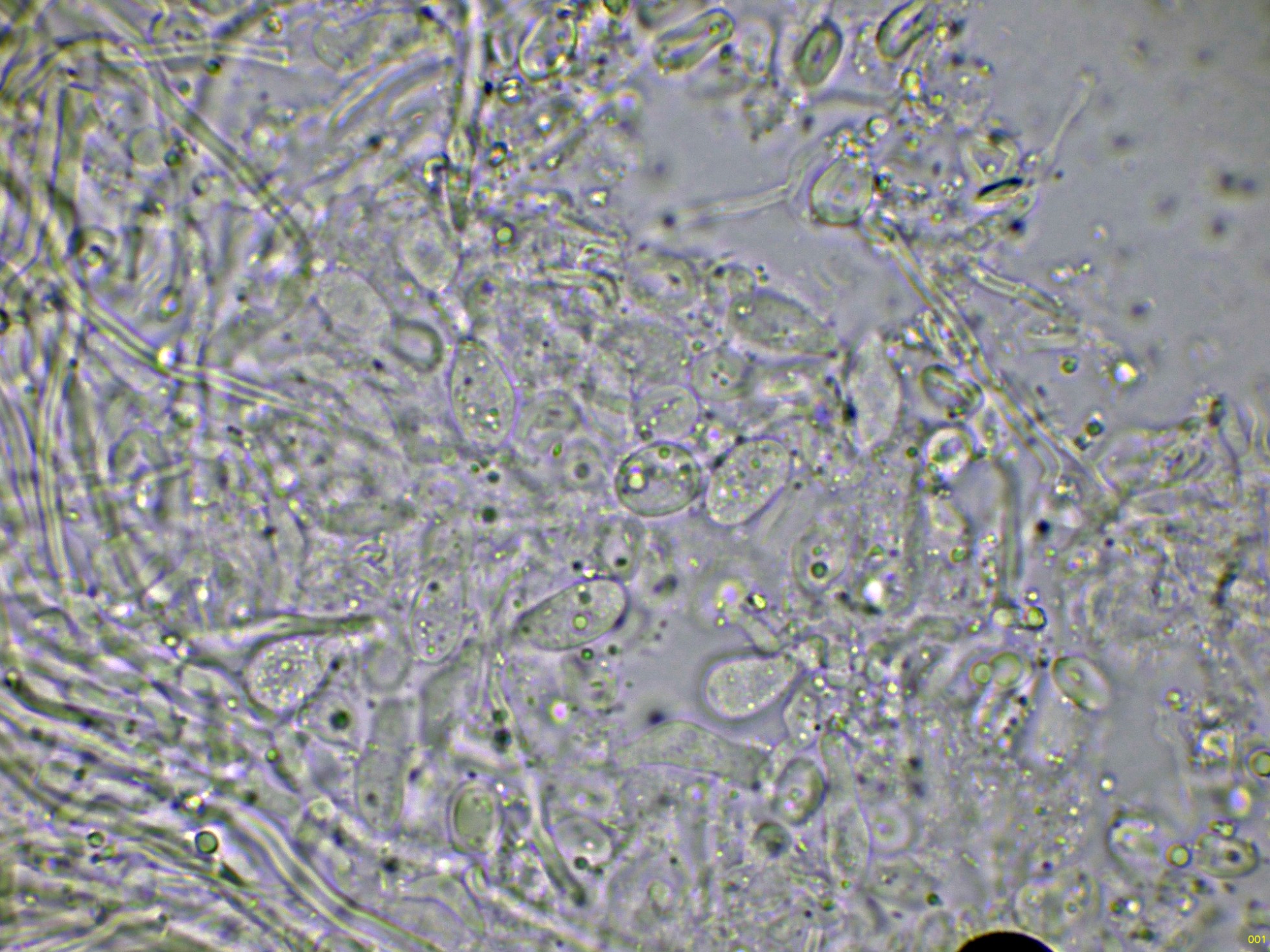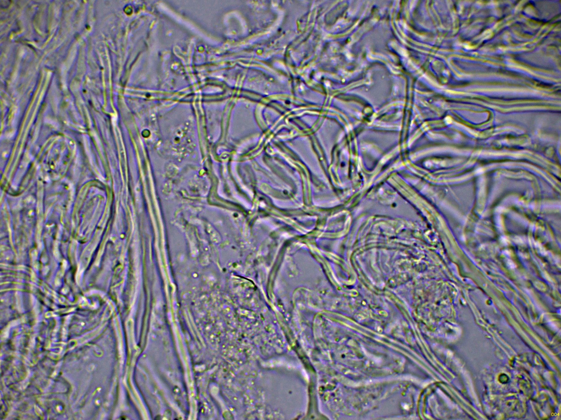 En este medio se observa una reacción de las hifas entre inamiloide a ligeramente dextrinoide: