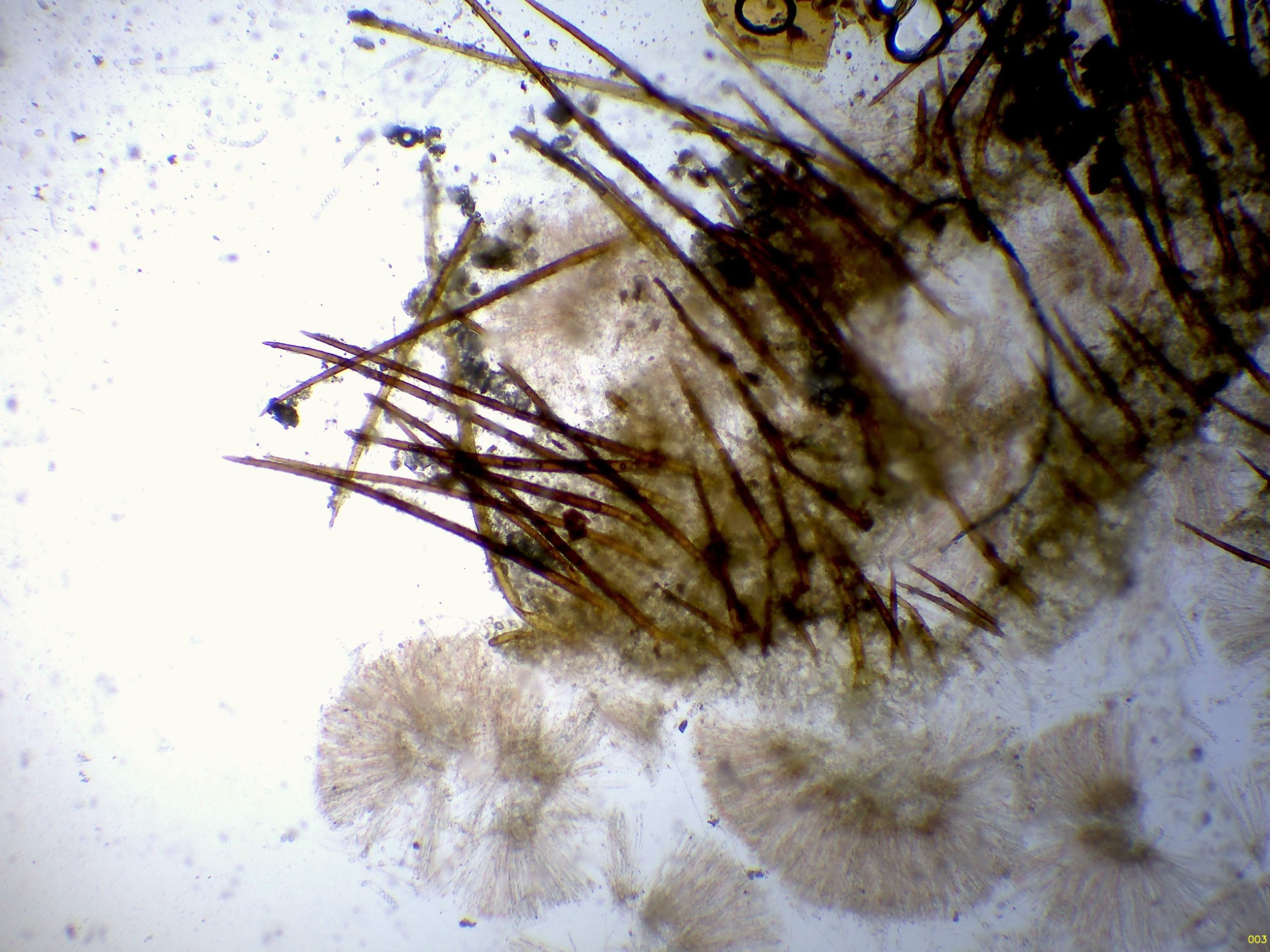 Probablemente: Scutellinia pilatii (Velen.) Svrček. Microscopía.