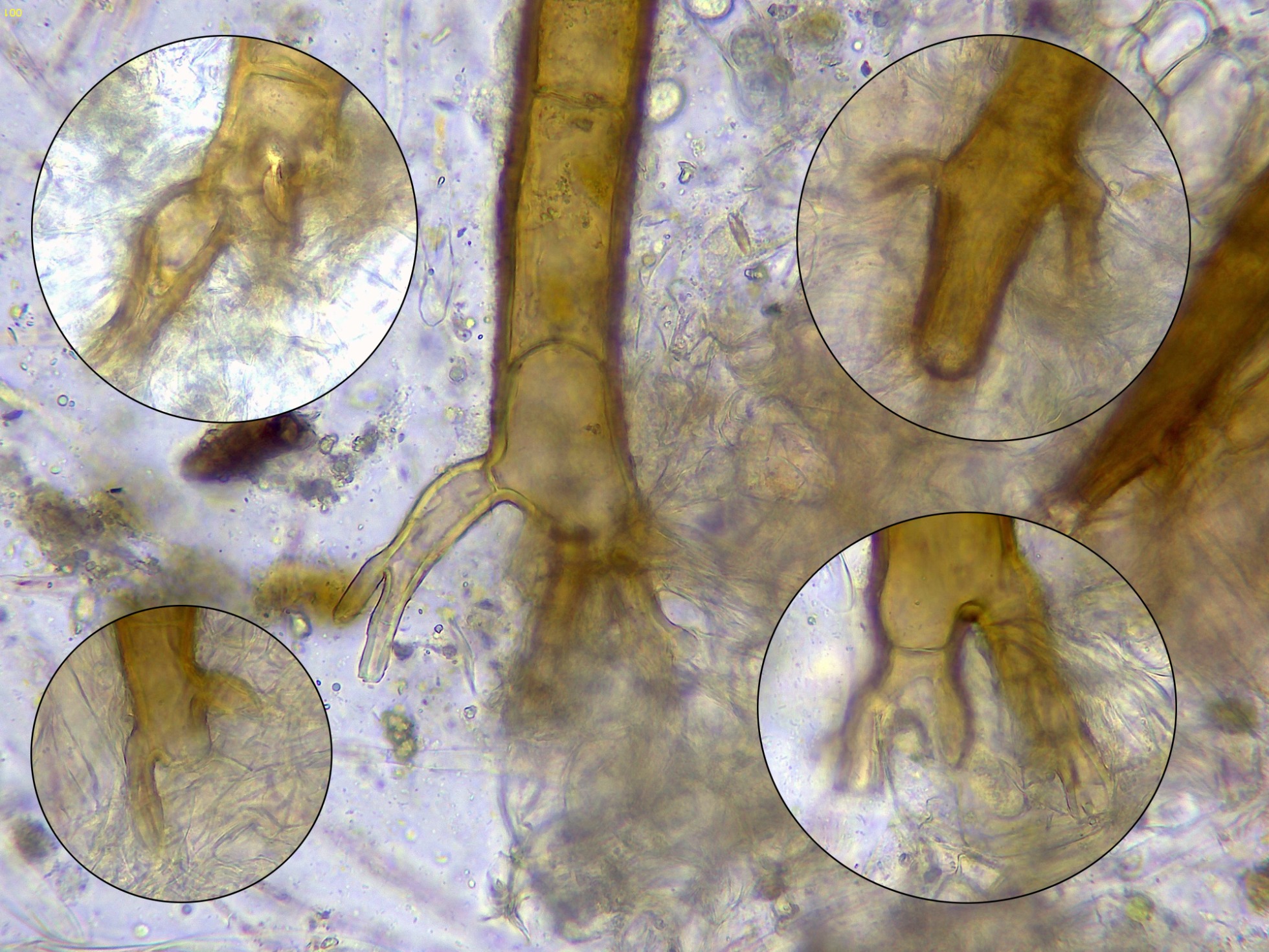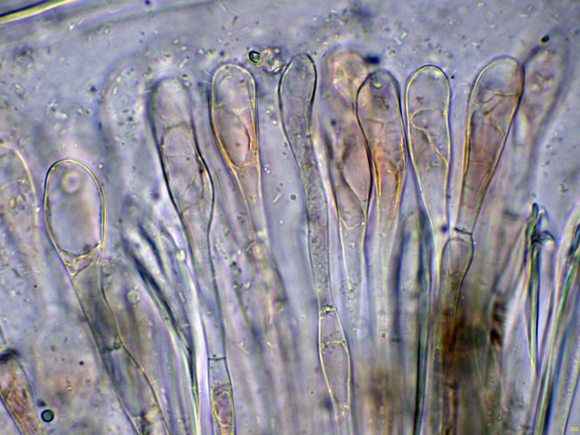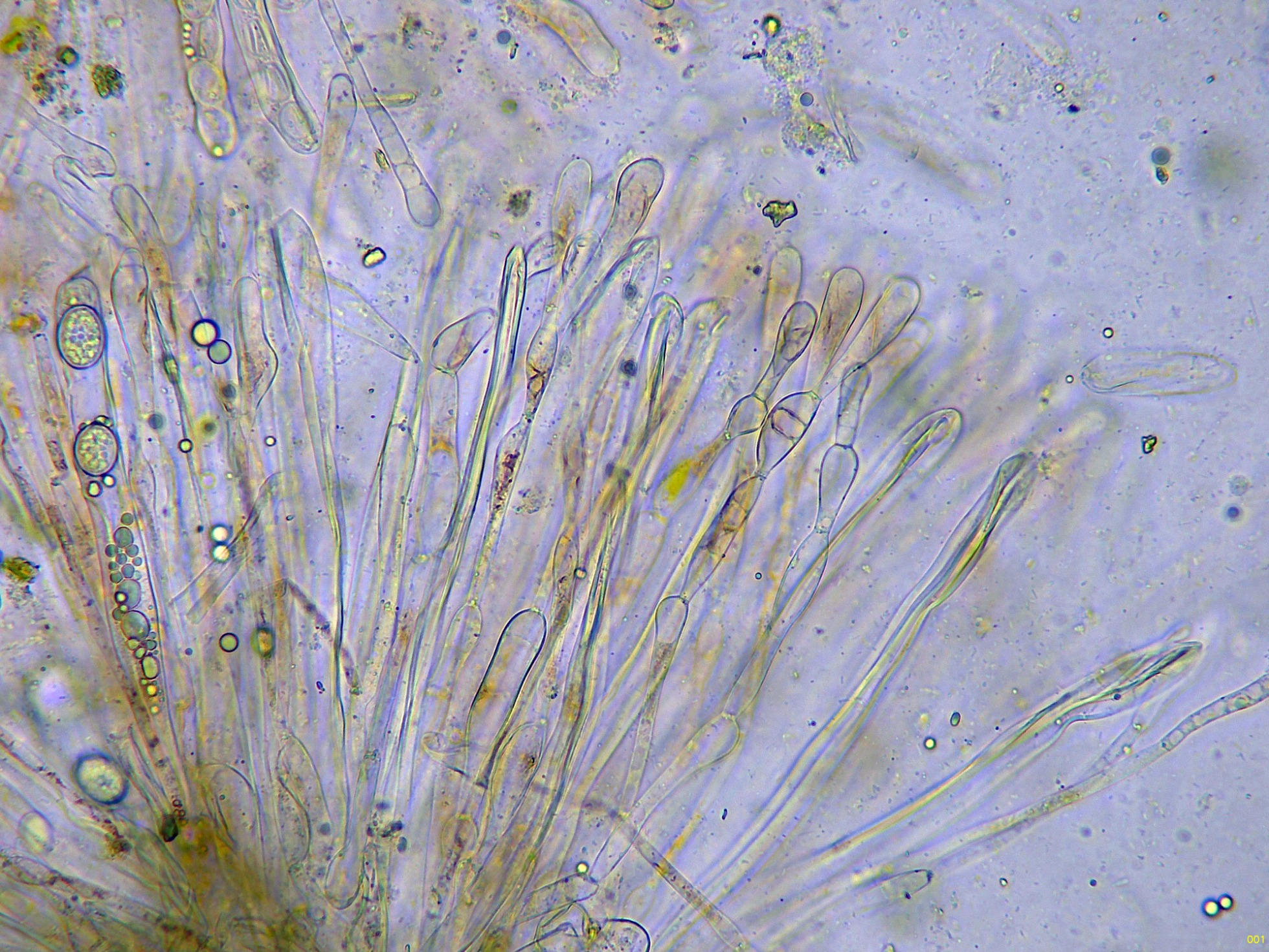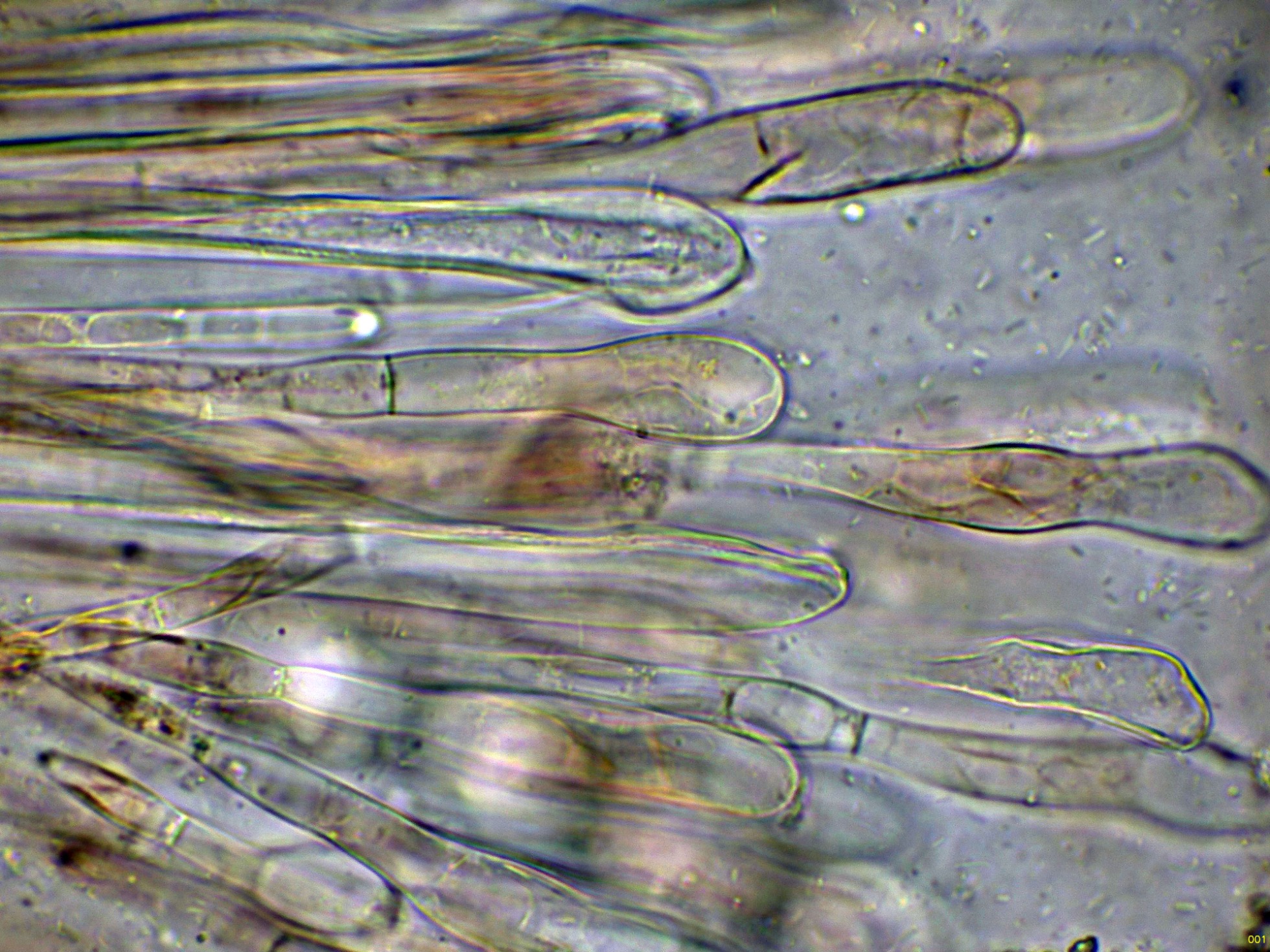 Las hifas del excípulo en agua: