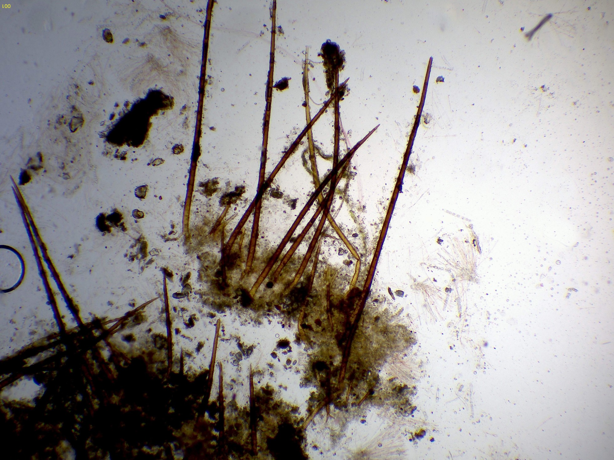 - Probablemente: Scutellinia pilatii (Velen.) Svrček. Microscopía.